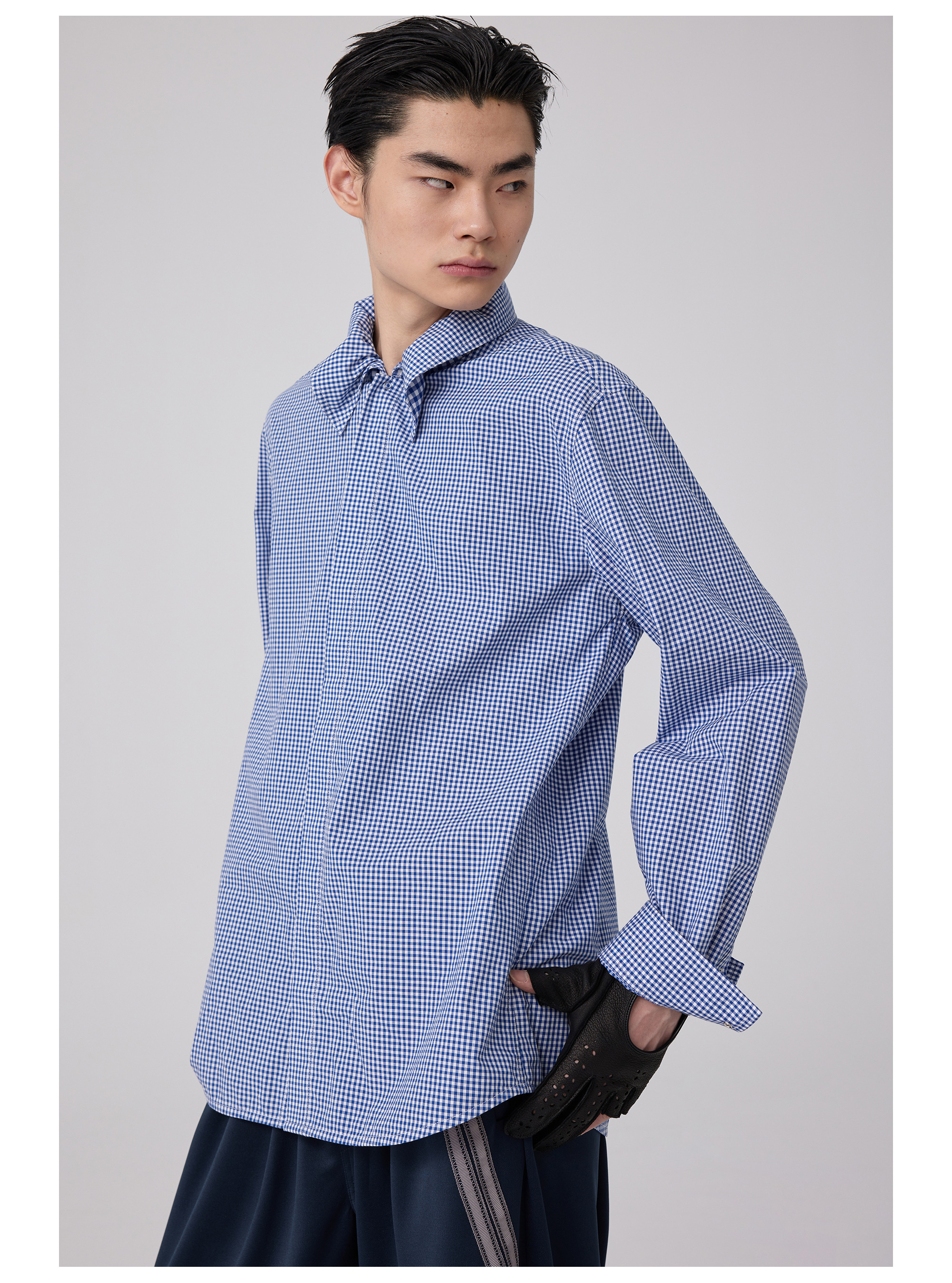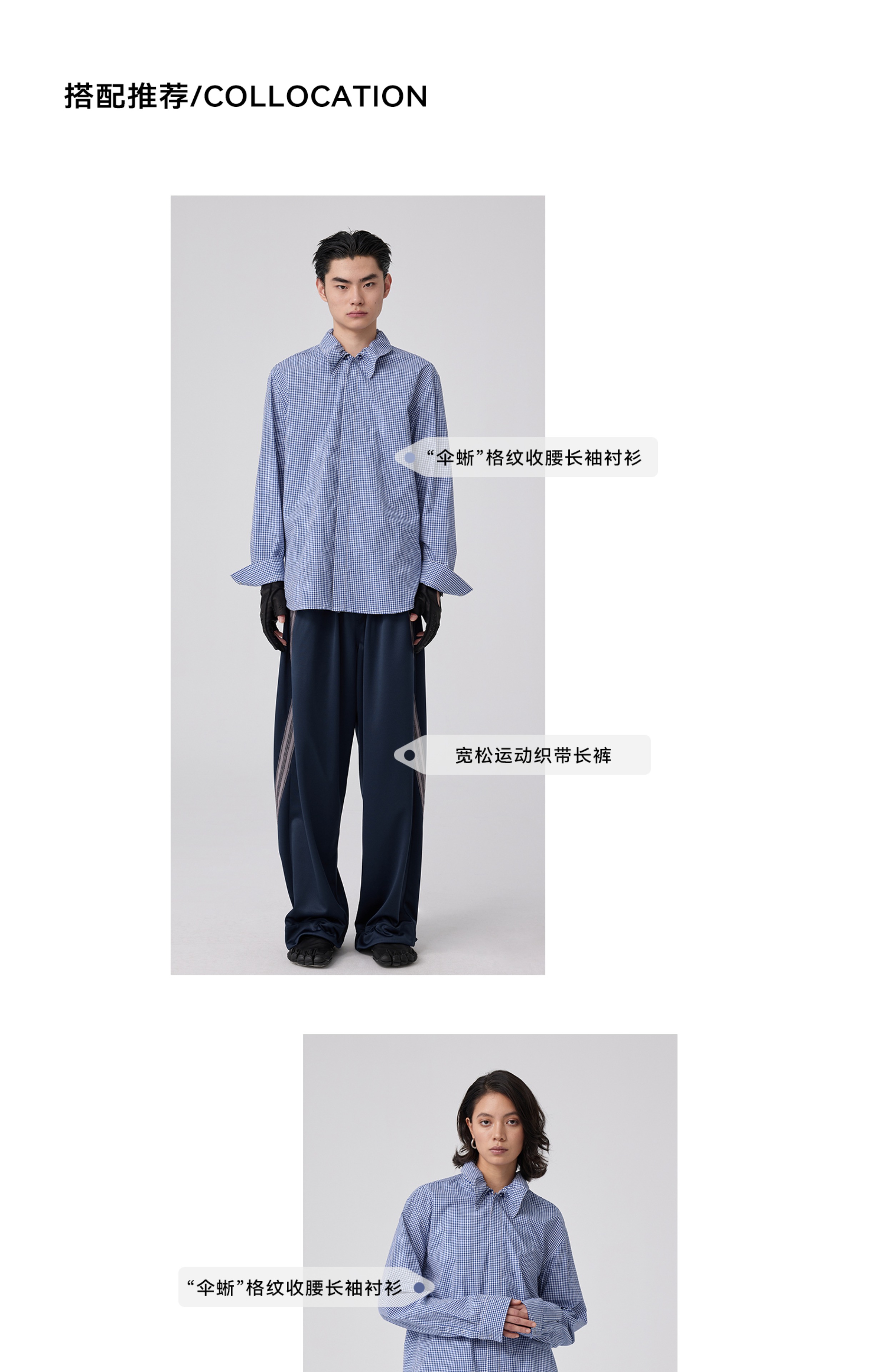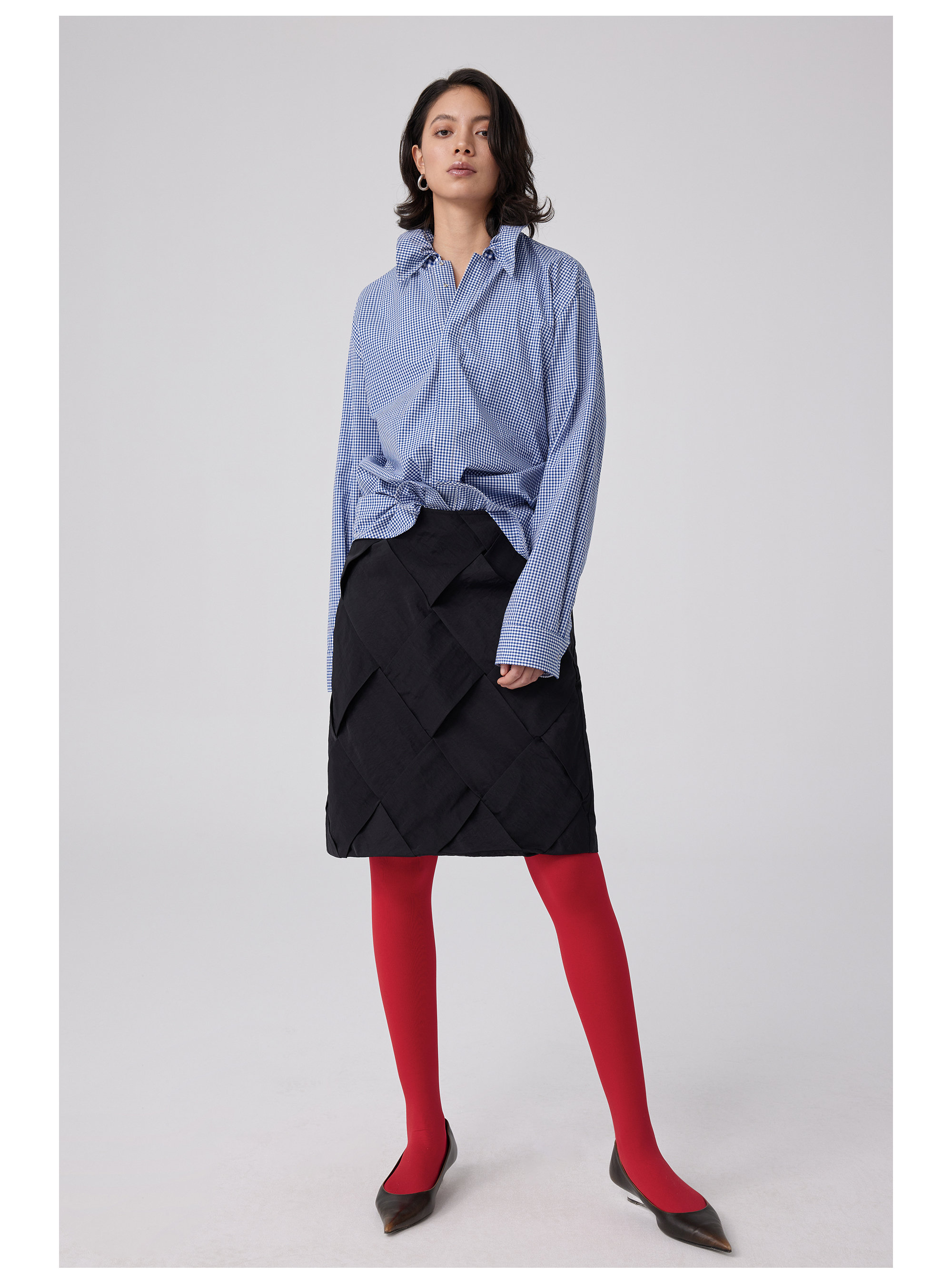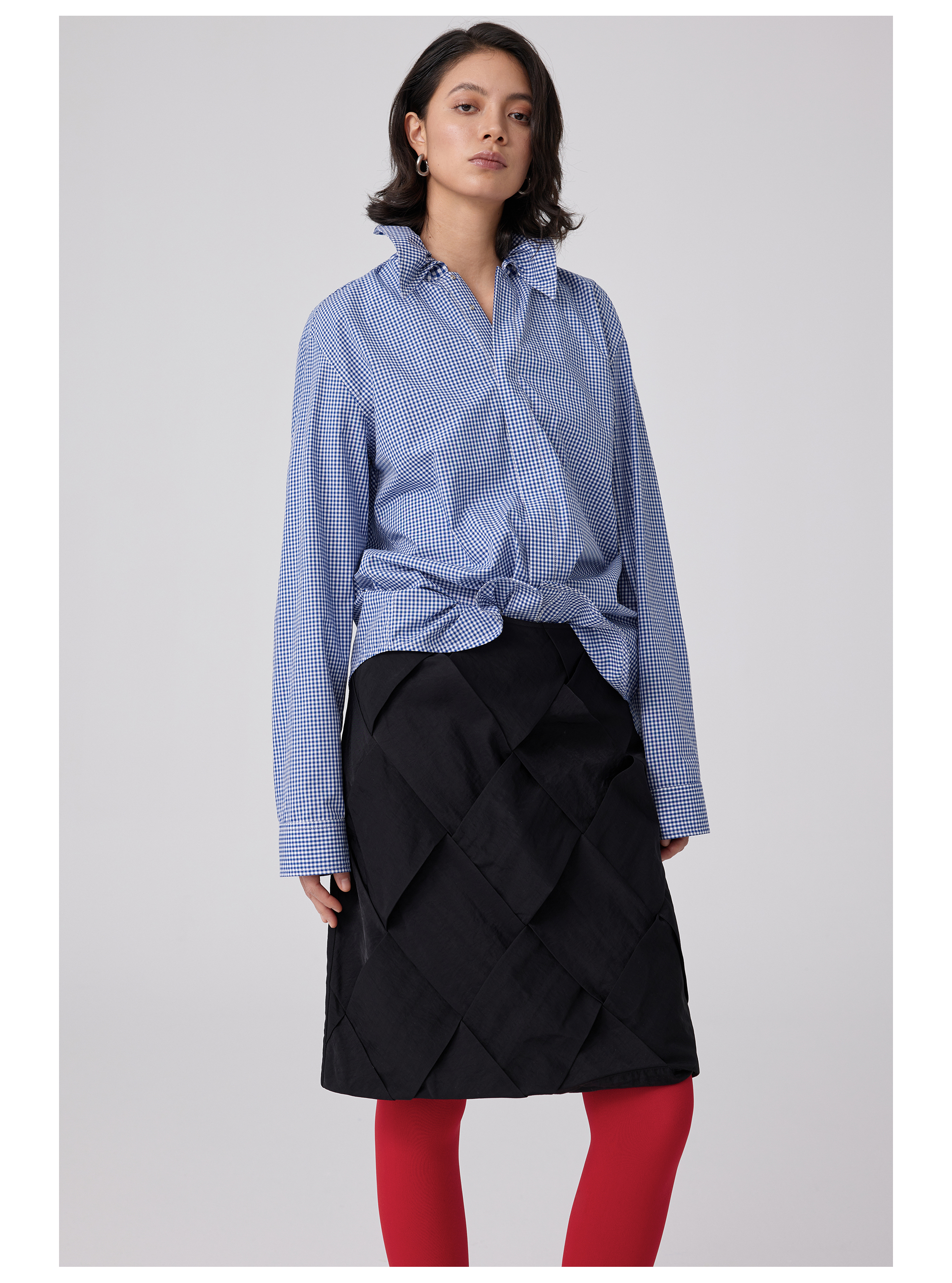 Simple Project/Y2563/“伞蜥”格纹收腰长袖衬衫