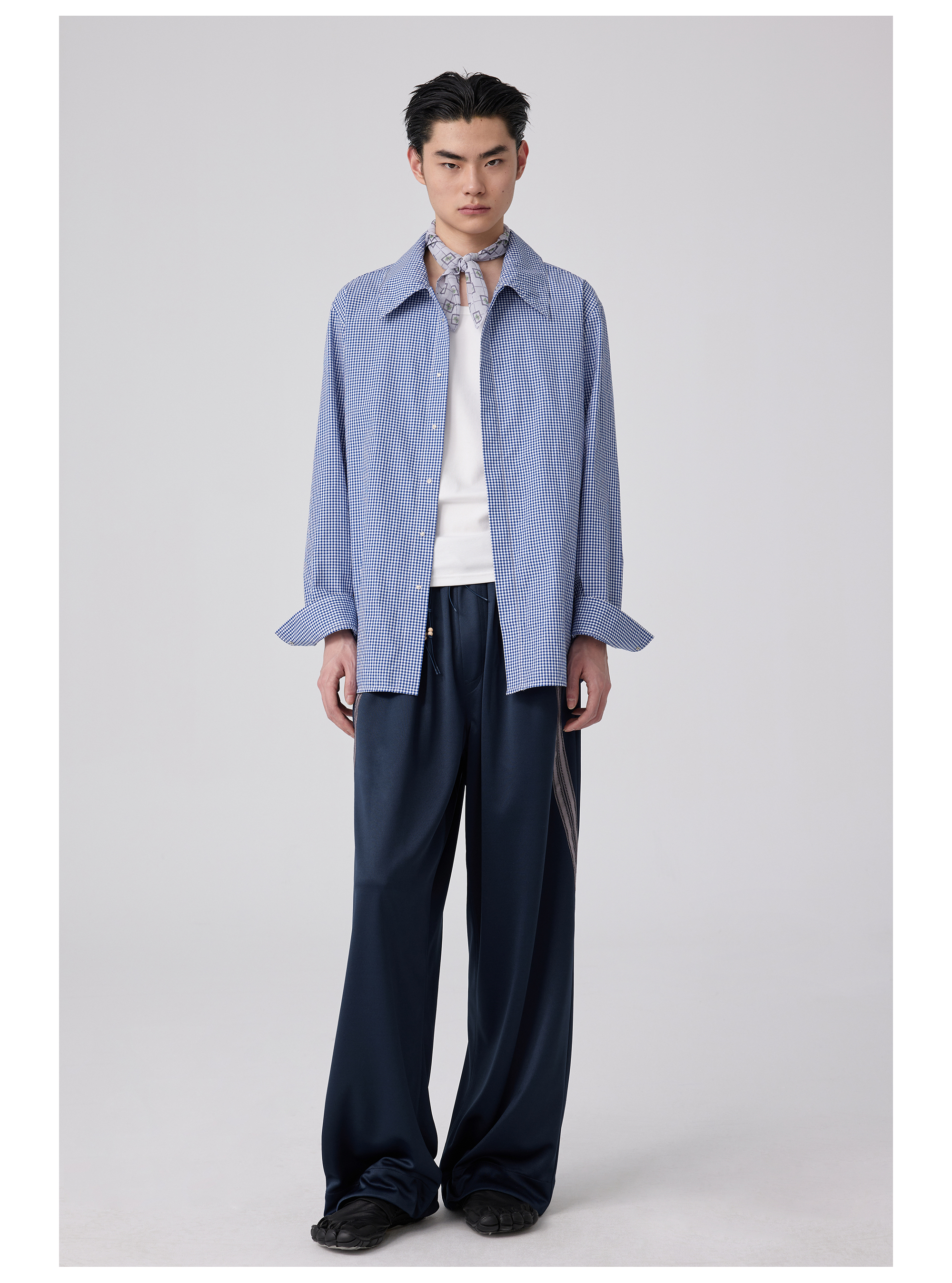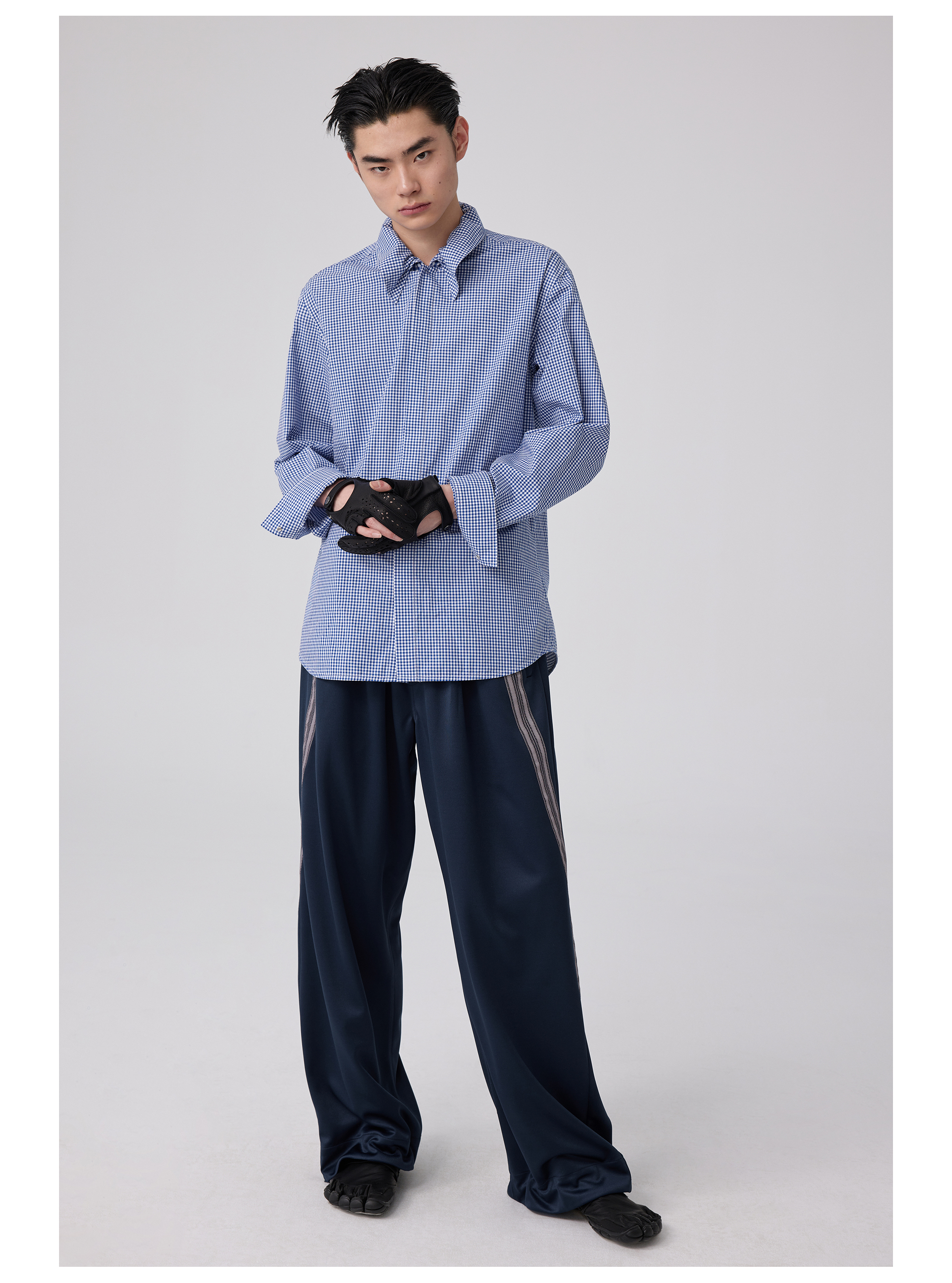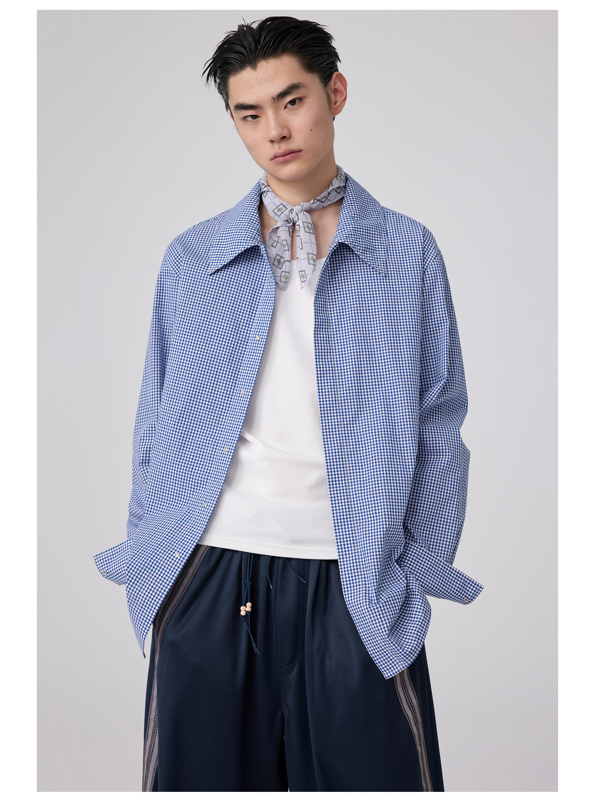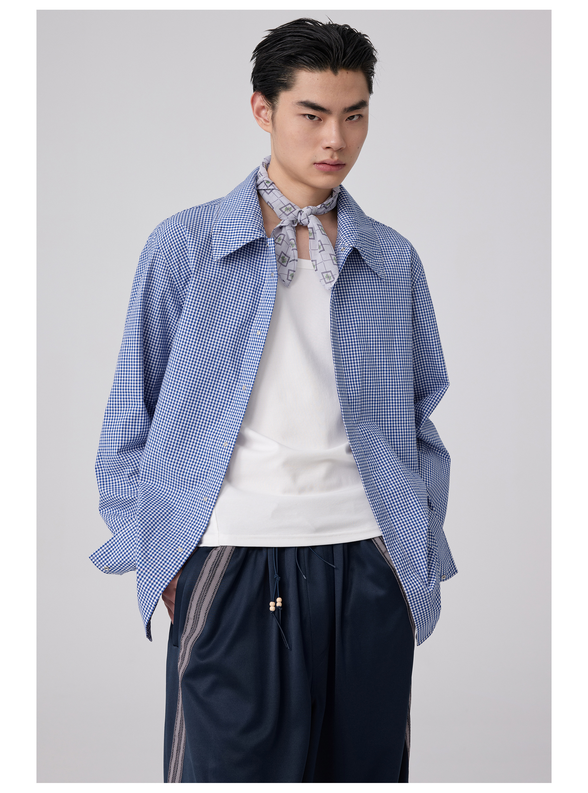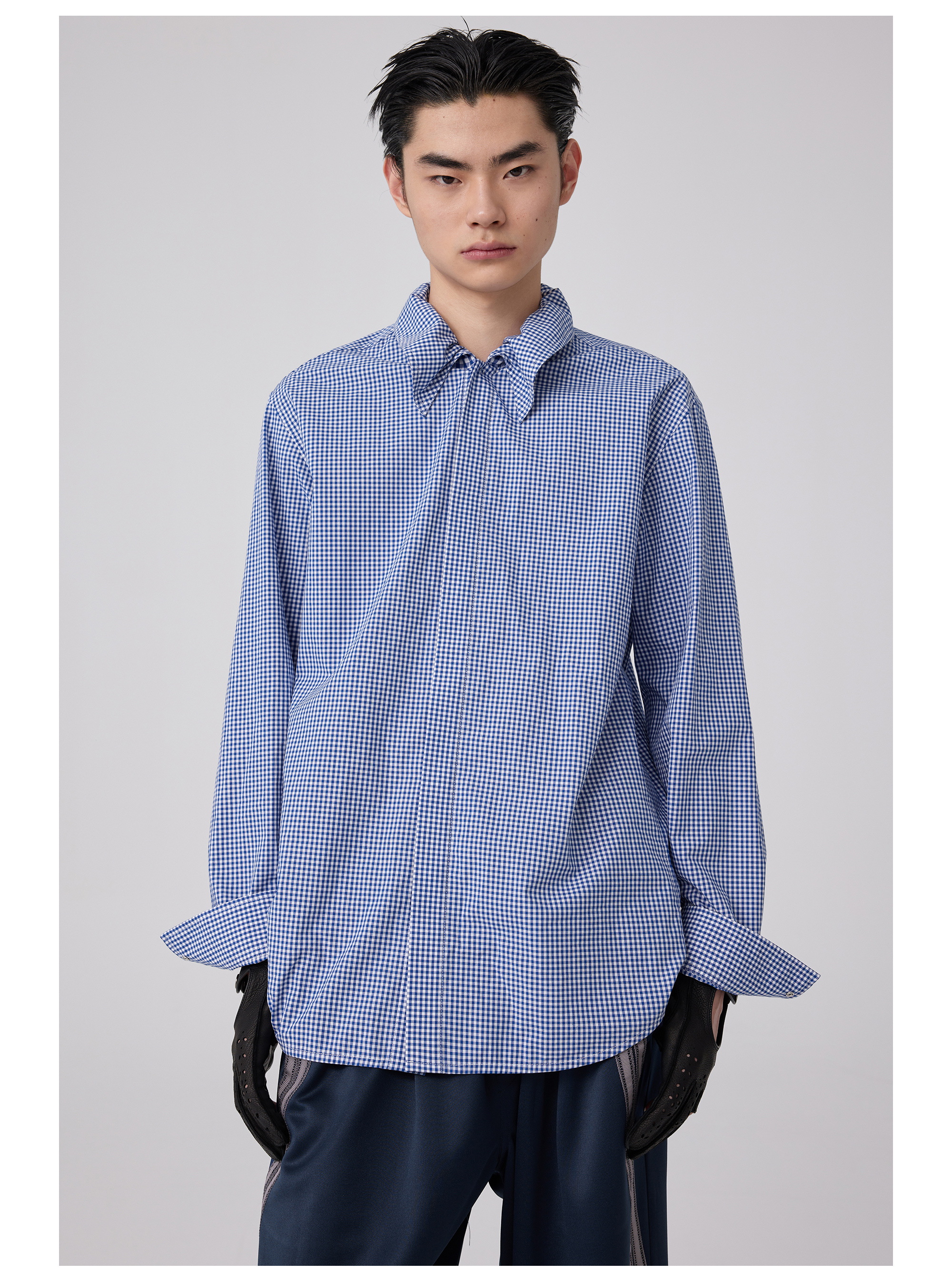 Simple Project/Y2563/“伞蜥”格纹收腰长袖衬衫
