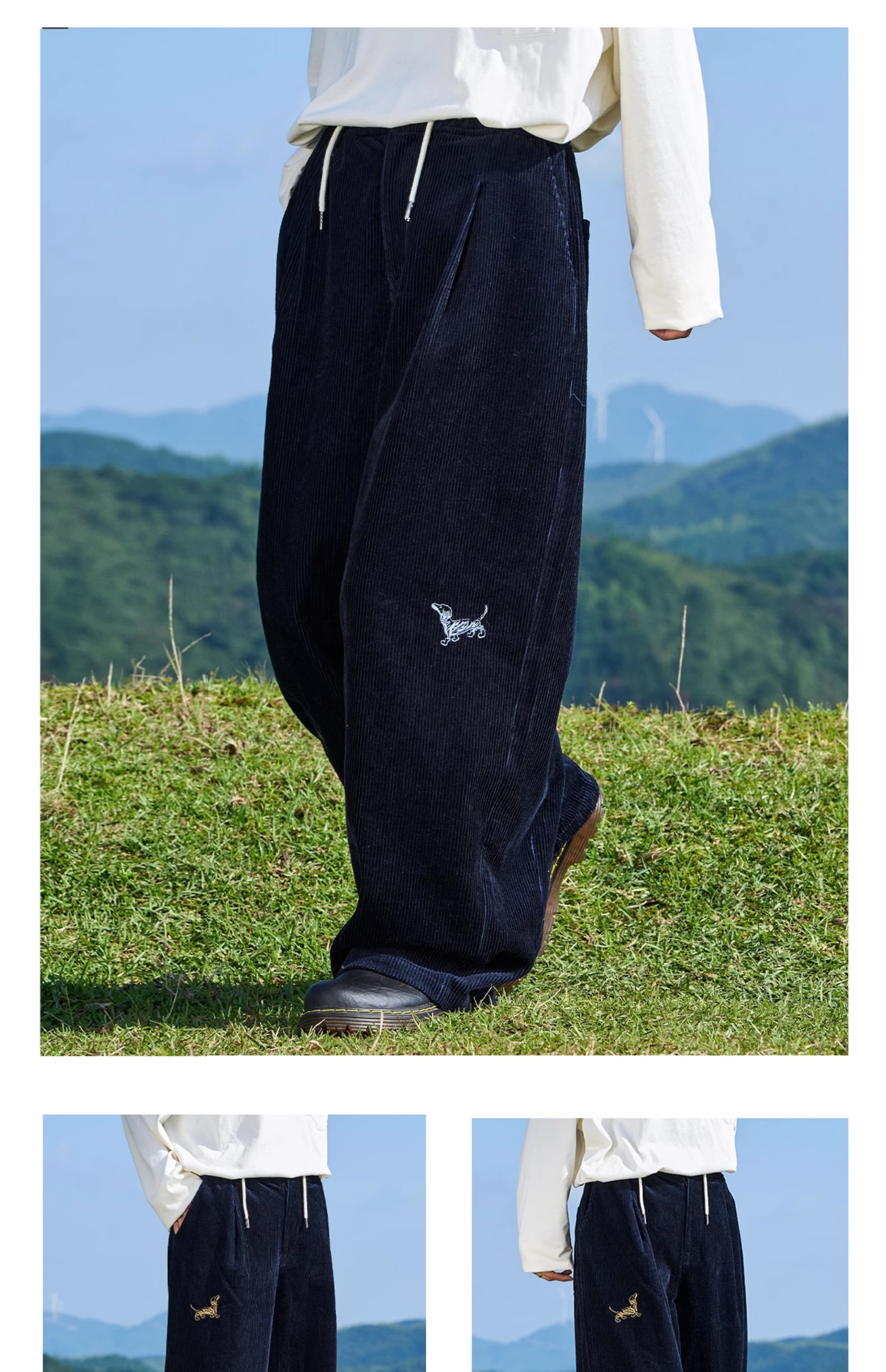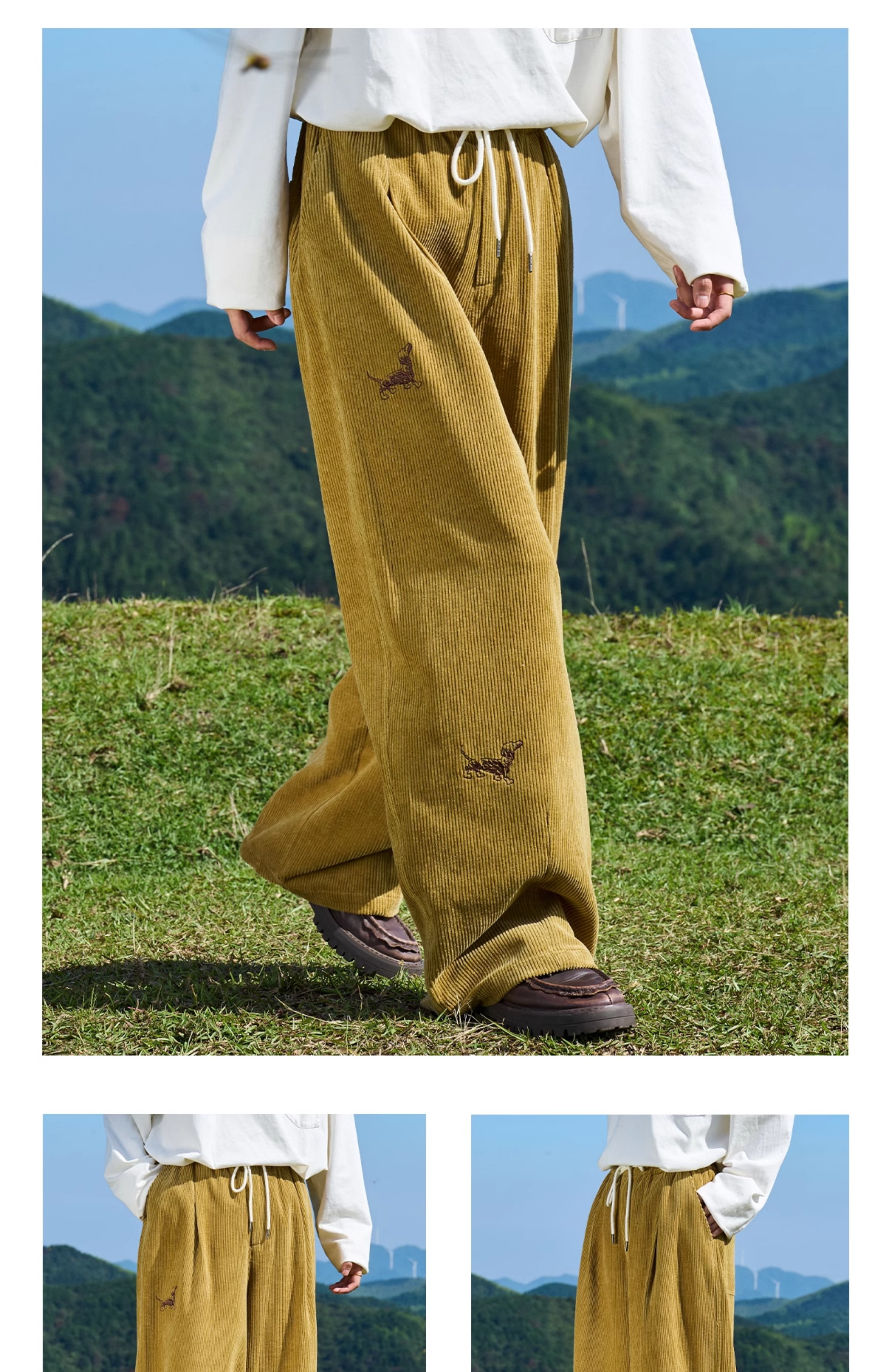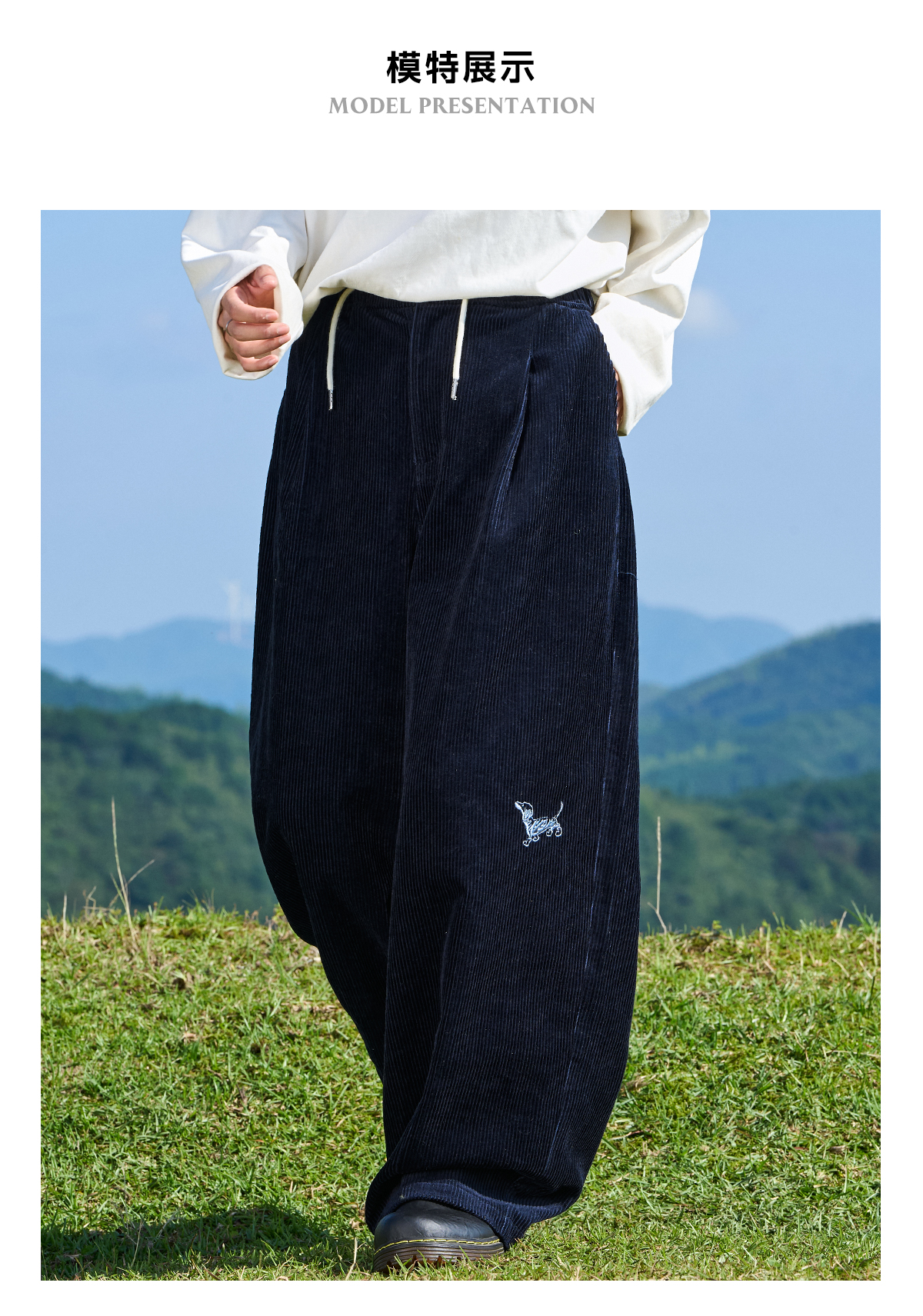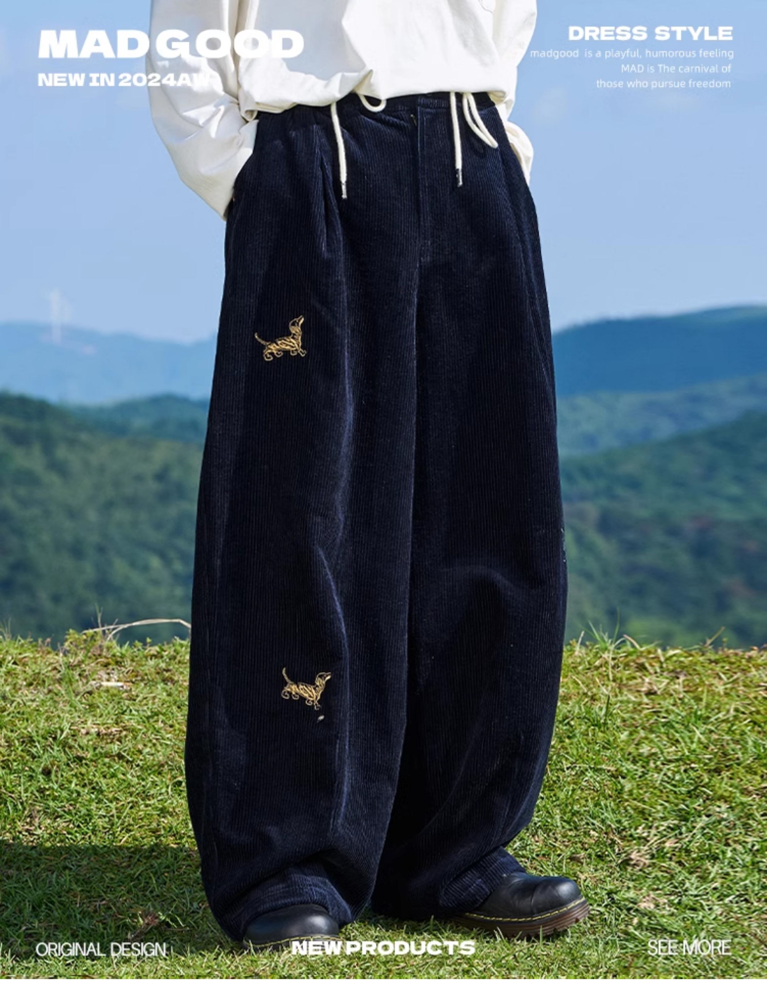 马得工地/MDGDCK244309/小狗刺绣坑条灯笼裤