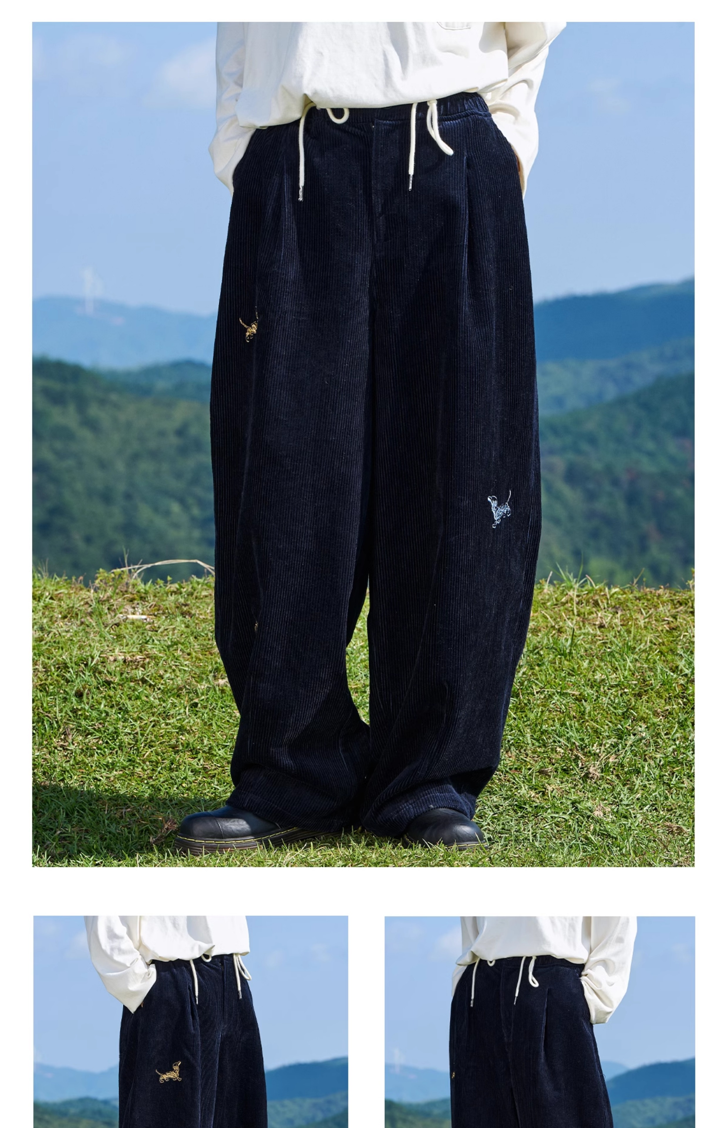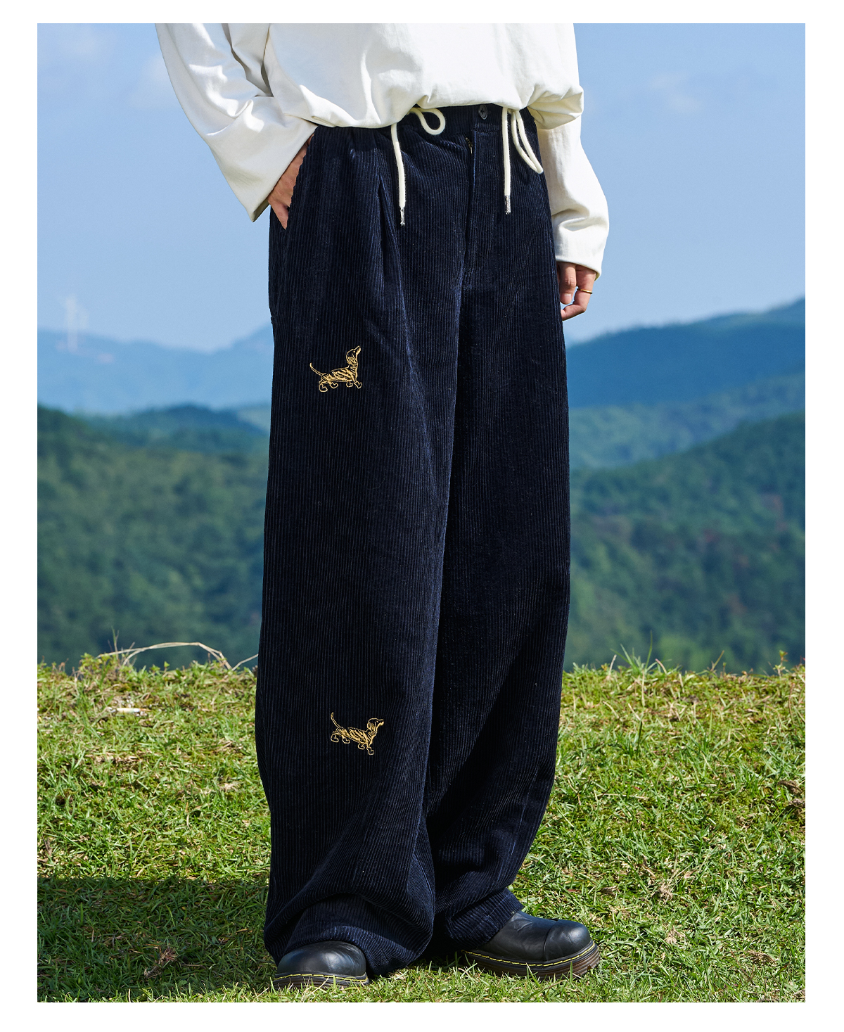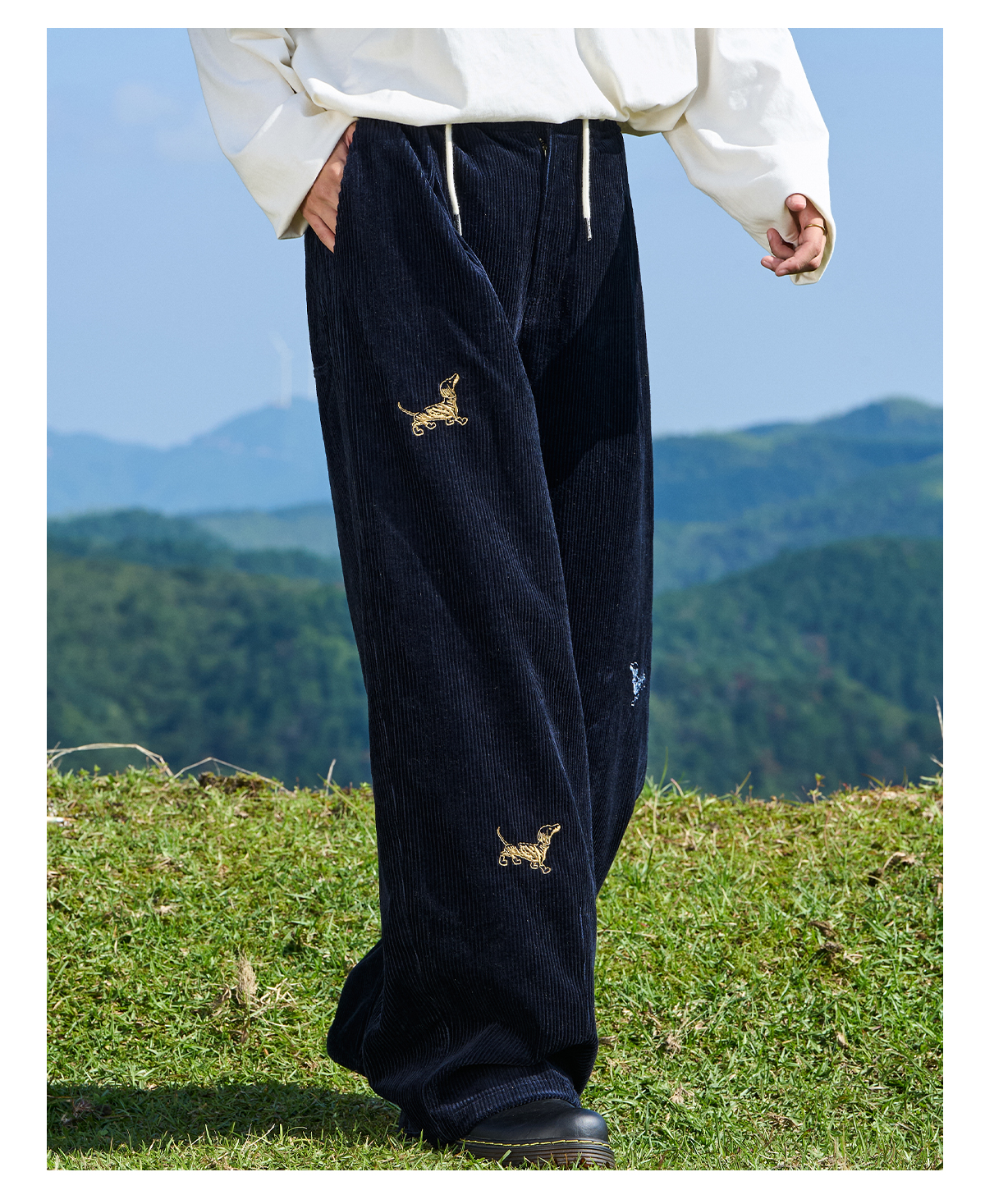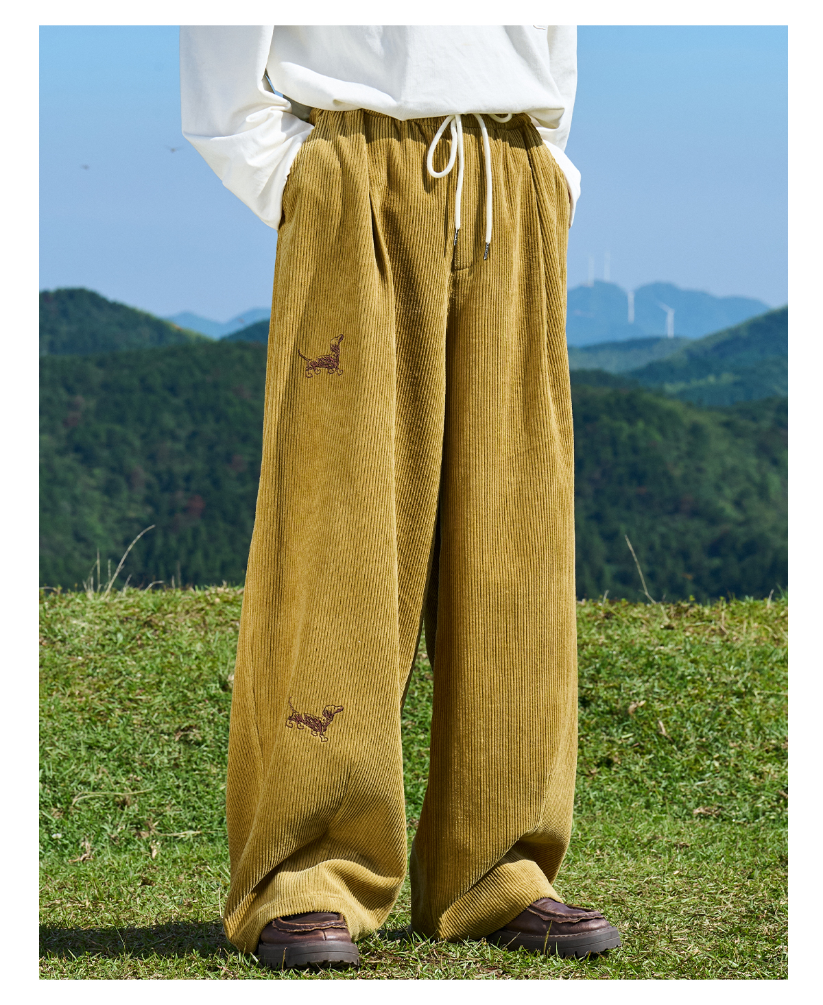 马得工地/MDGDCK244309/小狗刺绣坑条灯笼裤