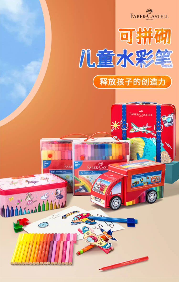 辉柏嘉儿童可水洗彩色笔 60色塑料装/ 33色小汽车铁盒