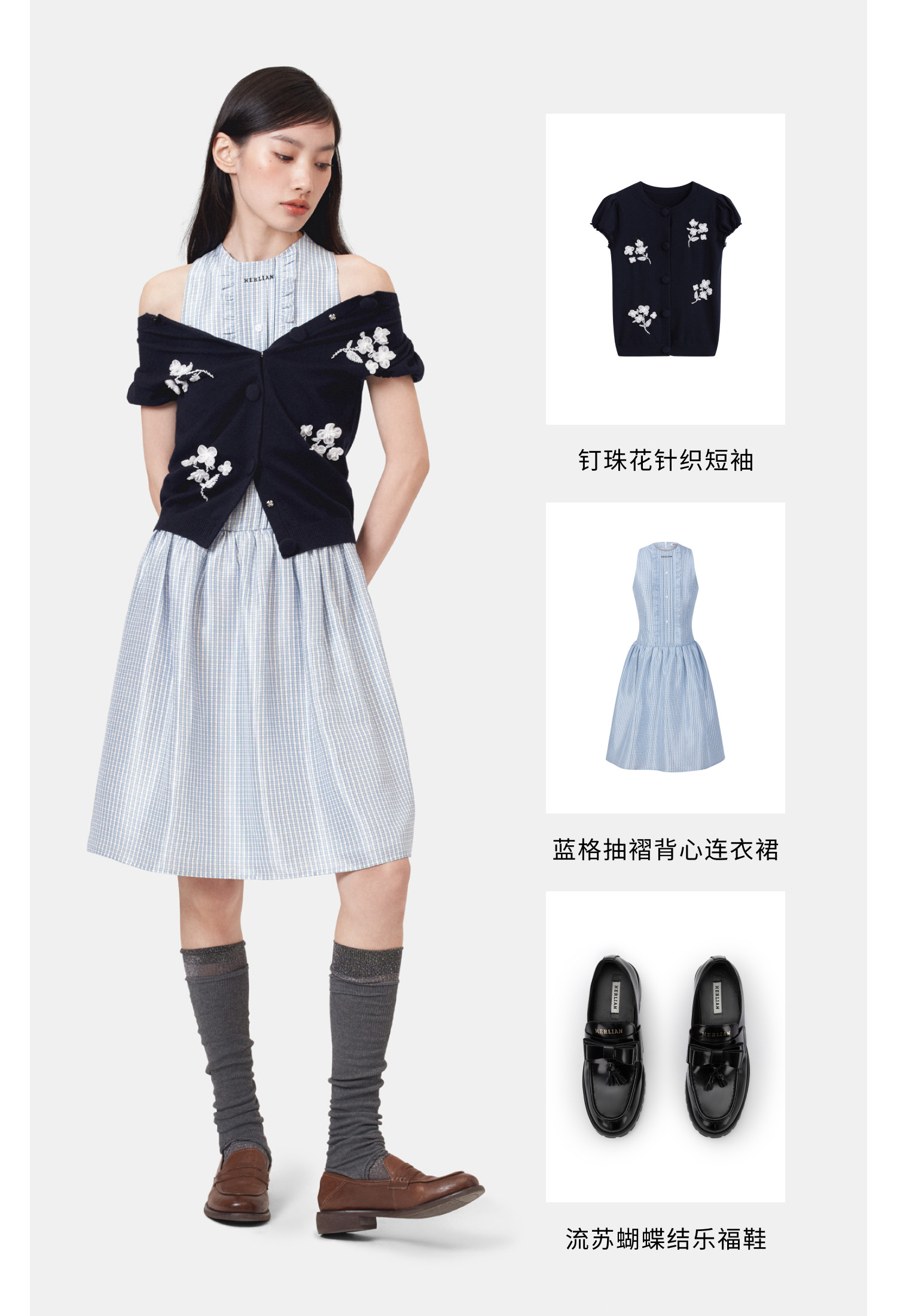 HERLIAN 2025年春季女士两件套手工立体花背心连衣裙