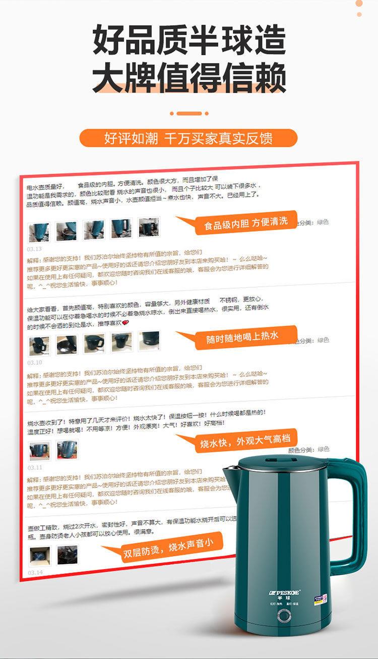 电热水壶双层大容量家用快速烧水壶礼品防烫自动断电礼品