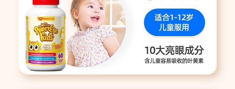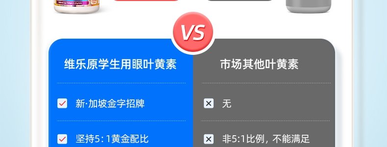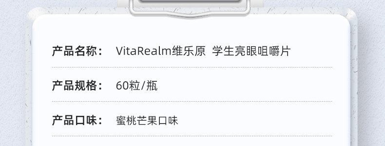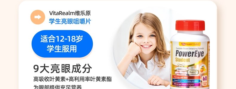 【保税】新加坡 维乐原VitaRealm学生叶黄素蓝莓咀嚼片60粒,适合12-15岁青少年
