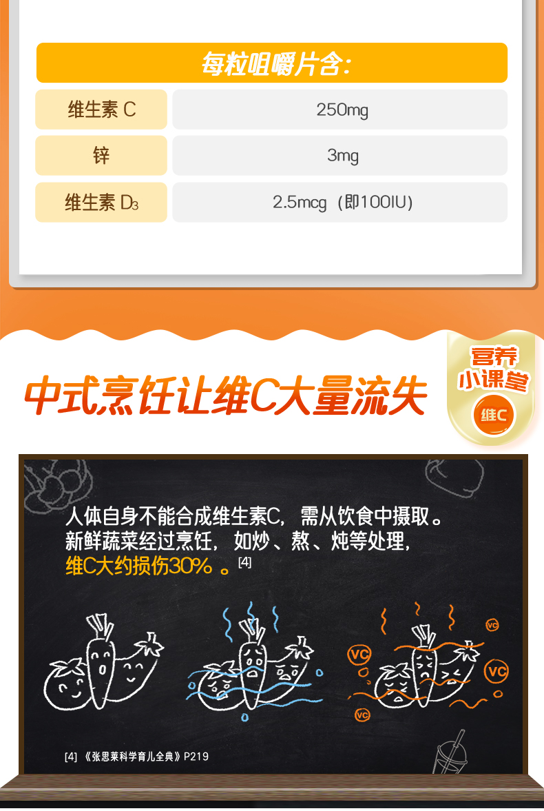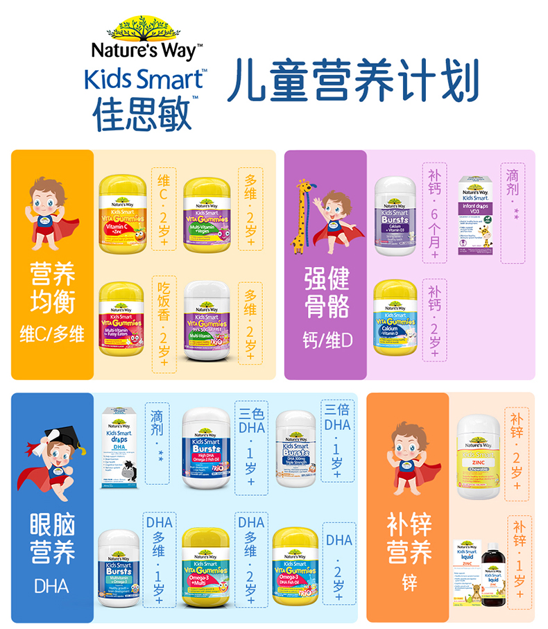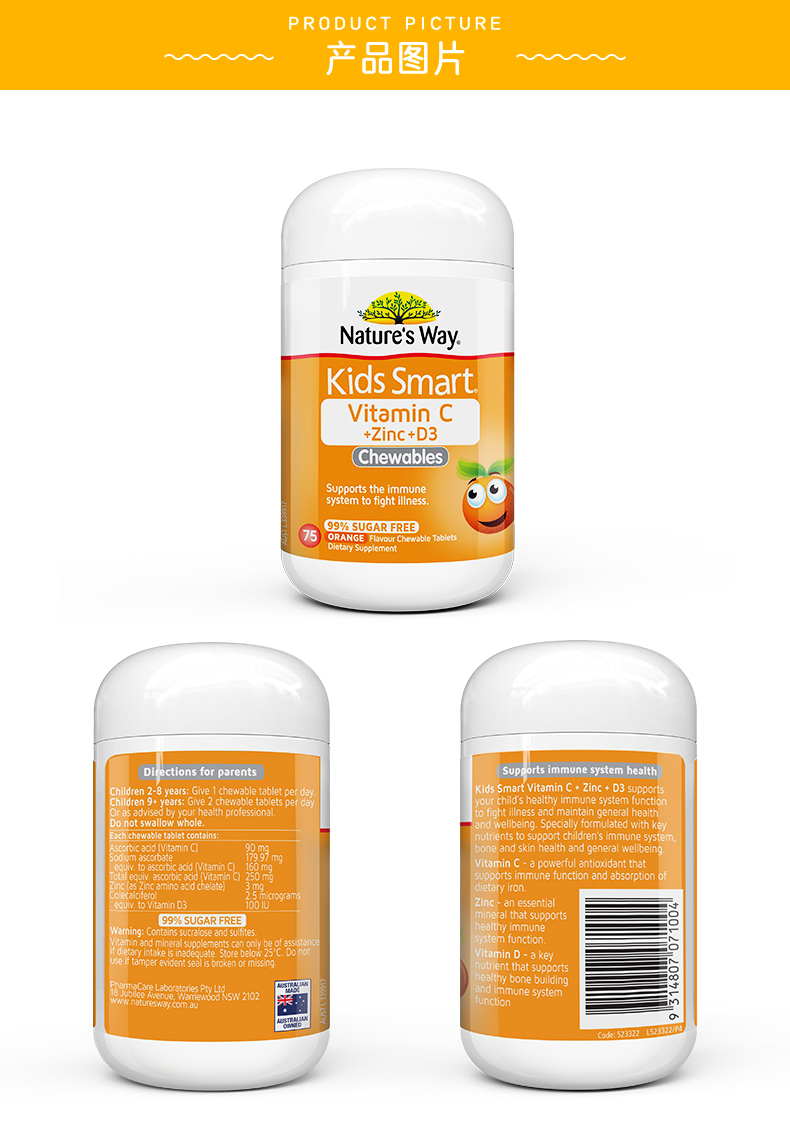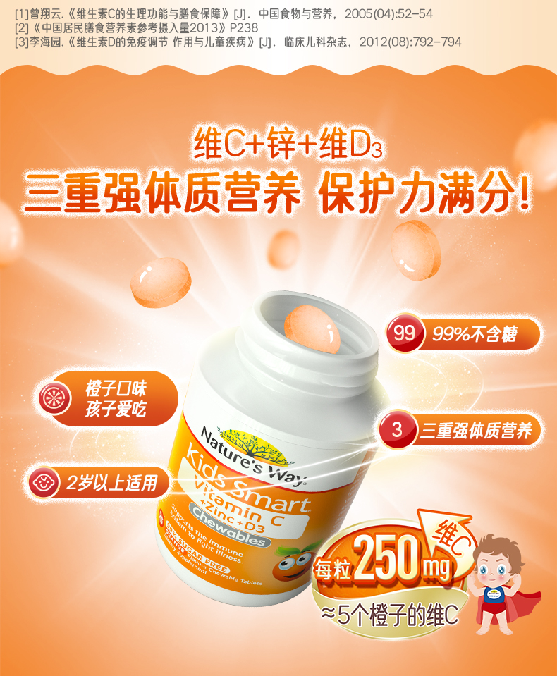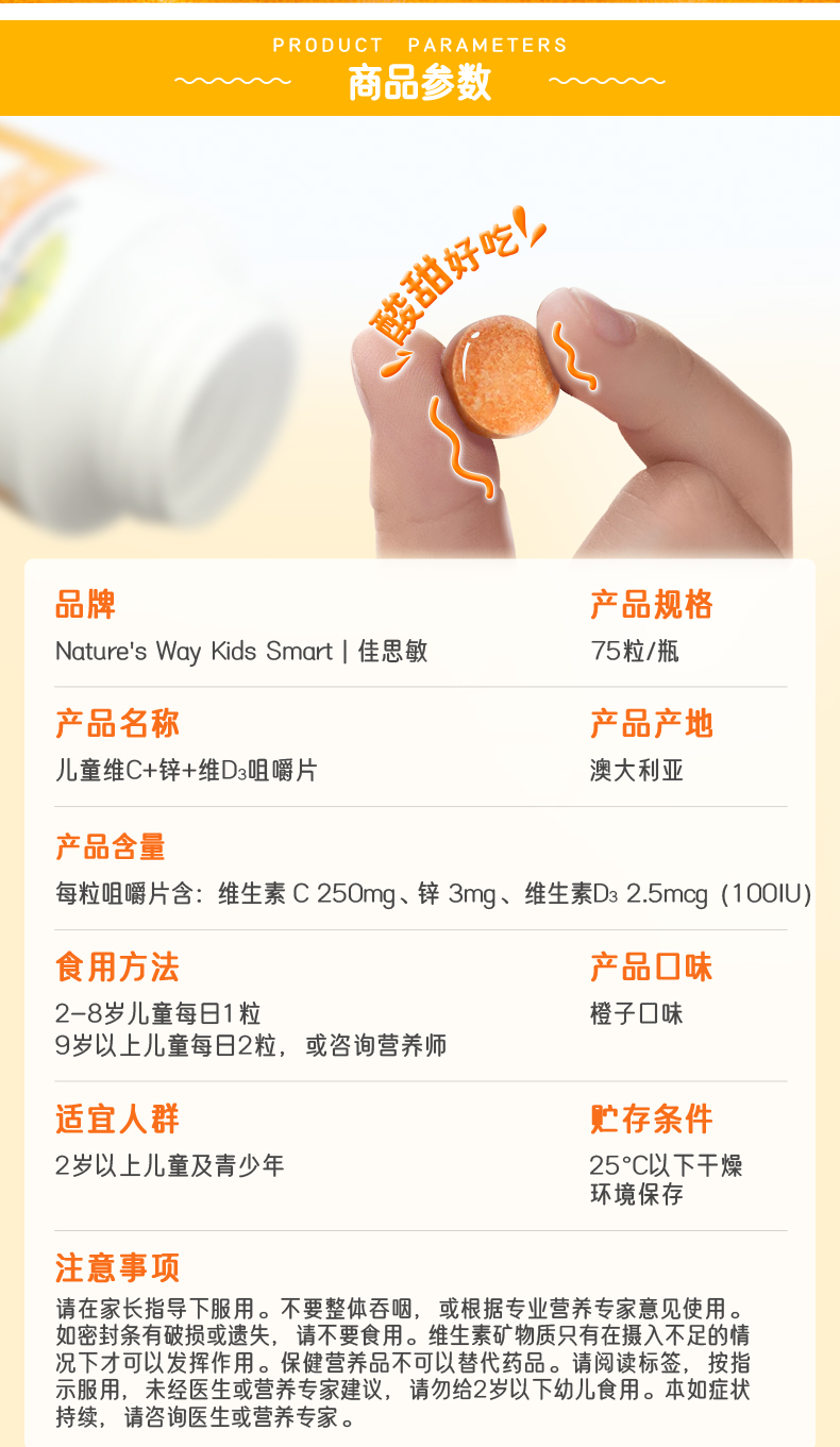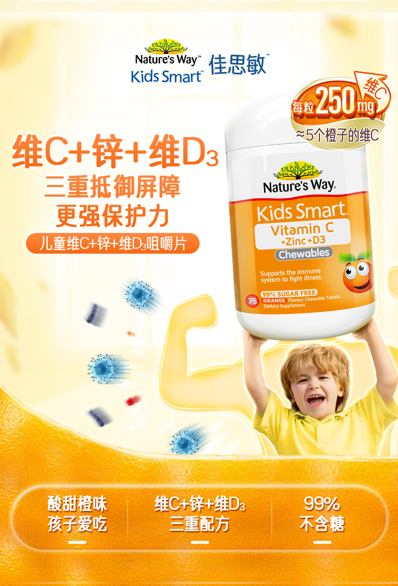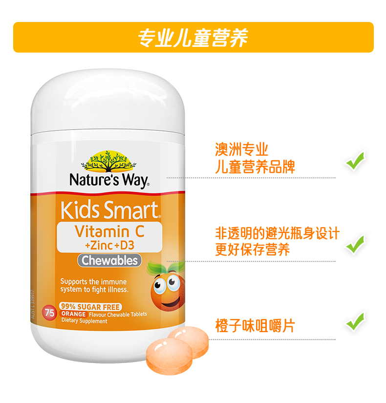 佳思敏(Nature's Way)儿童 VC+锌+D3咀嚼片75片(甜橙味)