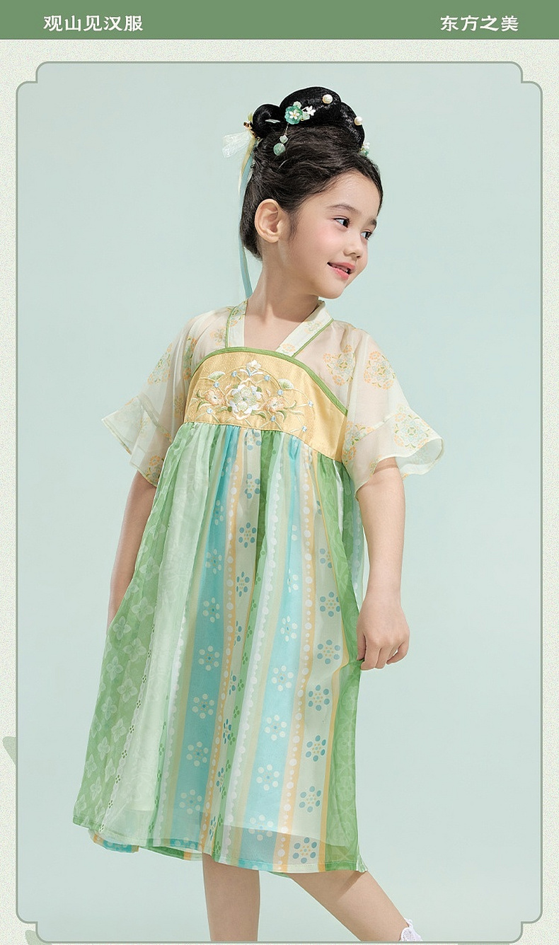 笛莎/Deesha 观山见2026年夏季新款童装女童国风刺绣连衣裙