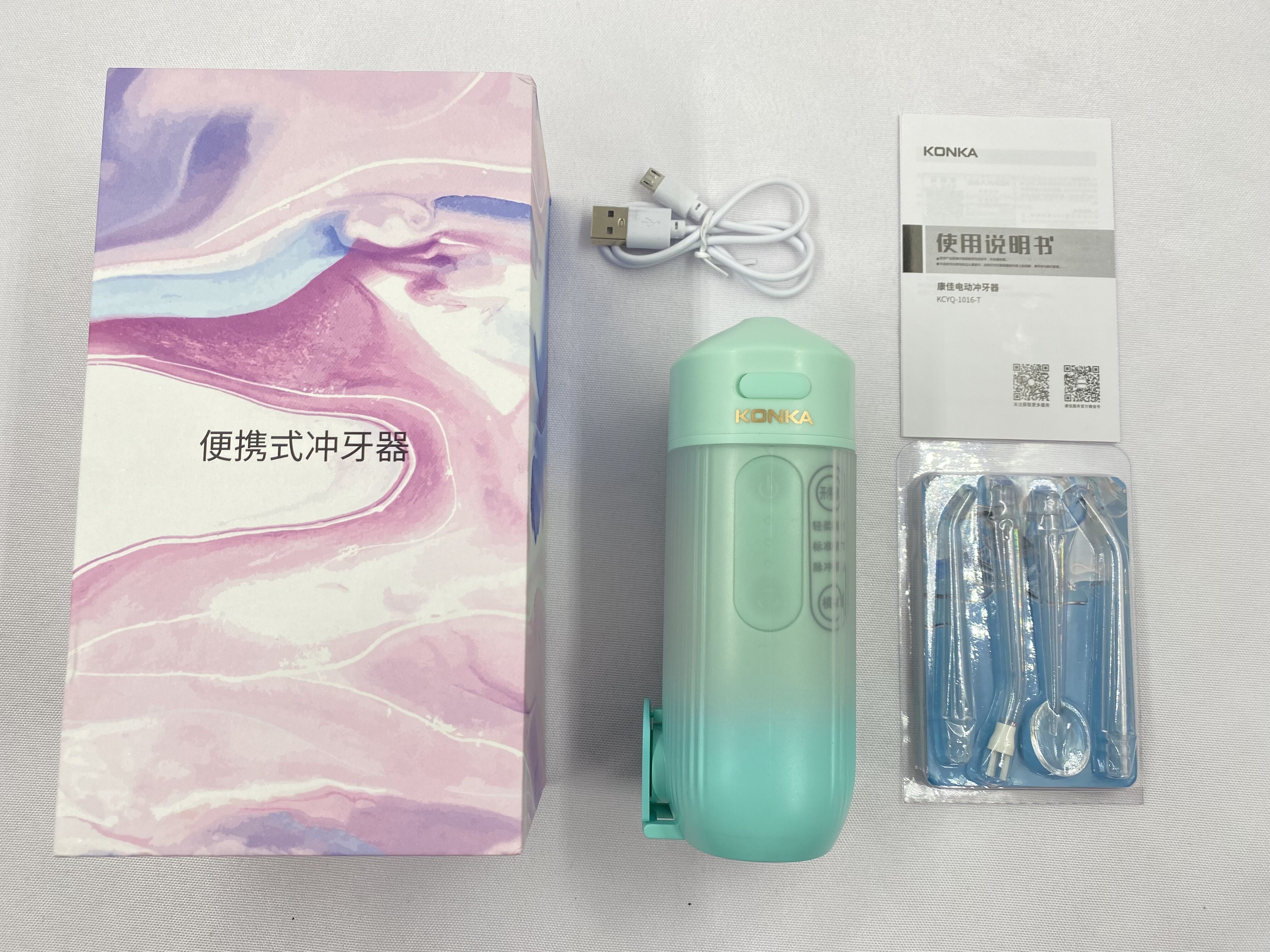 【康佳KONKA 电动冲牙器】伸缩水箱200ml大容量 IPX6级全身防水 USB充电 3档调节 冲洗无忧 高频脉冲 深度清洁 外出方便携带