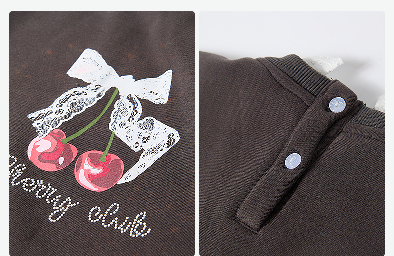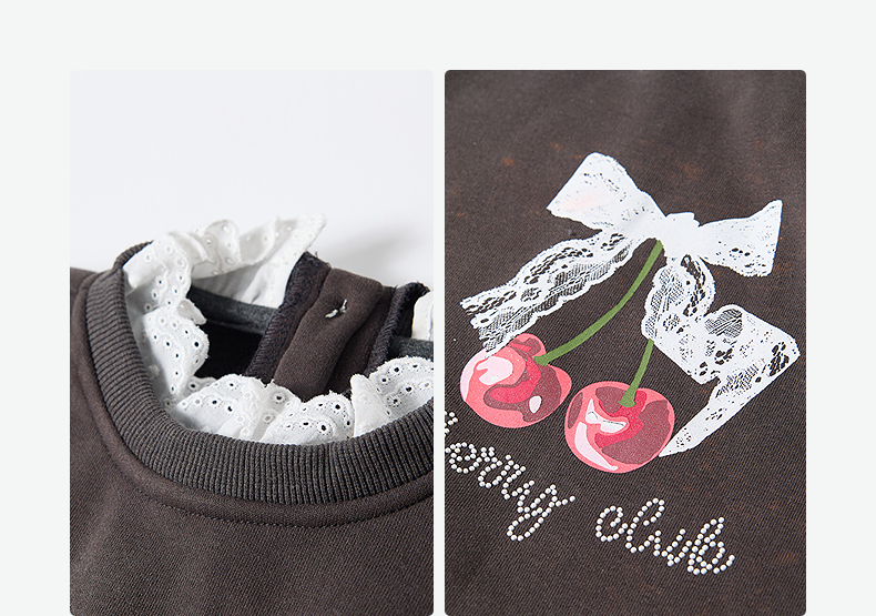笛莎Deesha 童装女童卫衣2025冬新款女童花边领樱桃卫衣
