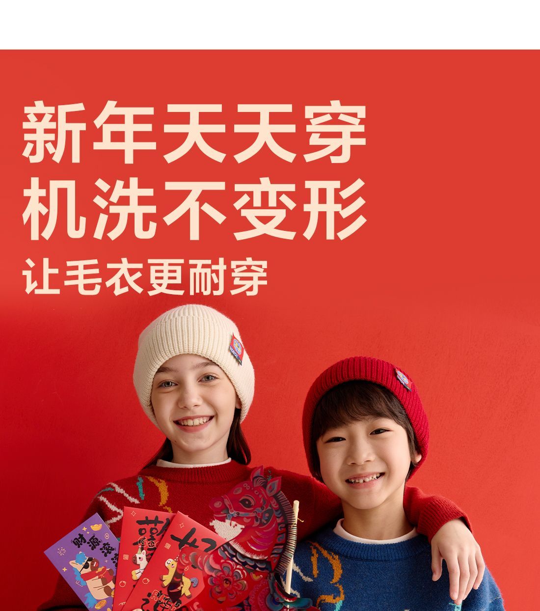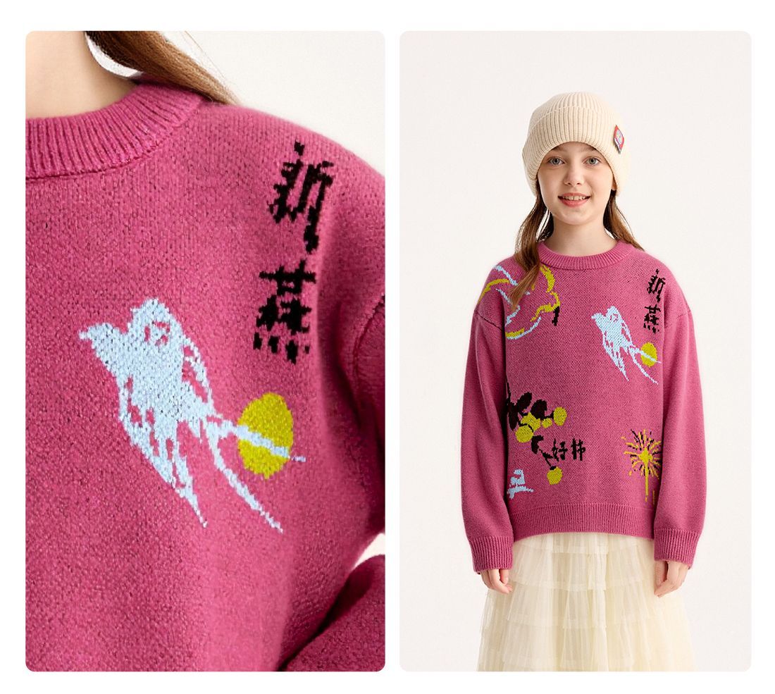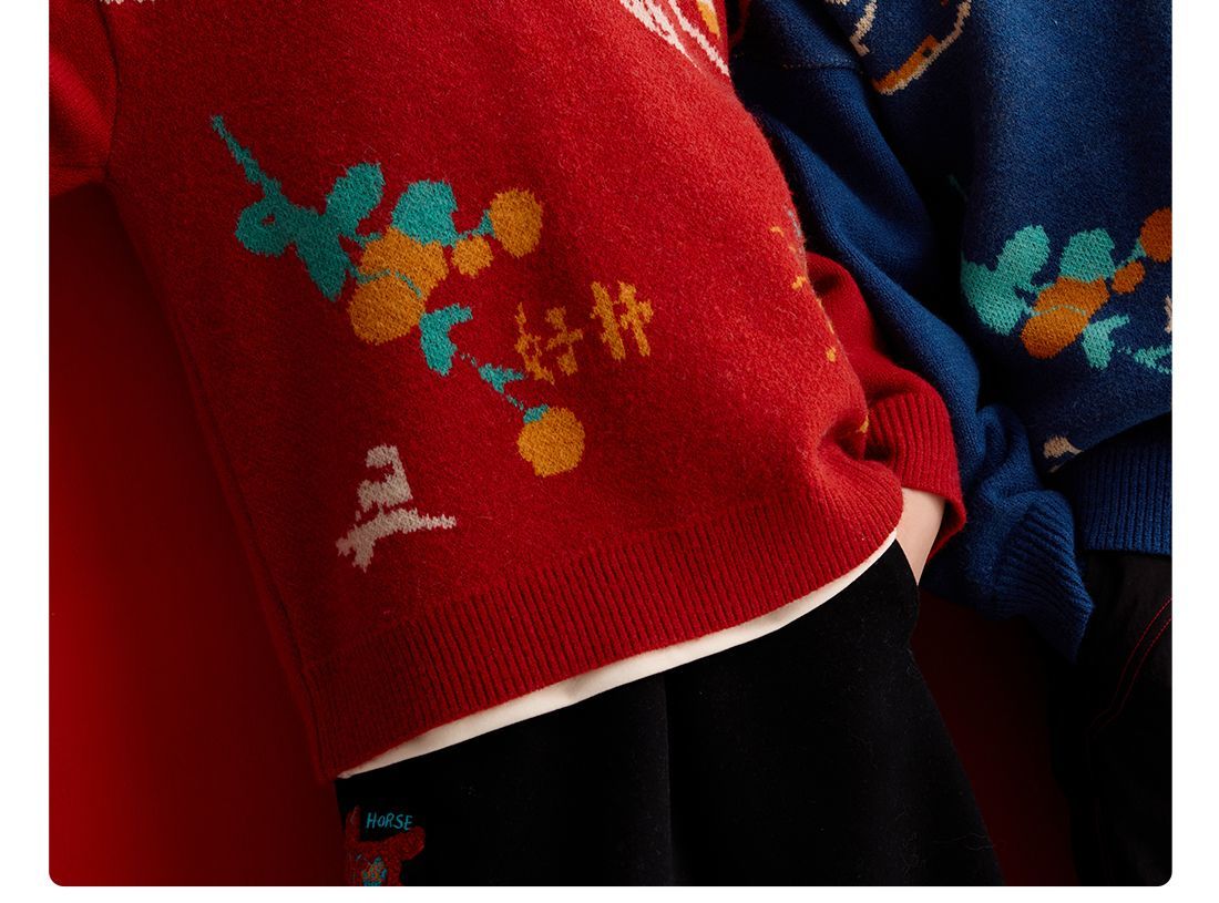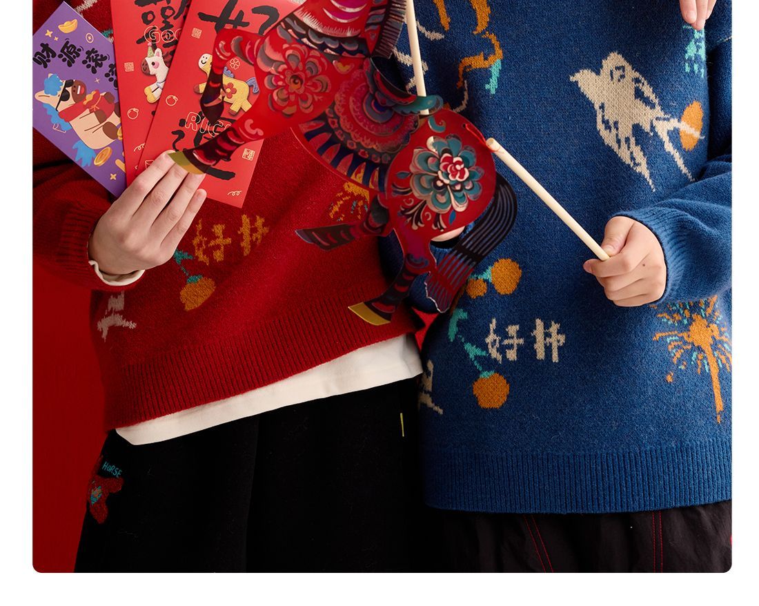 【超级马力】咕噜日记儿童“新燕好柿子”提花毛衣男女童红色新年PDMY2519