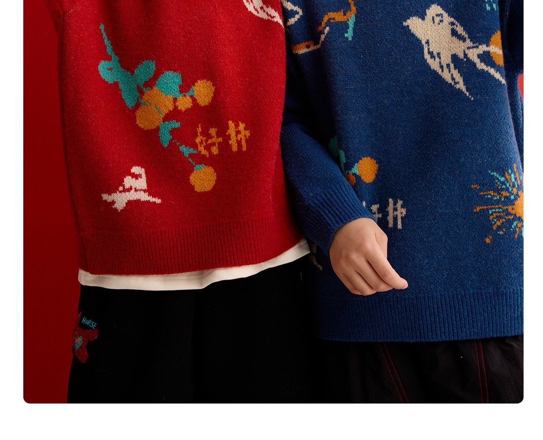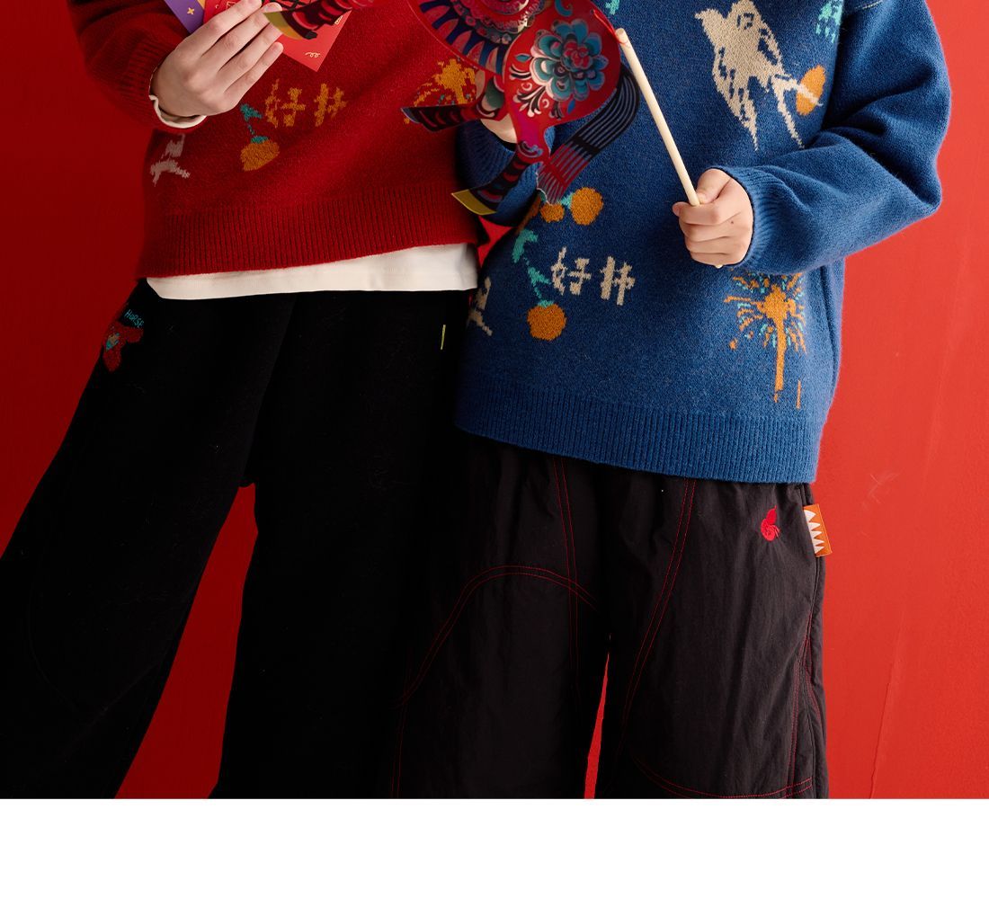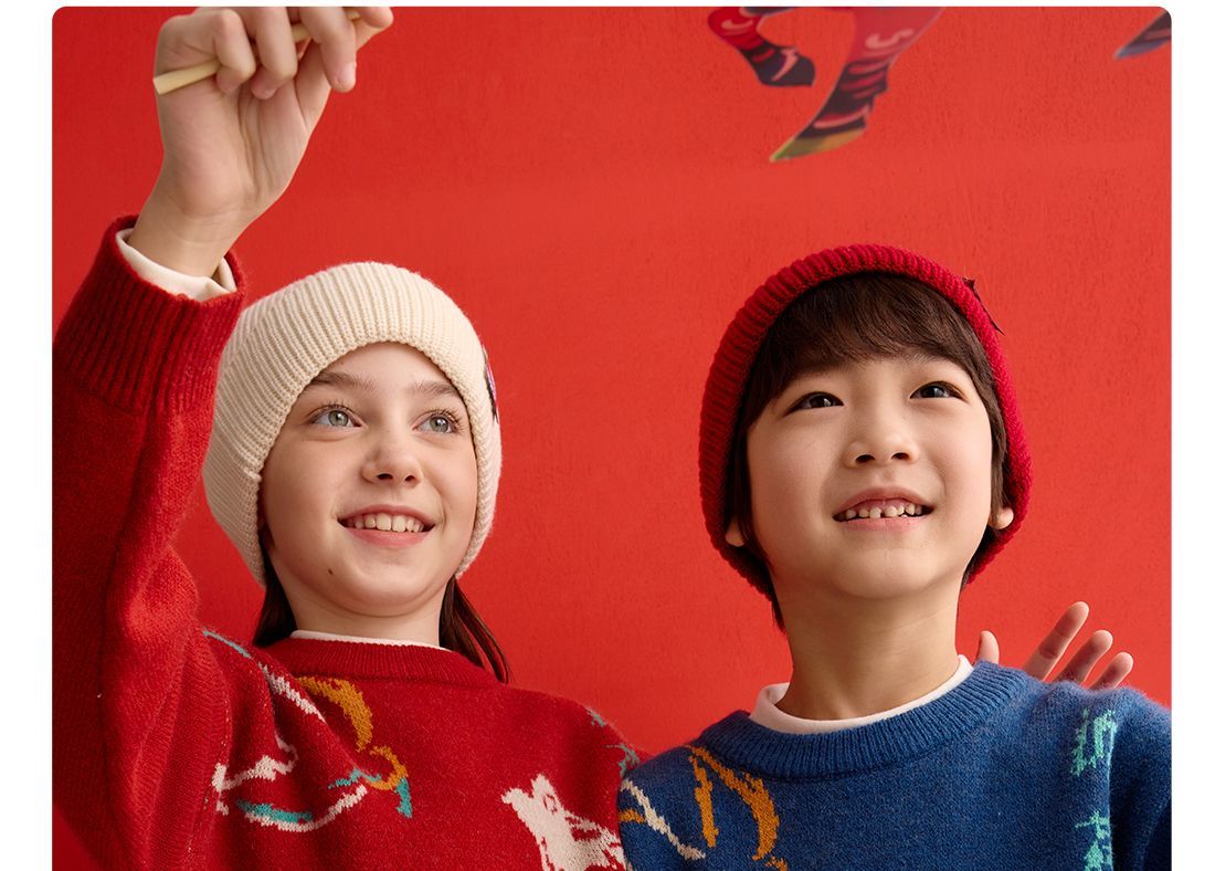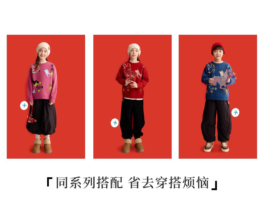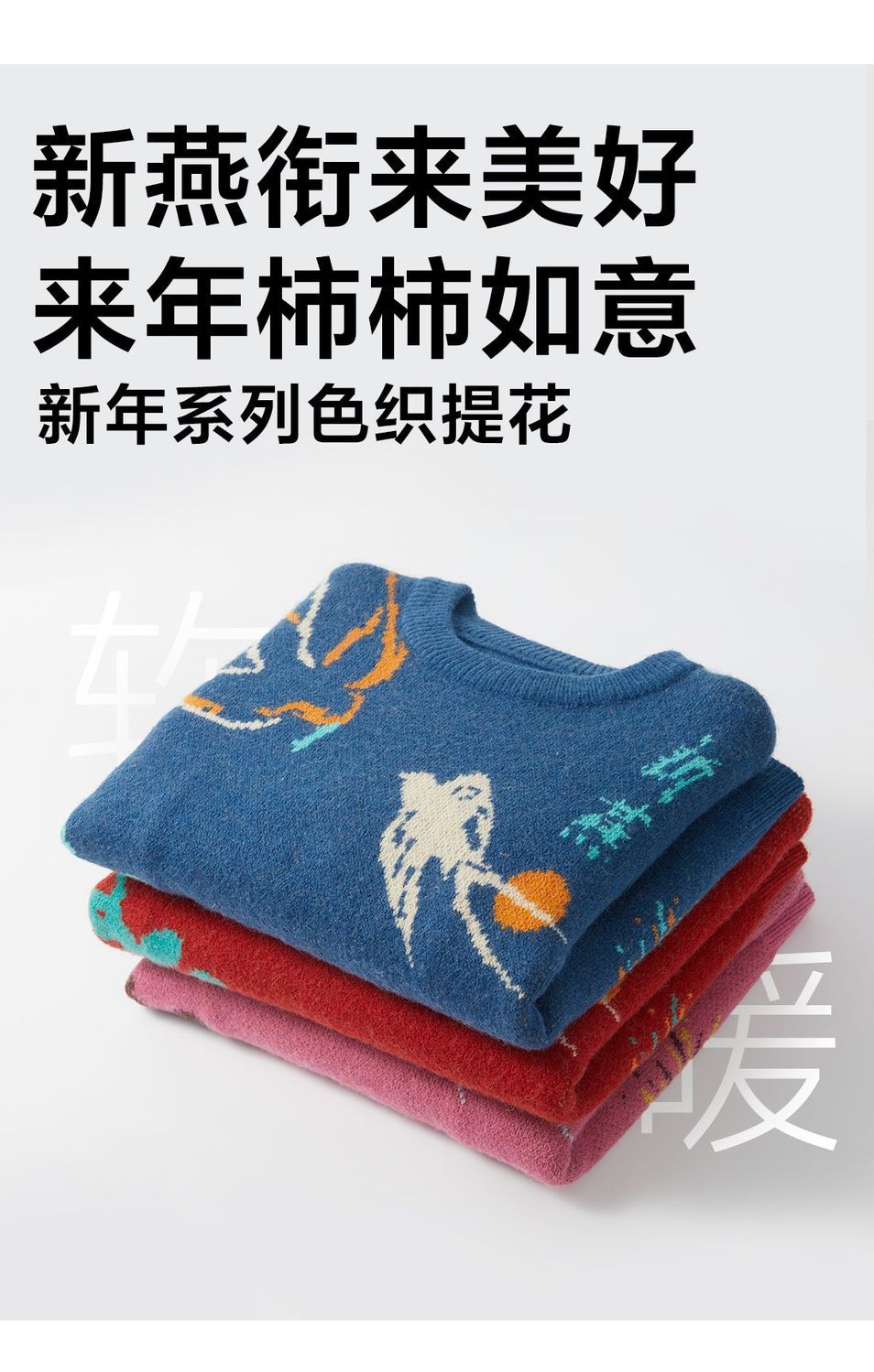 【超级马力】咕噜日记儿童“新燕好柿子”提花毛衣男女童红色新年PDMY2519