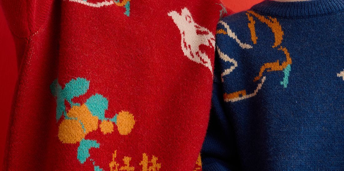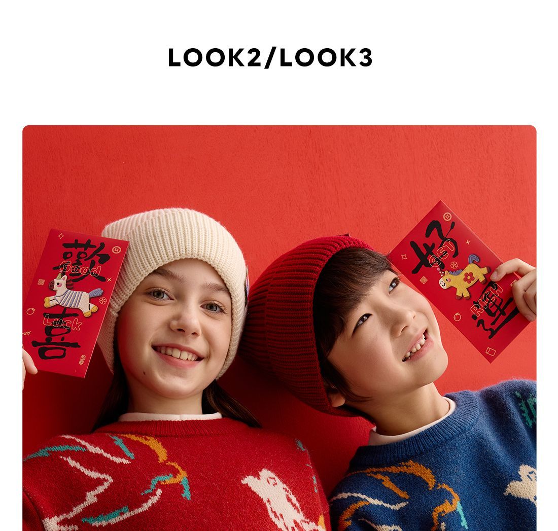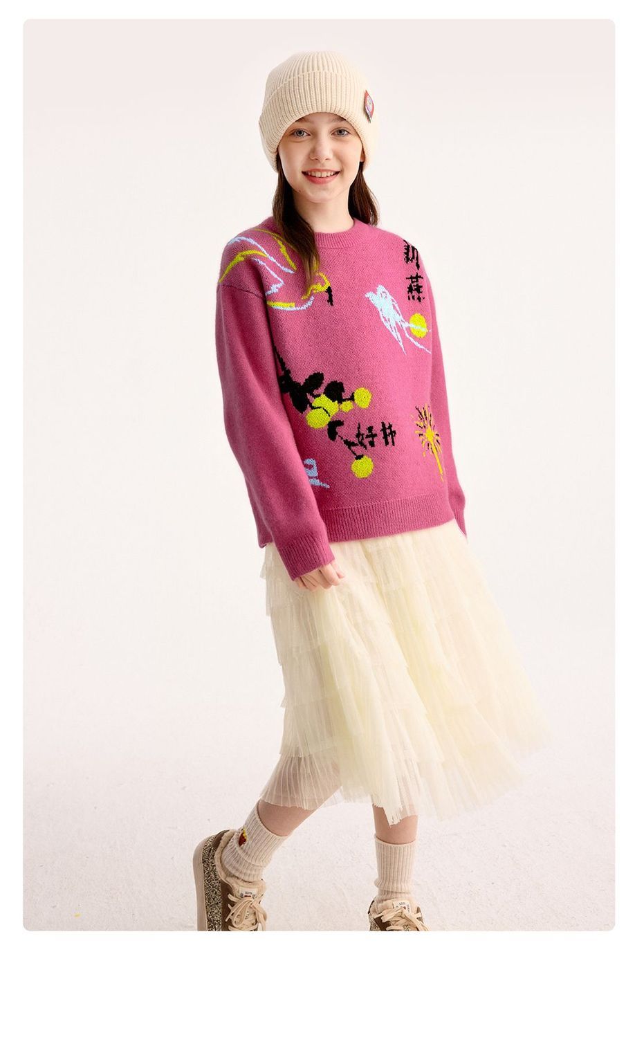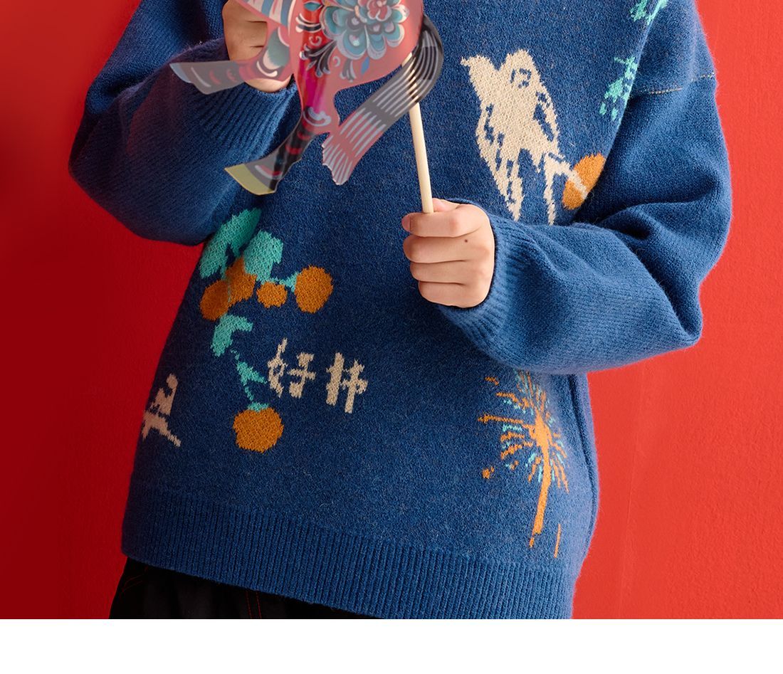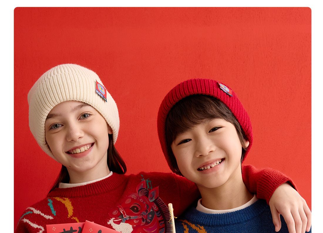 【超级马力】咕噜日记儿童“新燕好柿子”提花毛衣男女童红色新年PDMY2519