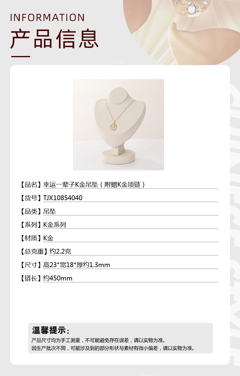 【品名】幸运一辈子K金吊坠(附赠K金项链)