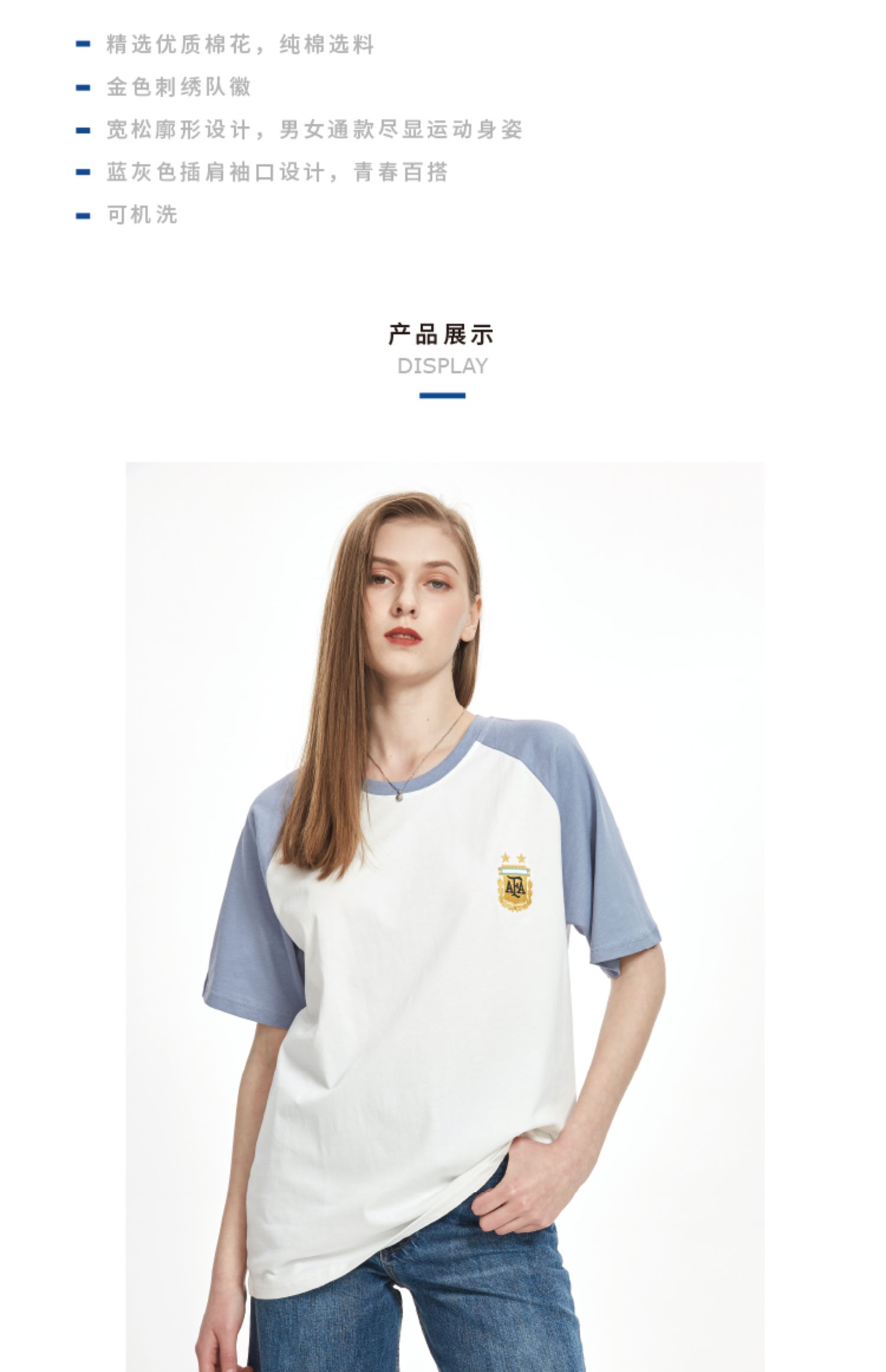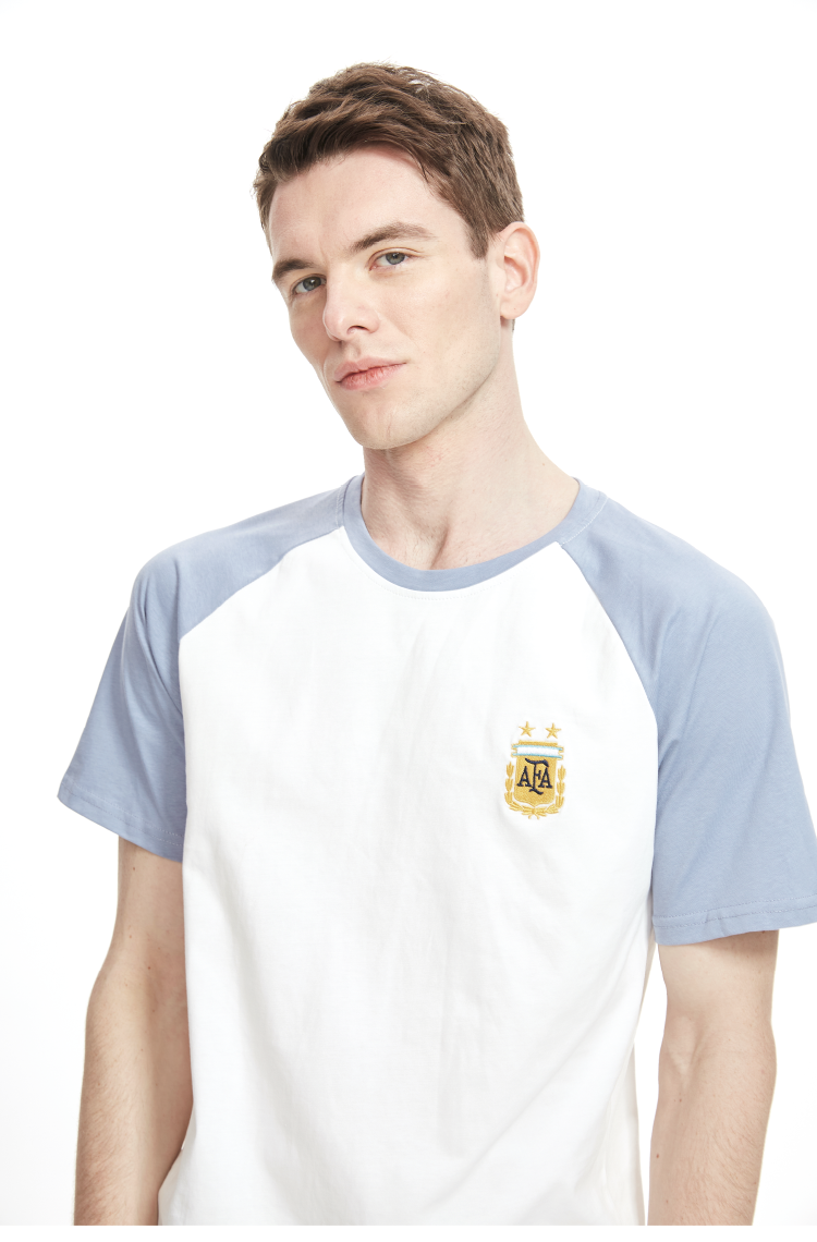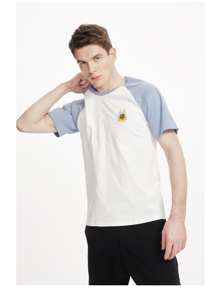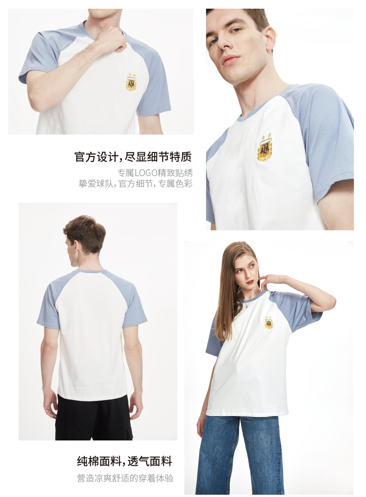 阿根廷国家队官方商品丨蓝白拼接短袖时尚插肩袖 梅西球迷圆领T恤