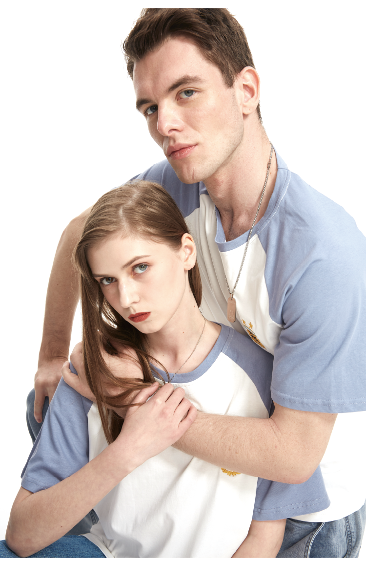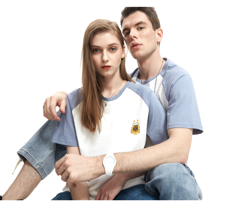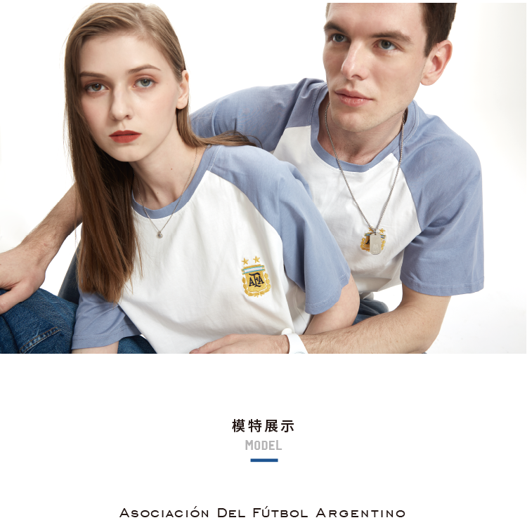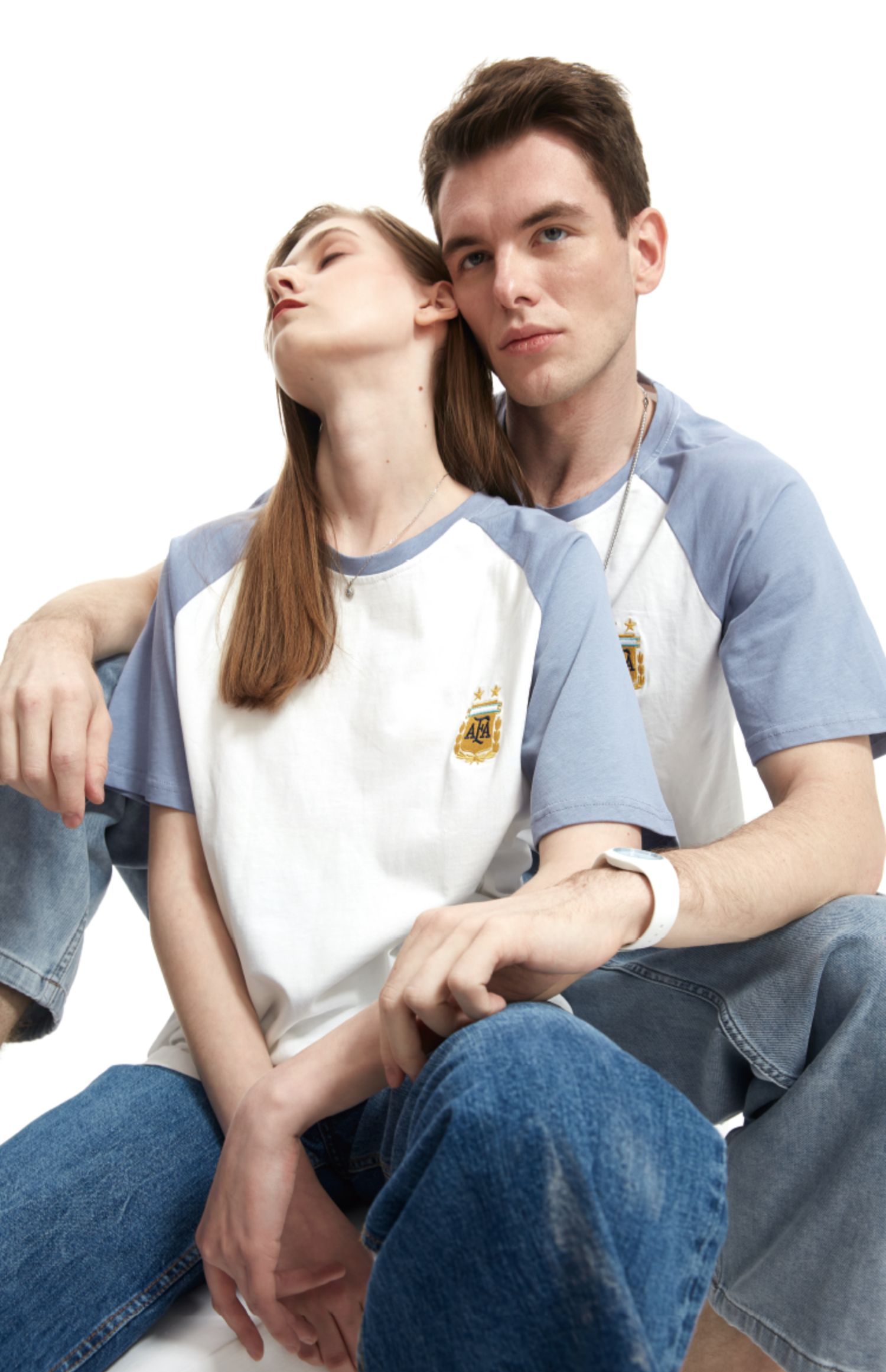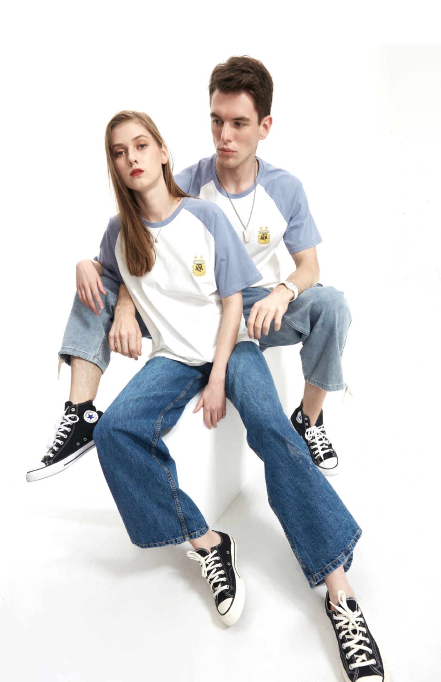 阿根廷国家队官方商品丨蓝白拼接短袖时尚插肩袖 梅西球迷圆领T恤