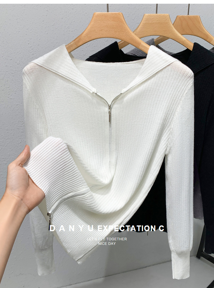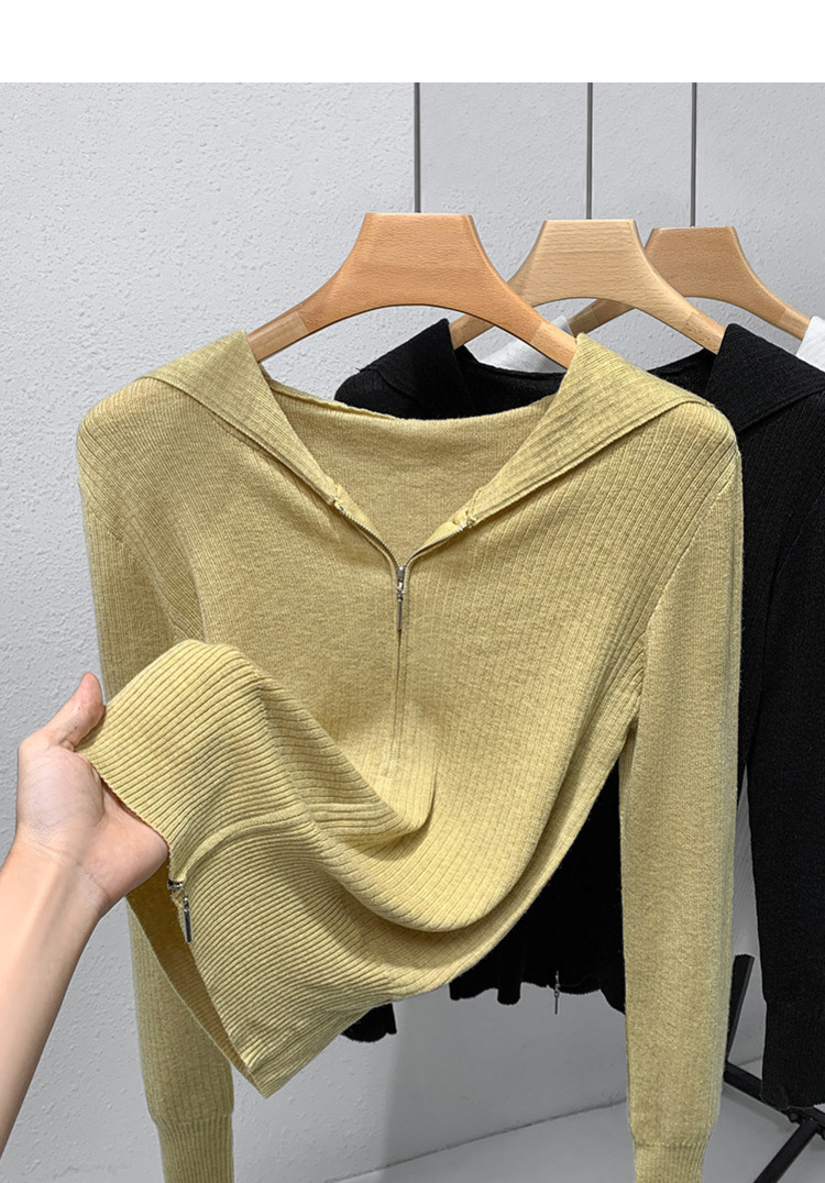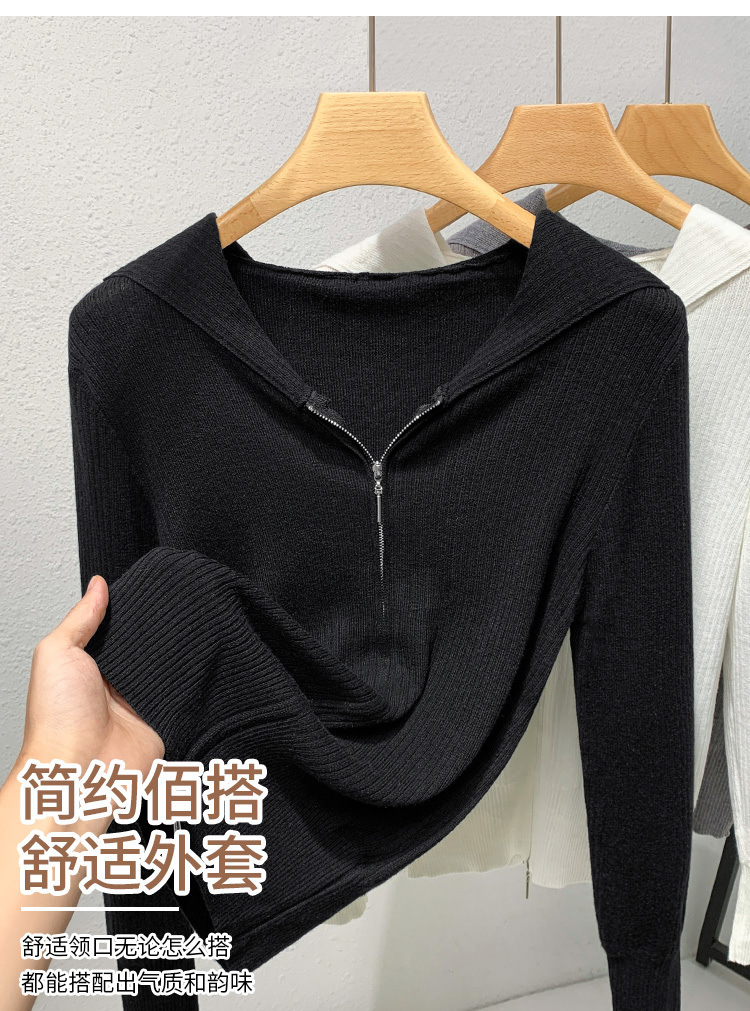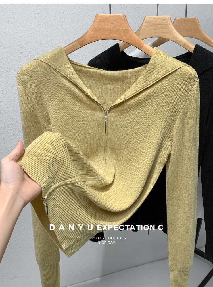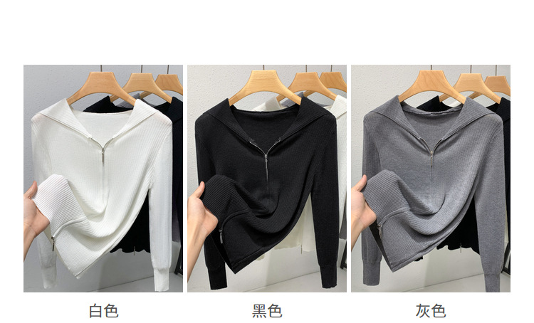 时尚百搭,连帽针织开衫女薄款长袖打底衫早秋新款带帽拉链上衣SG-6395ADYJ