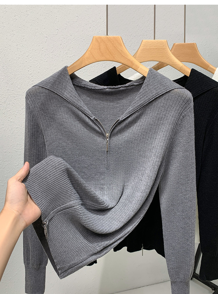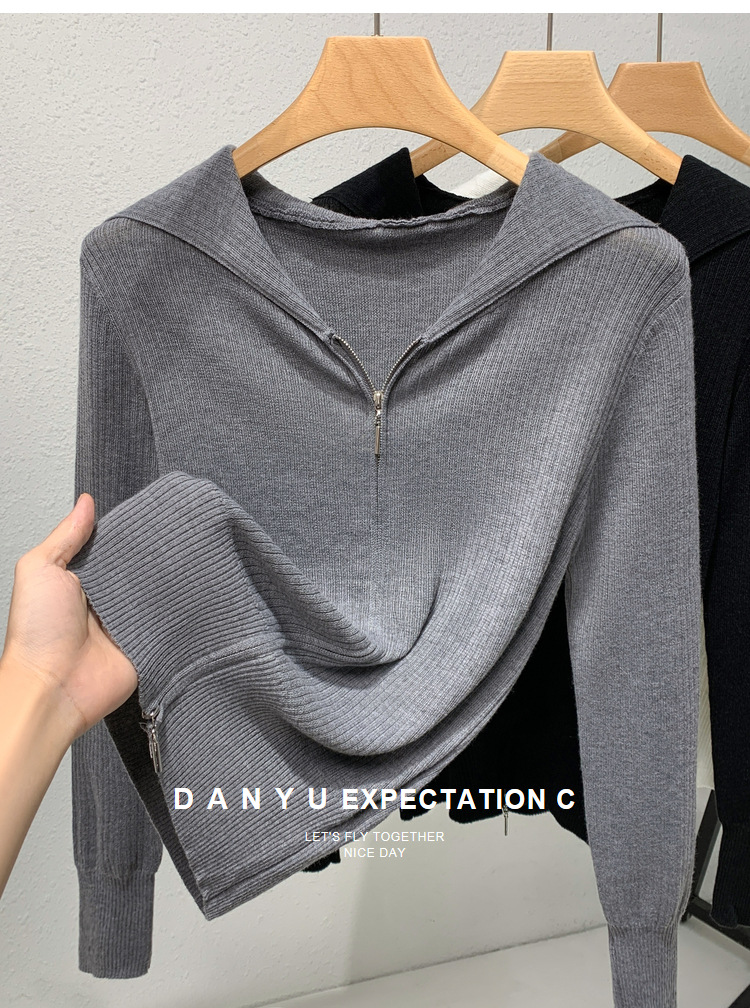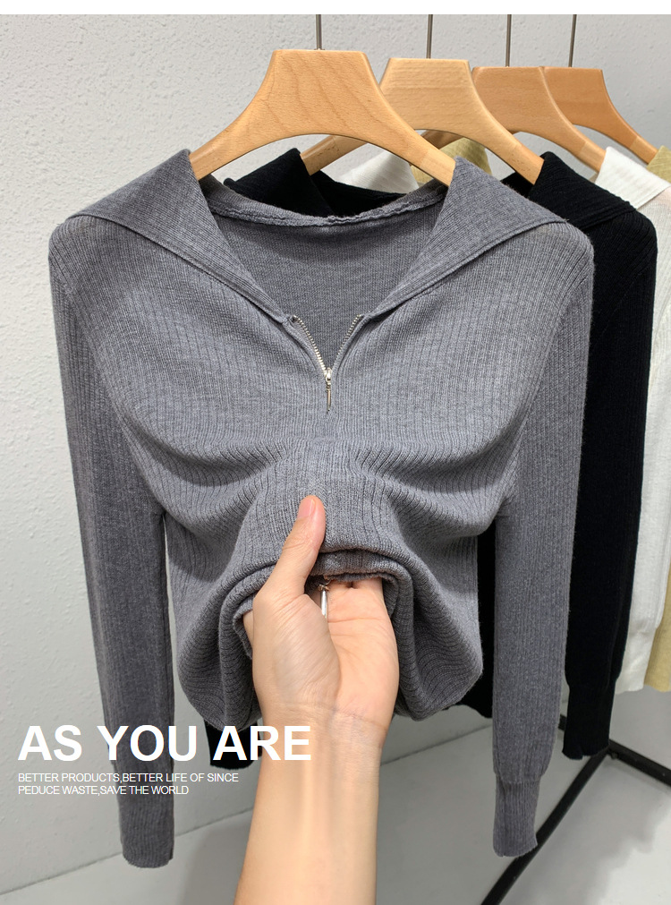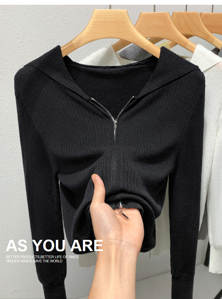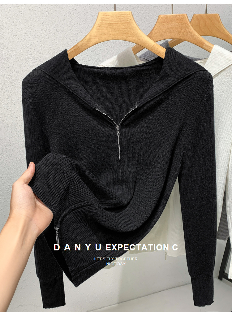 时尚百搭,连帽针织开衫女薄款长袖打底衫早秋新款带帽拉链上衣SG-6395ADYJ