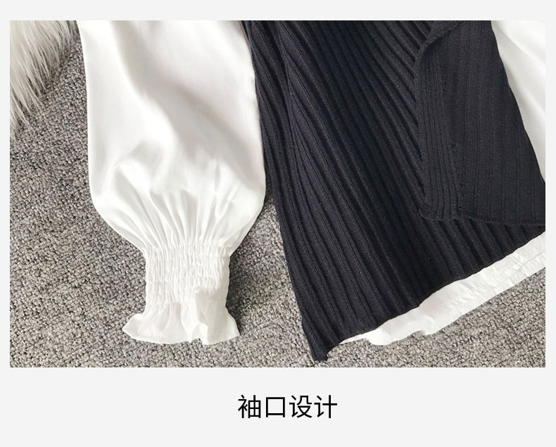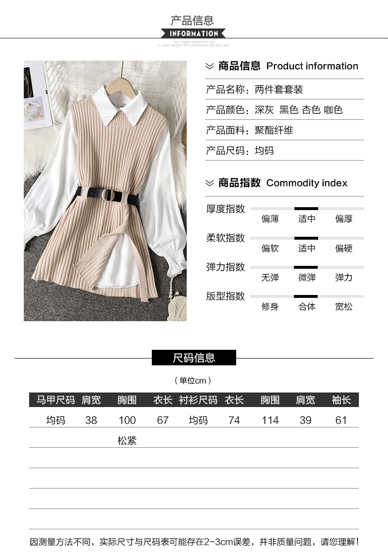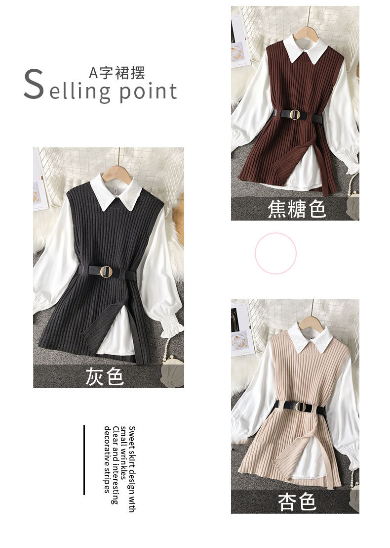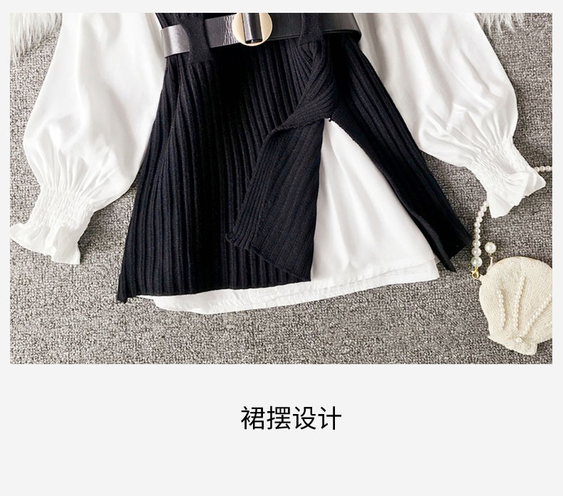 洋气减龄,白衬衫上衣设计感开衩针织背心衬衣两件套XS98816