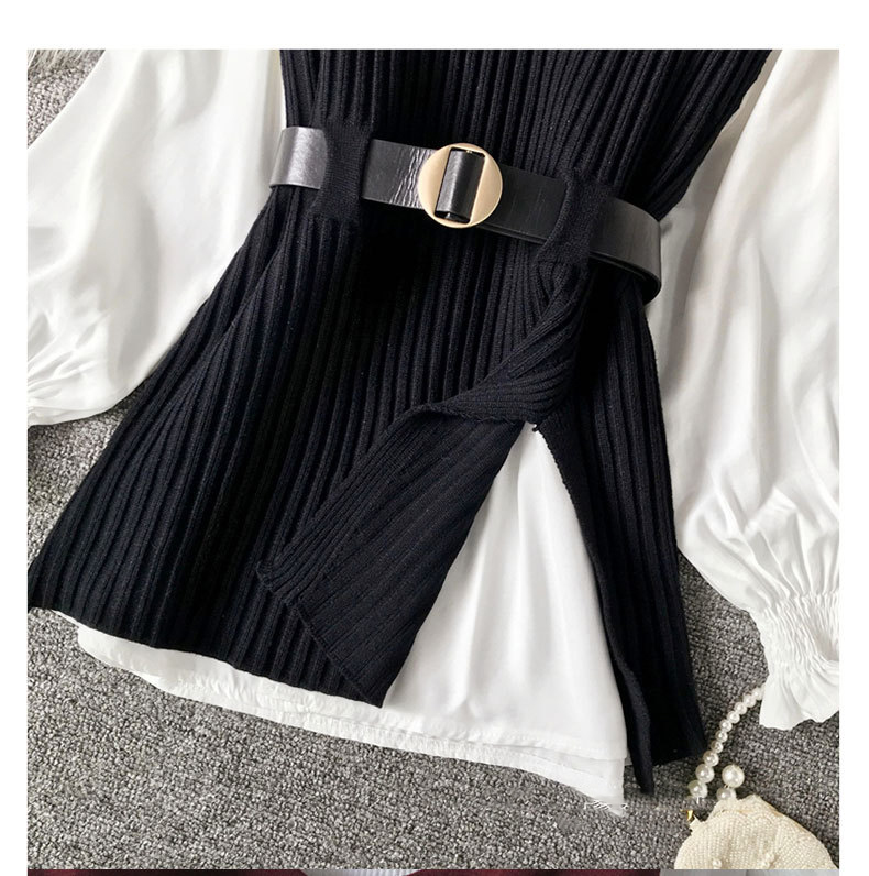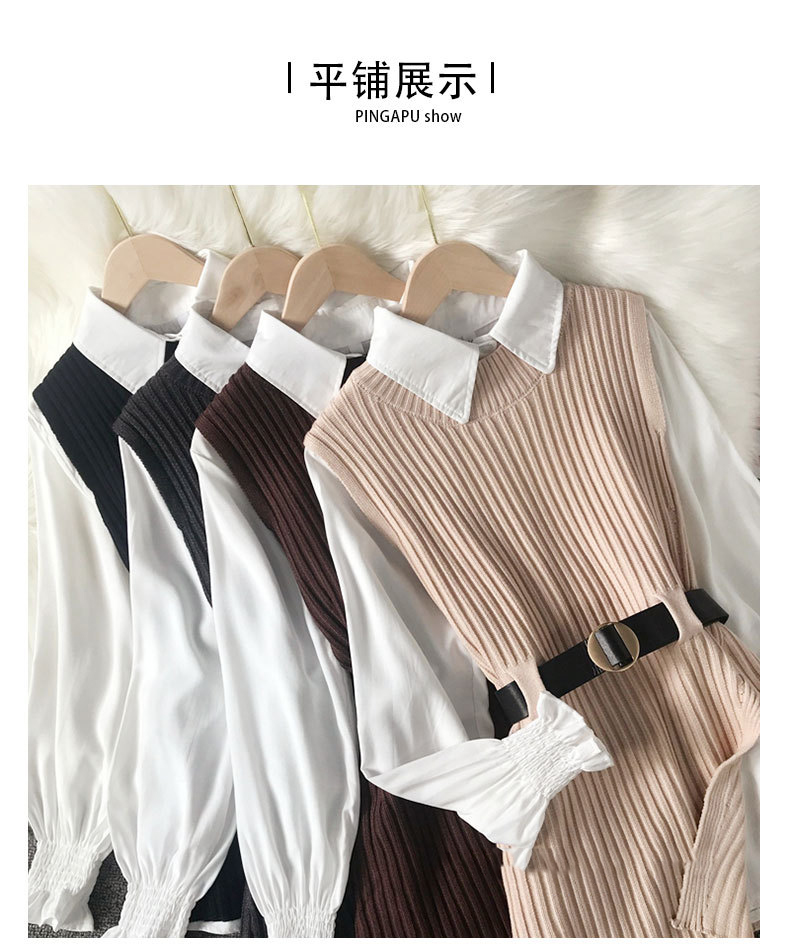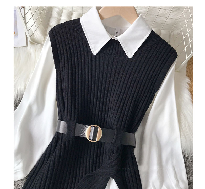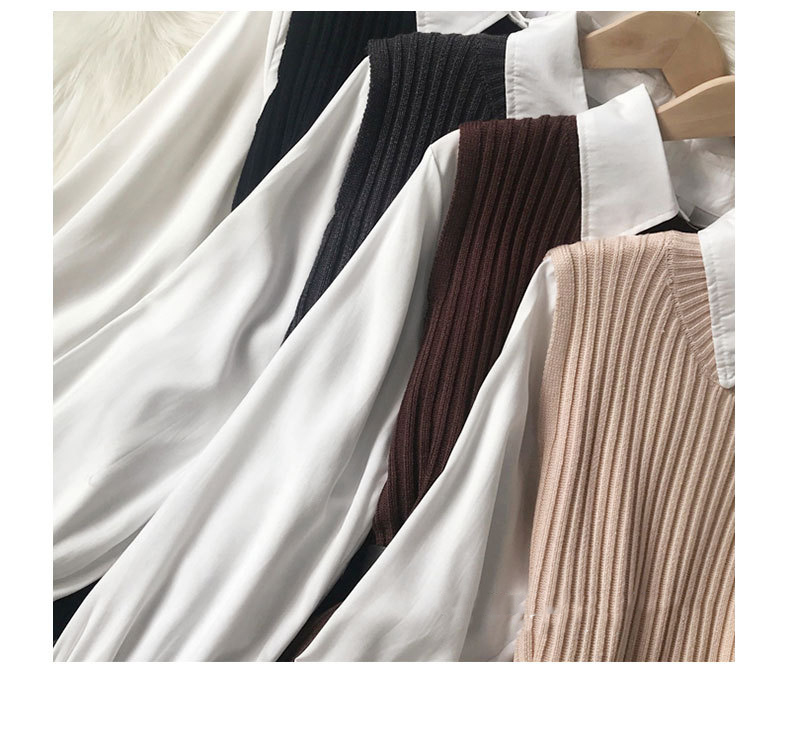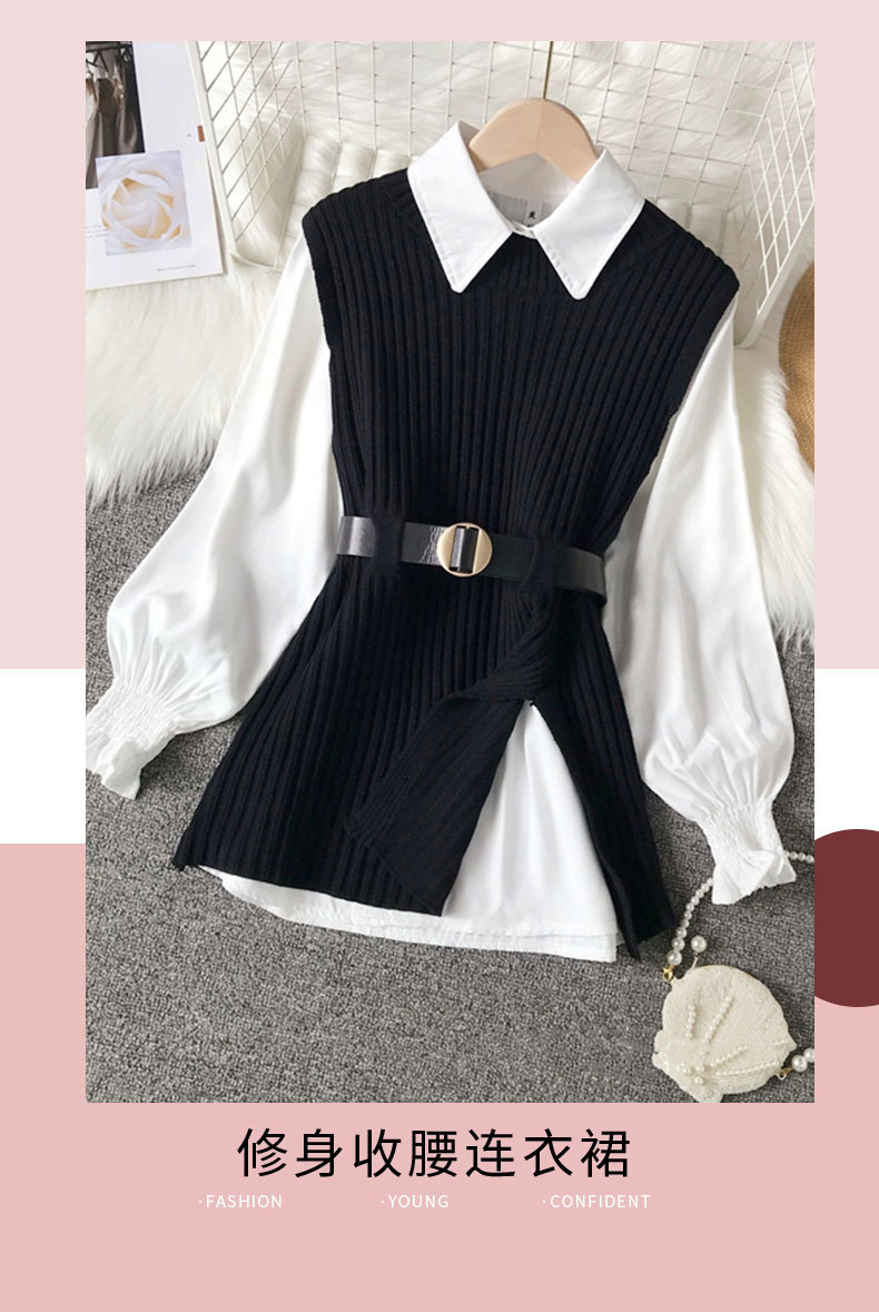 洋气减龄,白衬衫上衣设计感开衩针织背心衬衣两件套XS98816