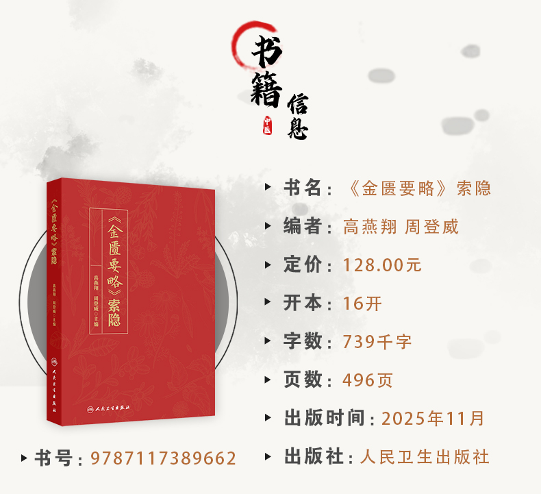 《金匮要略》索隐 高燕翔 周登威 主编 一书共分为文献导读 原文 校勘 释难 名家评注 类方参要 按语等七个模块 人民卫生出版社