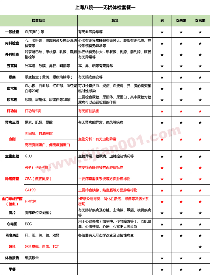 八院体检套餐:无忧套餐一