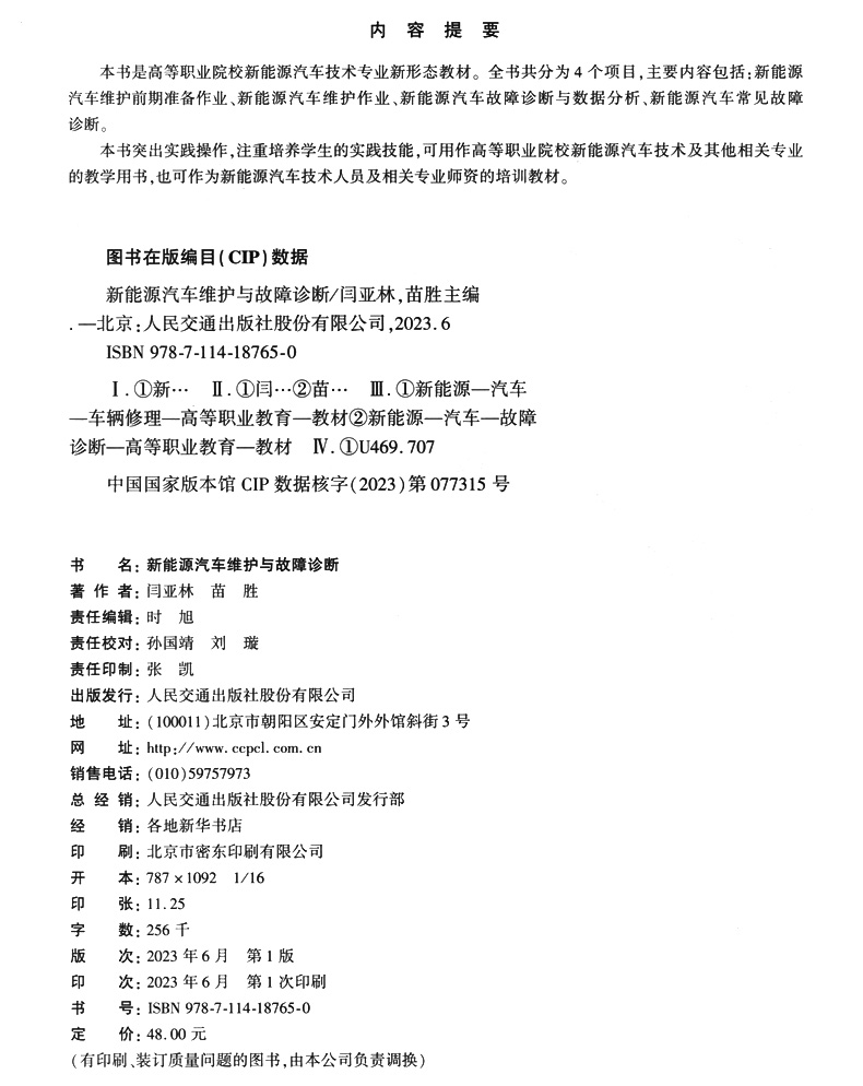 书名:新能源汽车维护与故障诊断