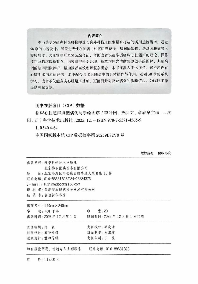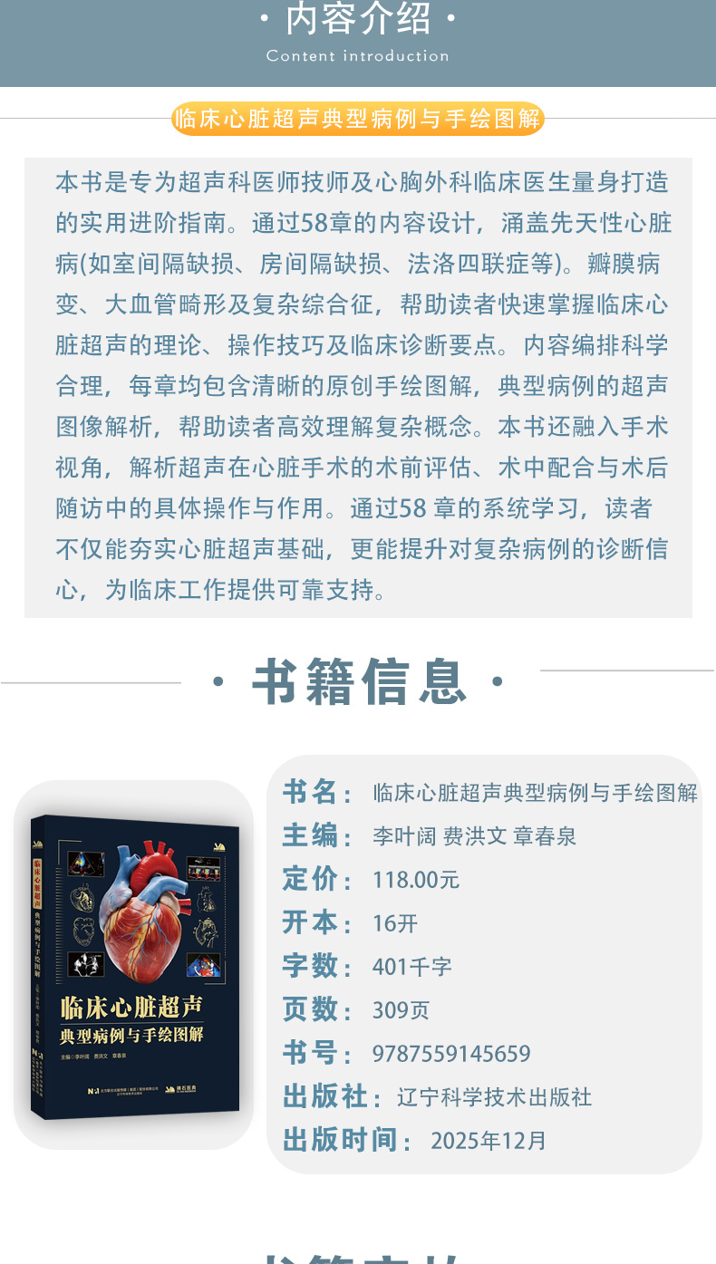 临床心脏超声典型病例与手绘图解 李叶阔 费洪文 章春泉 主编 超声科医师技师心胸外科临床医生9787559145659辽宁科学技术出版社