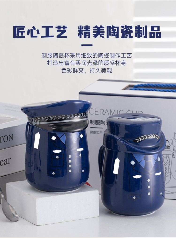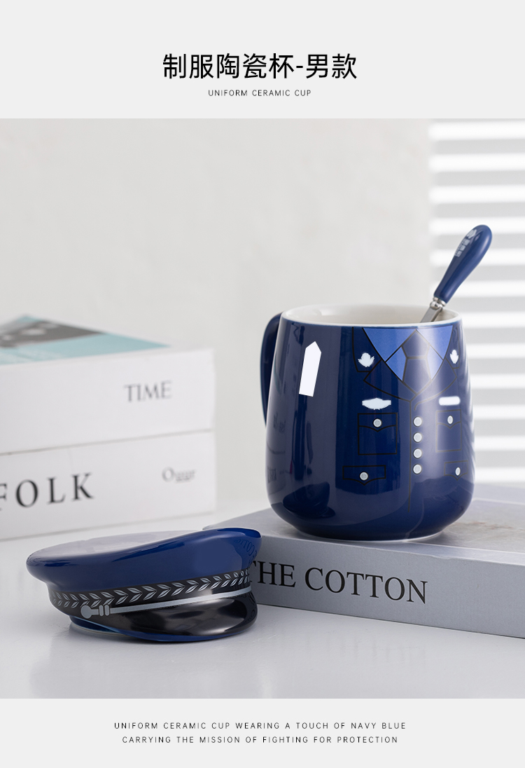 【实付满199送钥匙扣】【男/女款制服陶瓷杯】创意喝水杯家用带盖勺咖啡杯茶杯套装马克杯子