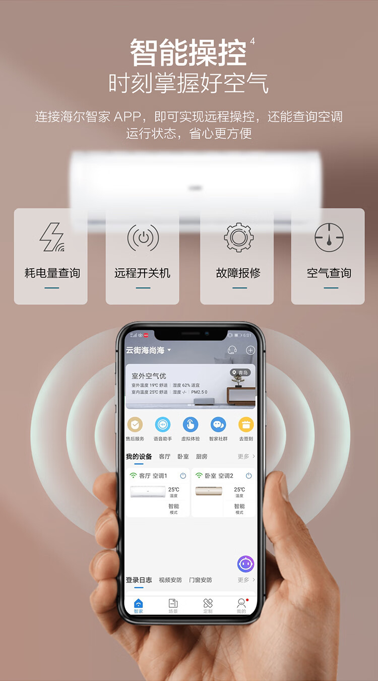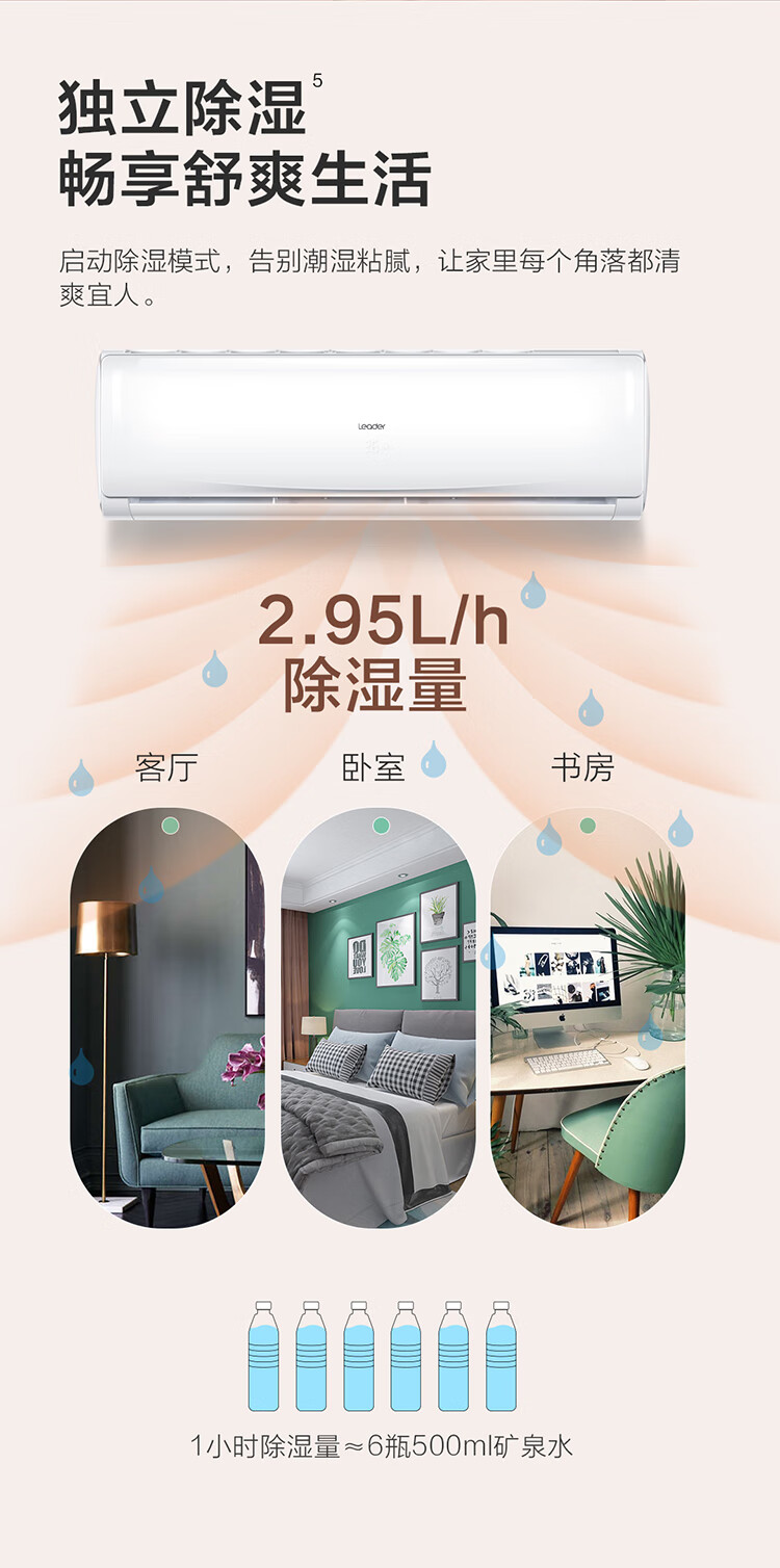 统帅(Leader)海尔出品空调挂机大2匹客厅空调挂机挂式 新二级能效变频冷暖 智控 自清洁 2匹三级KFR-50GW 19HTA