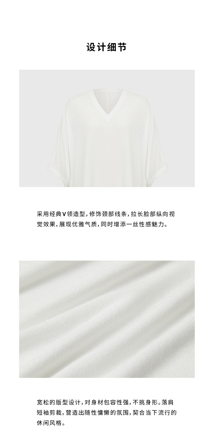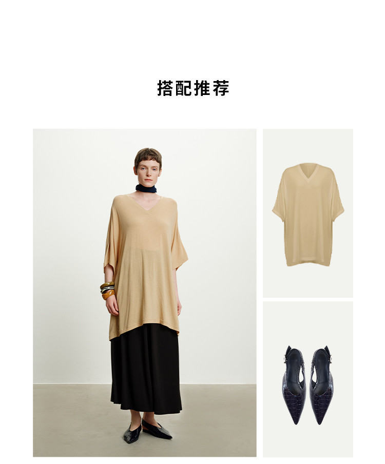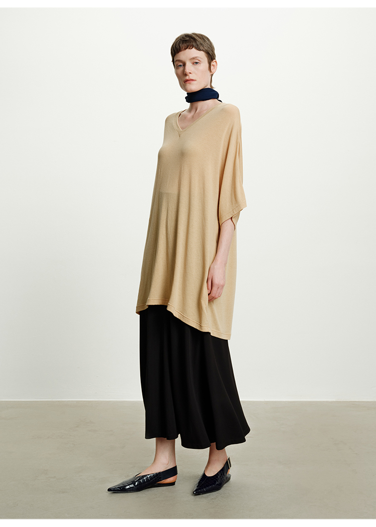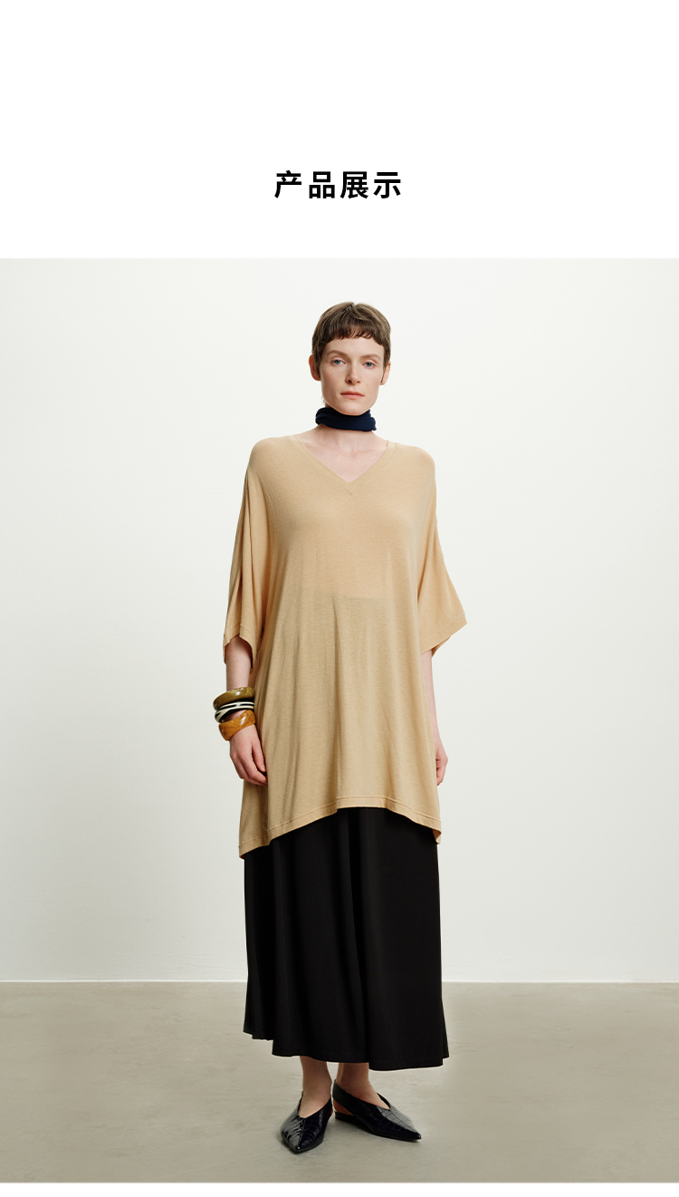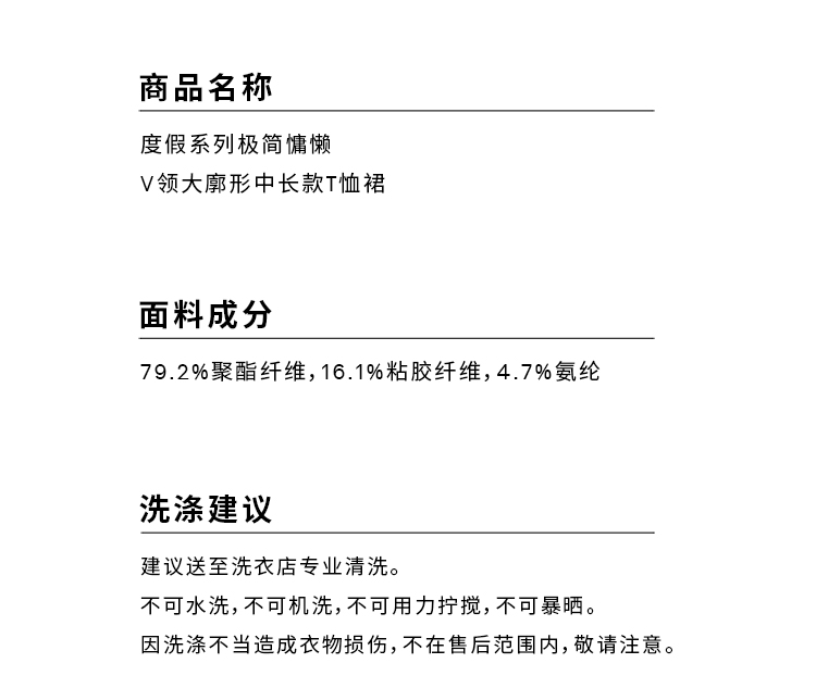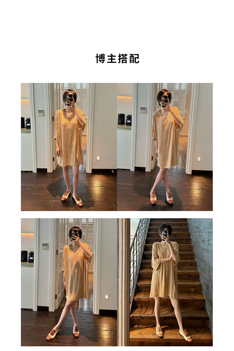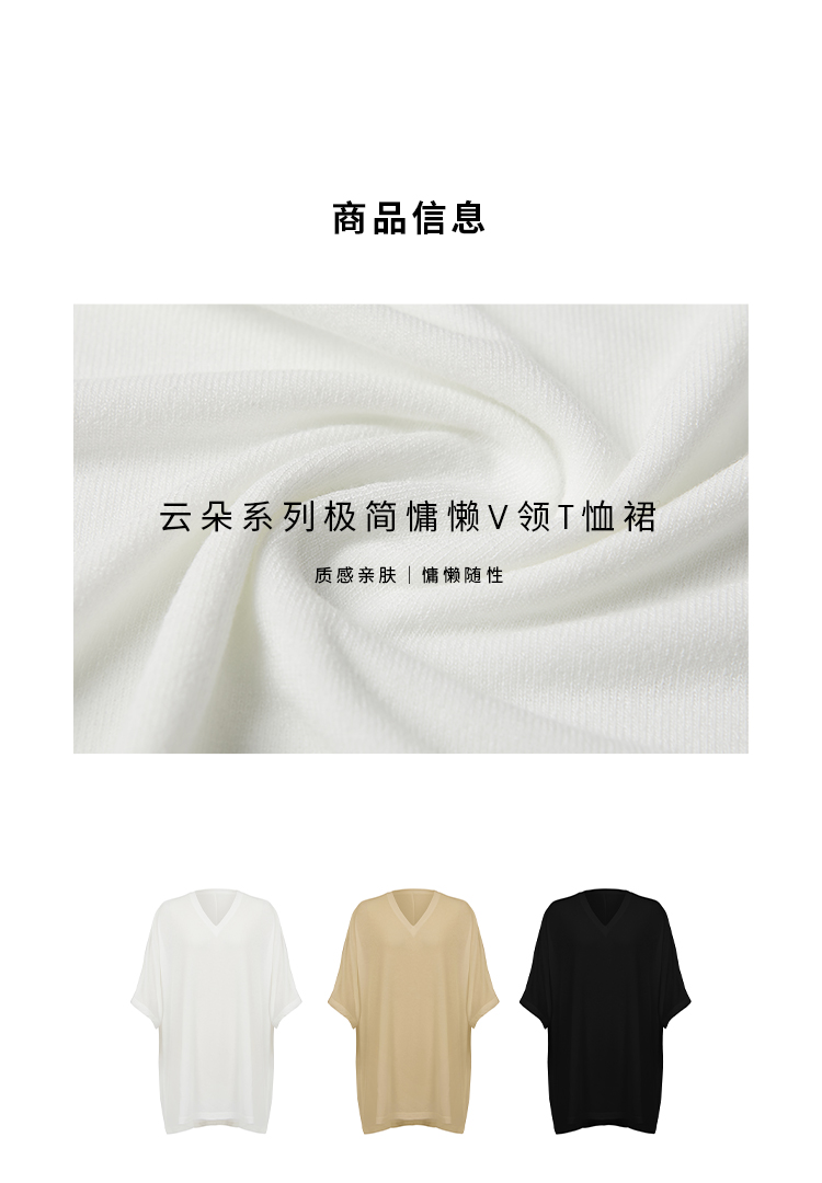 HIDEMI度假系列极简慵懒v领大廓形中长款T恤裙