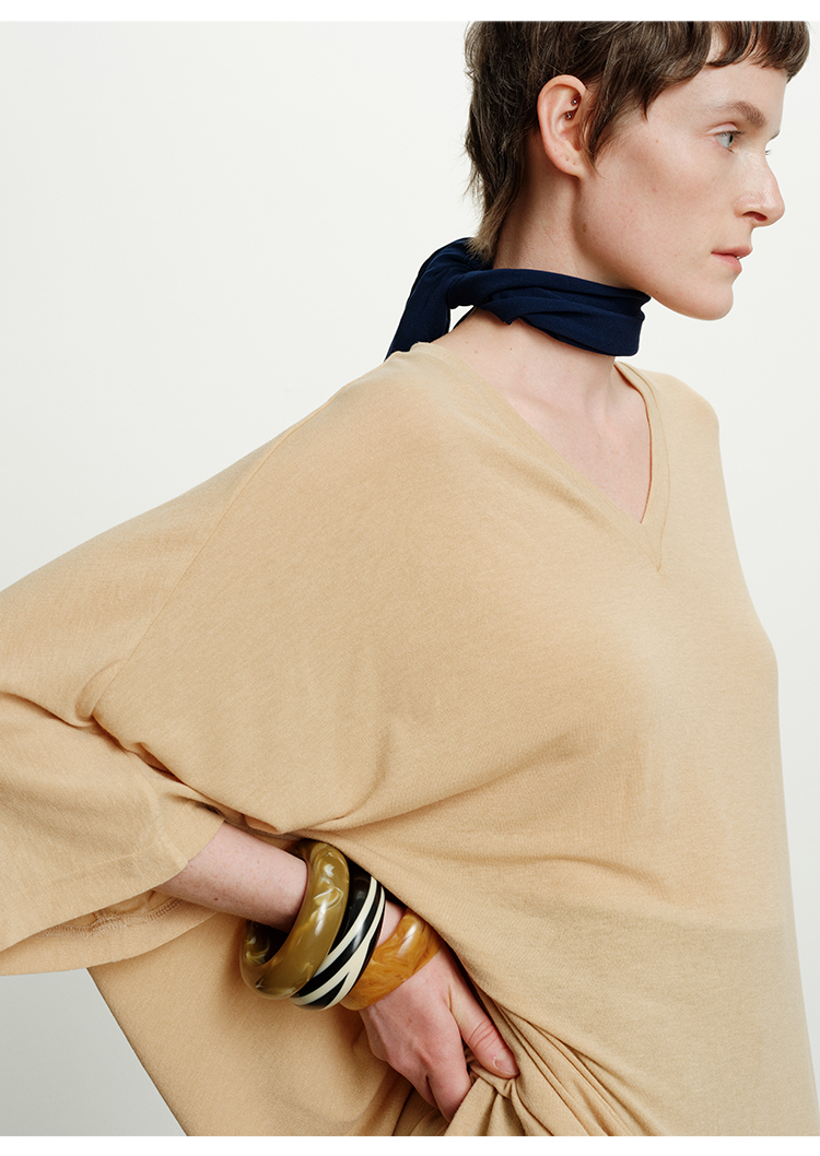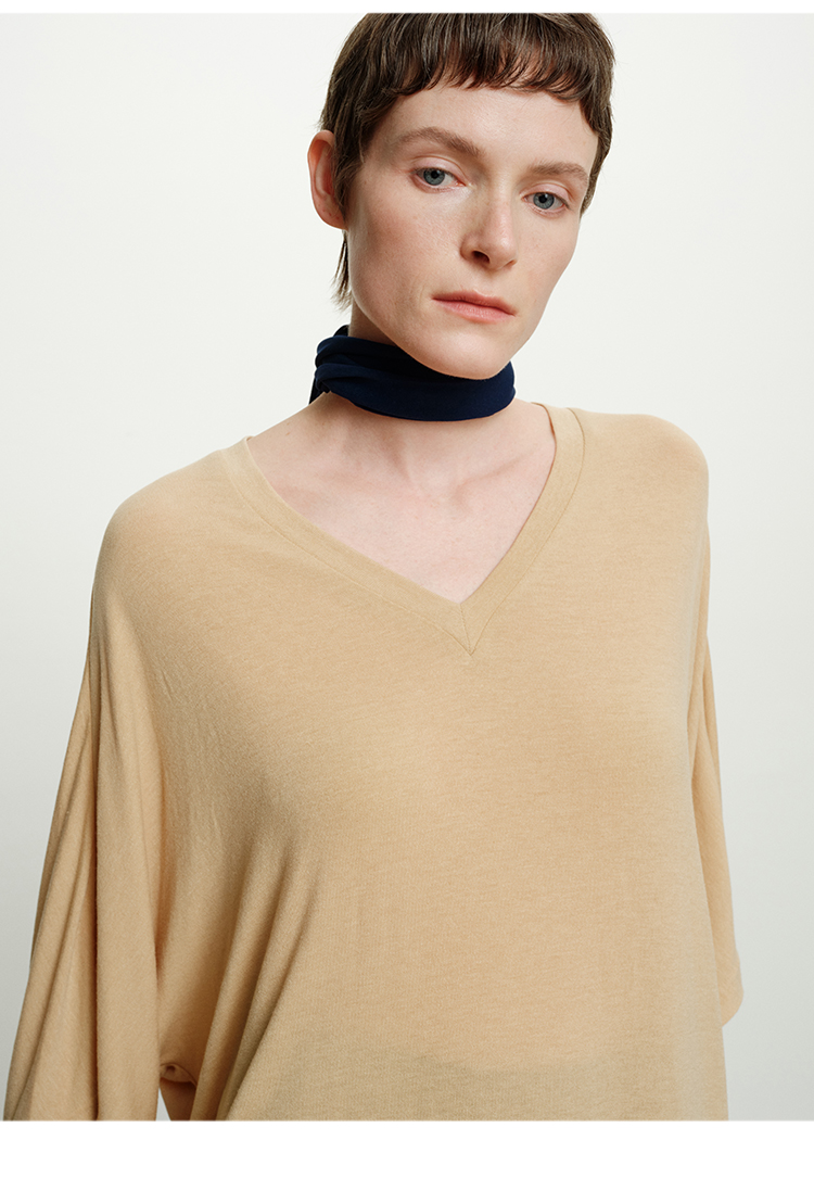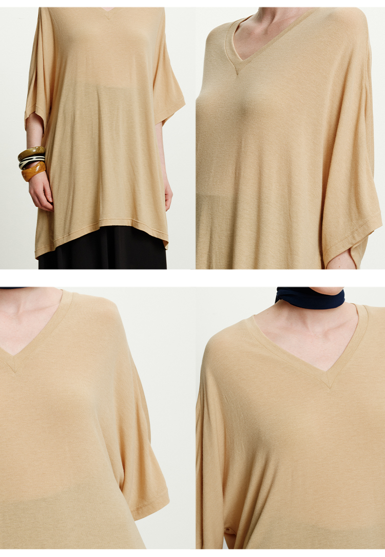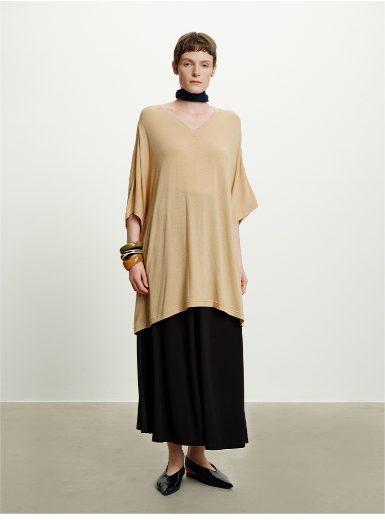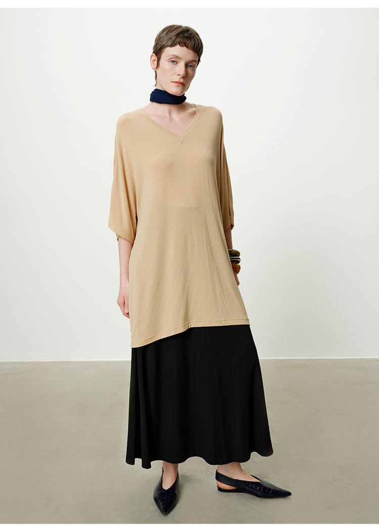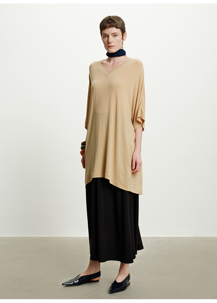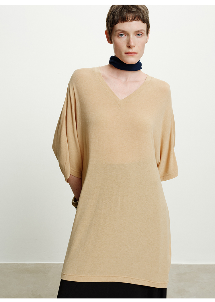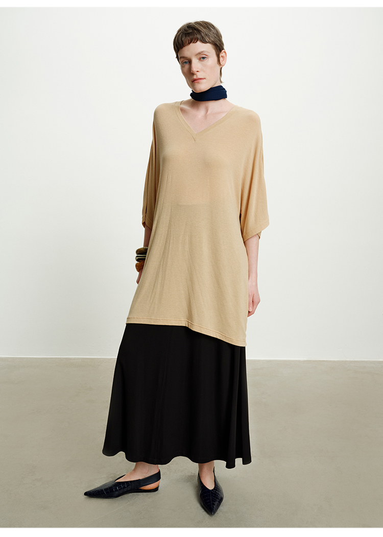 HIDEMI度假系列极简慵懒v领大廓形中长款T恤裙