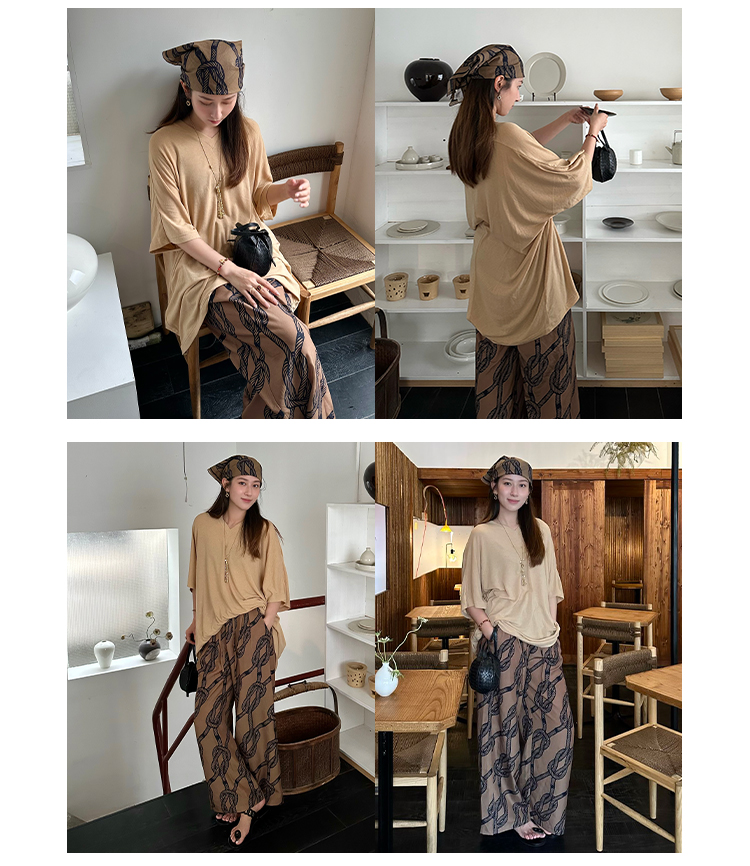 HIDEMI简约设计感v领系带套装 上衣/长裤