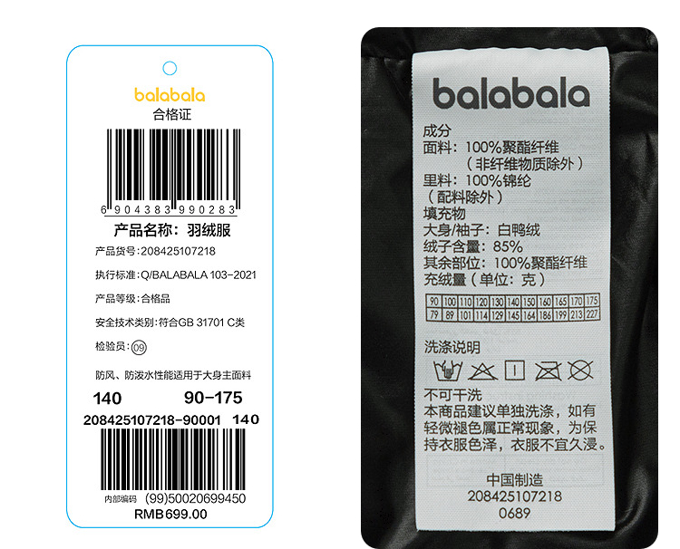 巴拉巴拉balaOne童装儿童羽绒服男女童秋冬装中长款保暖2025时尚