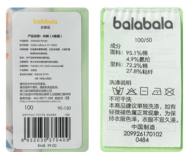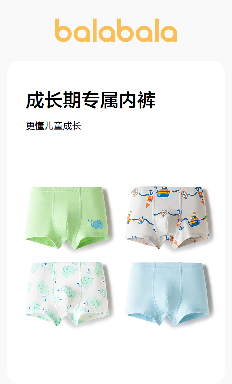 【balaOne】巴拉巴拉男童内裤平角儿童四角短裤不夹PP抗菌四条装