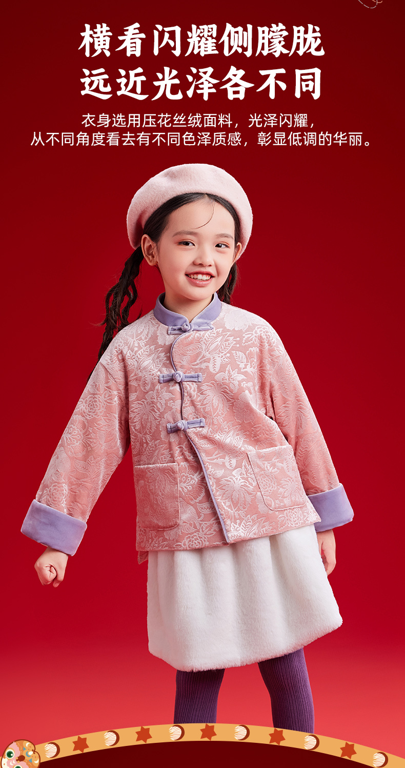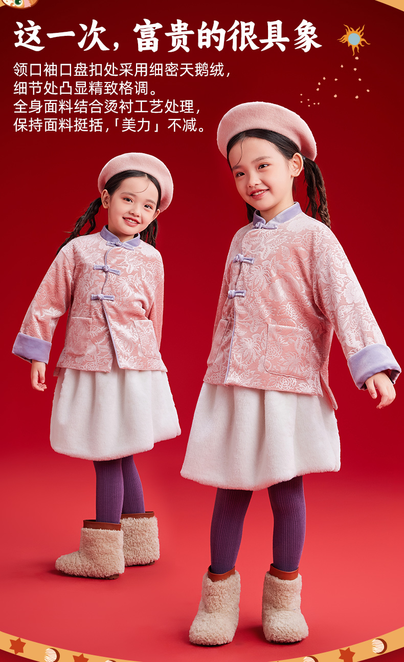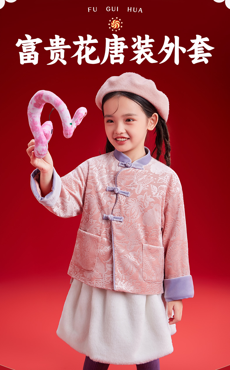 年衣童装女童外套冬新款儿童新中式国风唐装汉服女孩过年衣服富贵花唐装外套