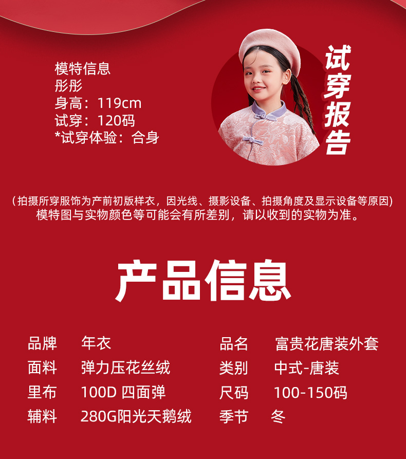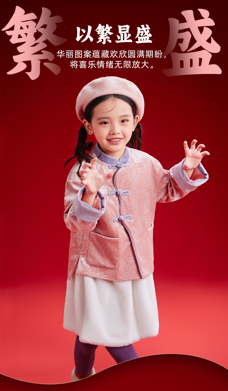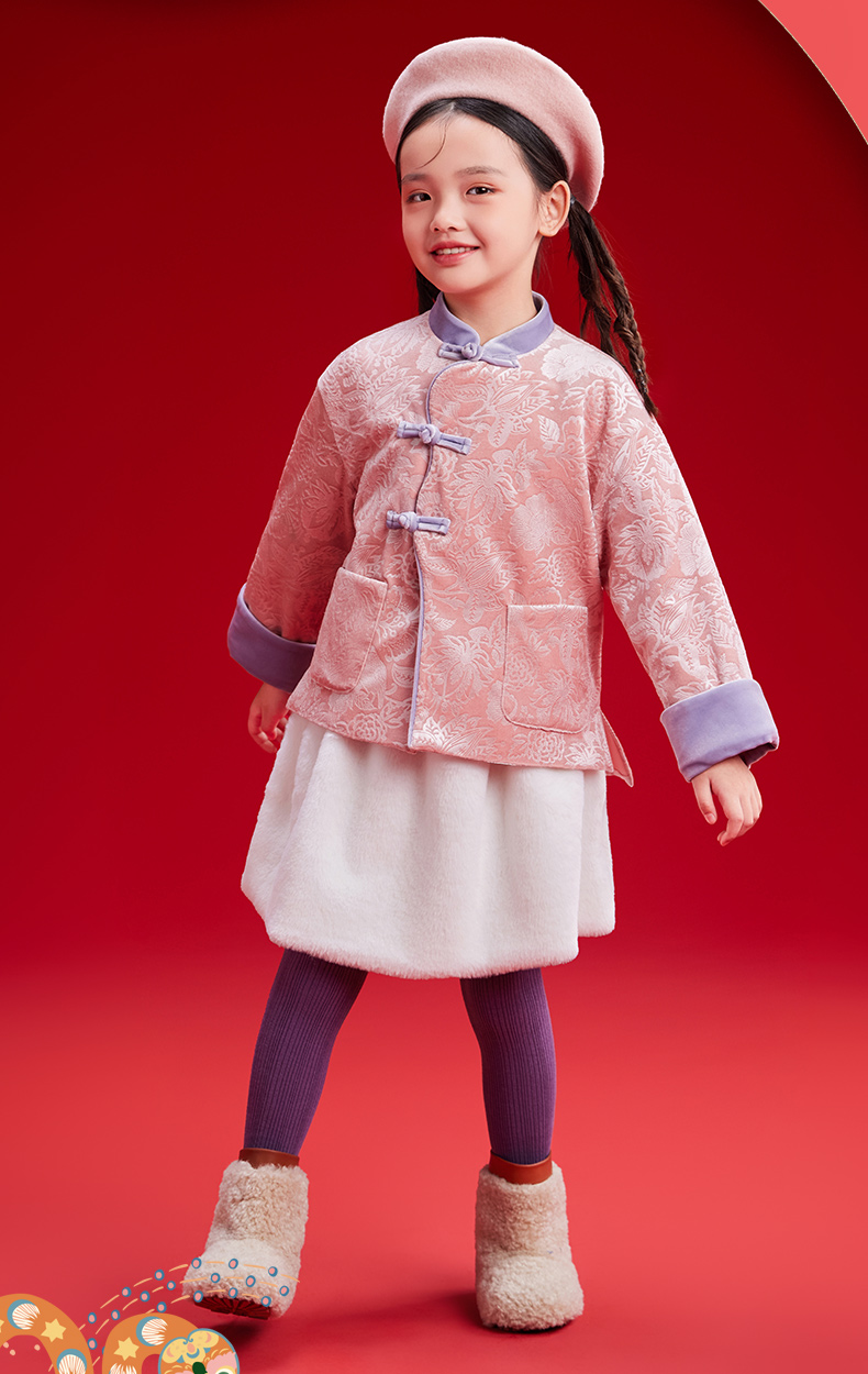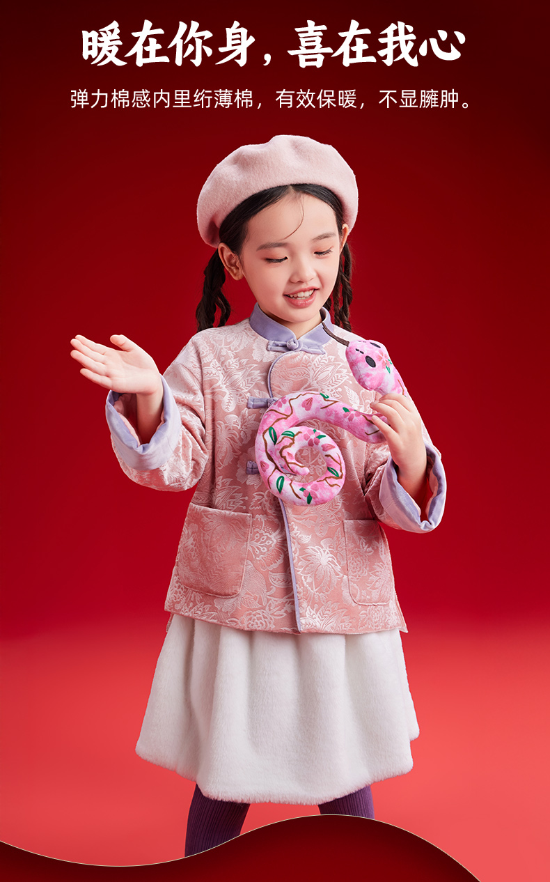 年衣童装女童外套冬新款儿童新中式国风唐装汉服女孩过年衣服富贵花唐装外套