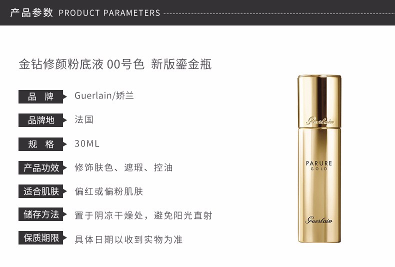 GUERLAIN/娇兰 金钻修颜粉底液 00号色 30ML 新版鎏金瓶