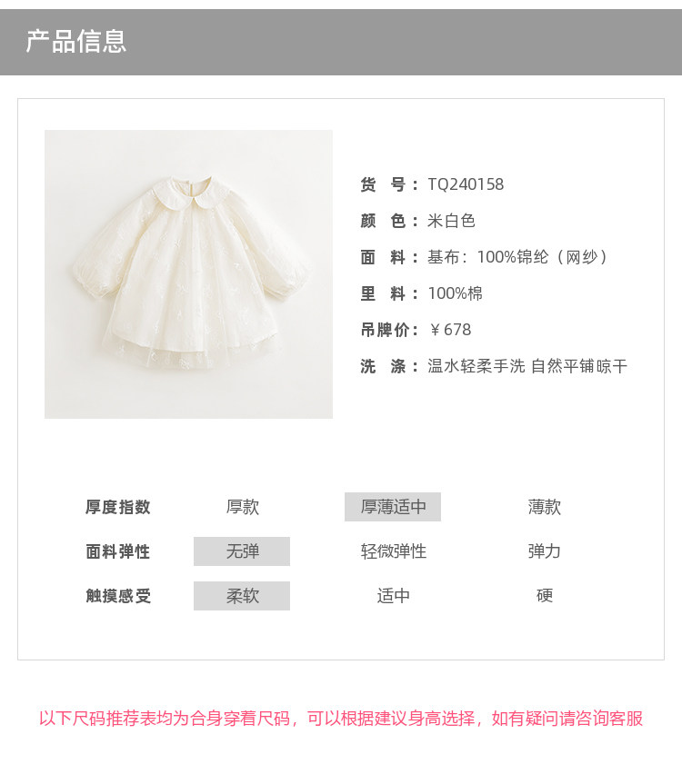 【马克珍妮 芦芙】女童刺绣小花娃娃领网纱连衣裙春装新款240158