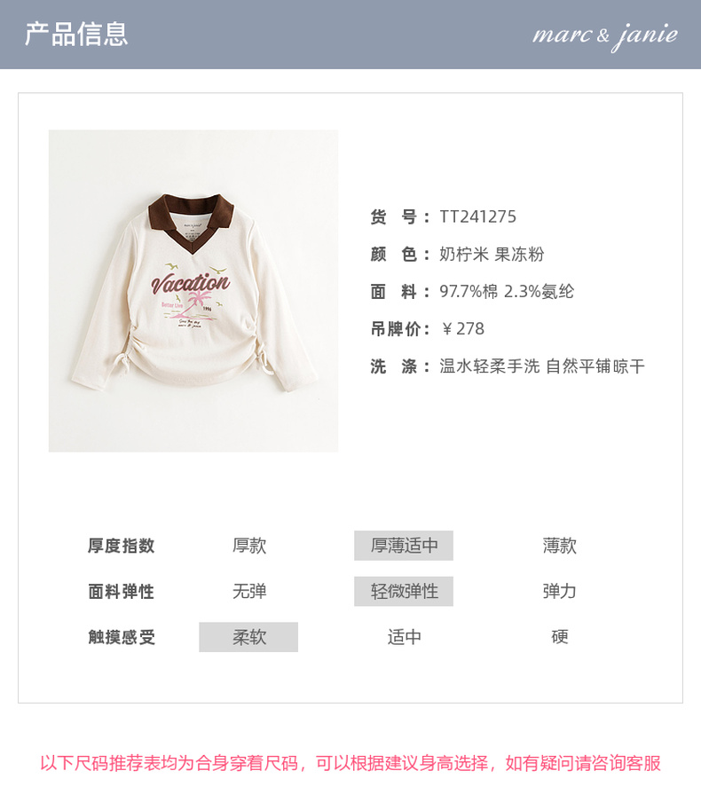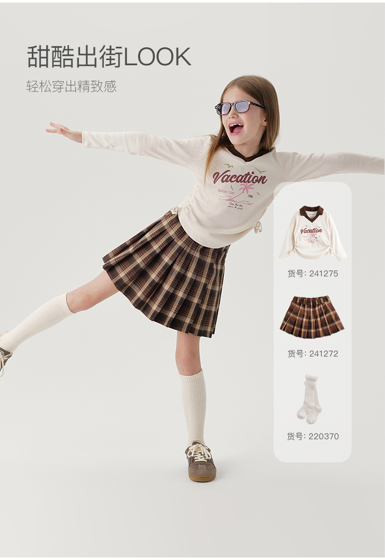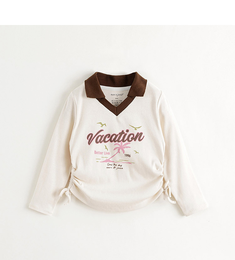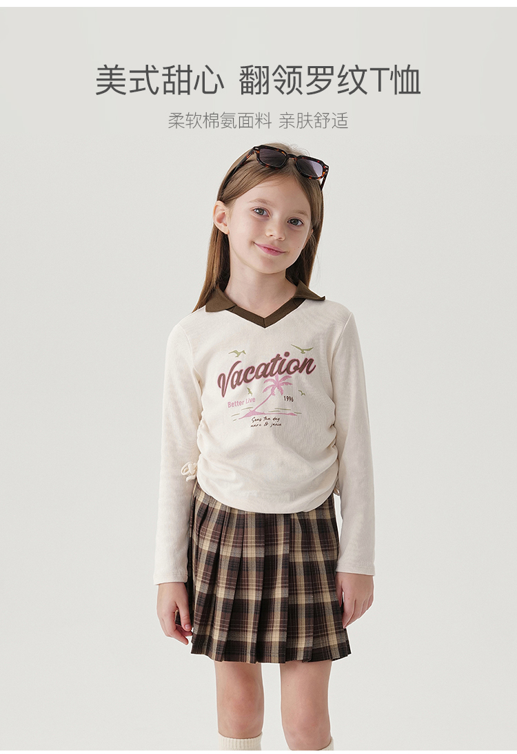 马克珍妮女童复古字母印花弹力长袖T恤儿童上衣秋装新款241275