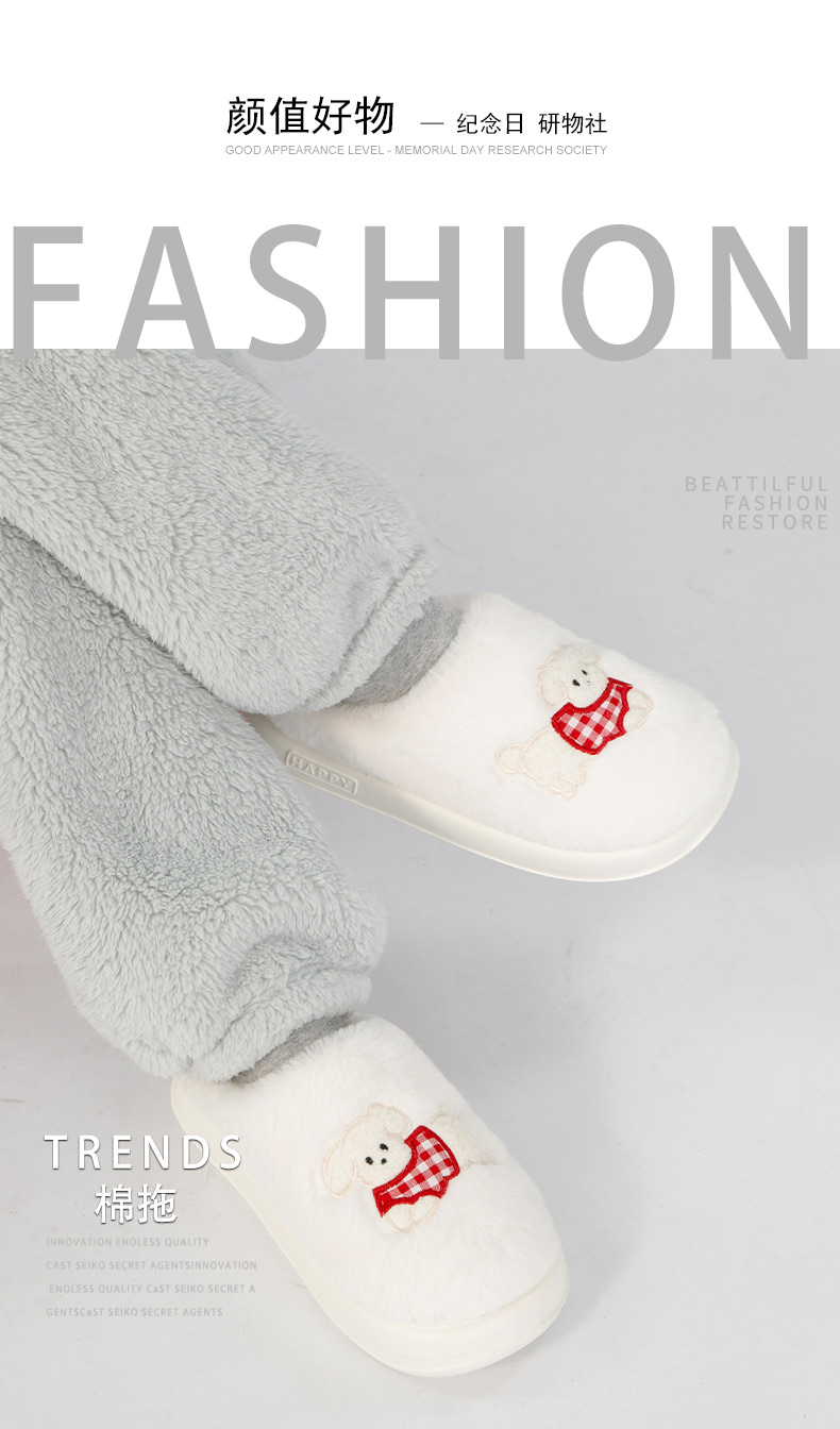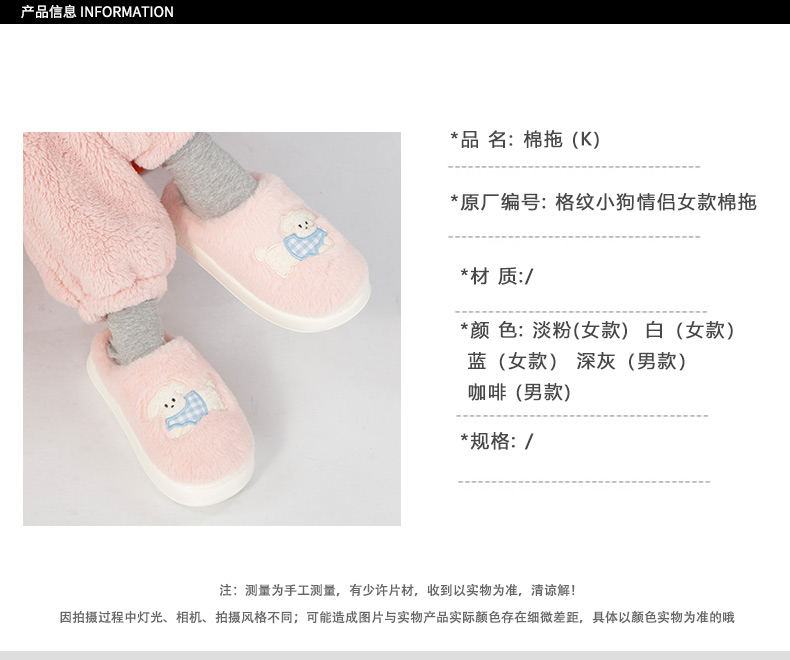 【39.9元2双】格纹小狗情侣男女款棉拖门店同款165794398(鞋子偏小,往大一码拍)