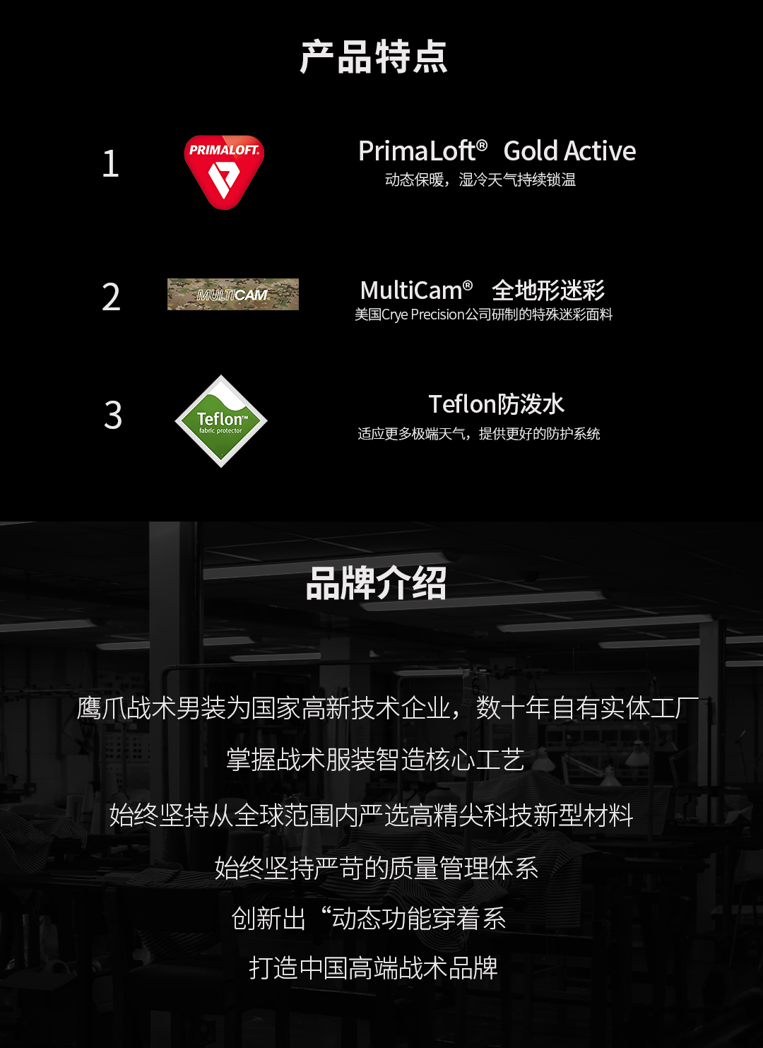 鹰爪,中国功能男装创领品牌,致力于服务中国3亿新中产阶级,着力打造全场景穿着体验创新平台,三十年产业深耕的积淀,以用户的痛点为己任,开创兼具军品与户外装备的功能动态穿着系统。