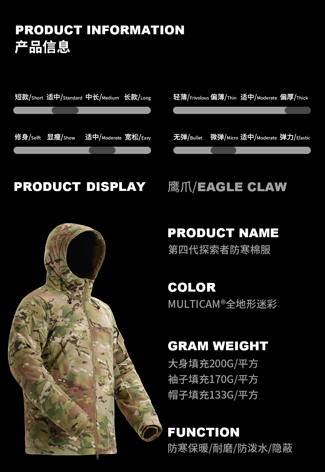 鹰爪第四代探索者防寒棉服-全地形迷彩版