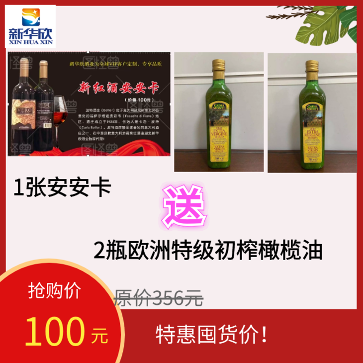 1张安安卡送2瓶欧洲特级初榨橄榄油