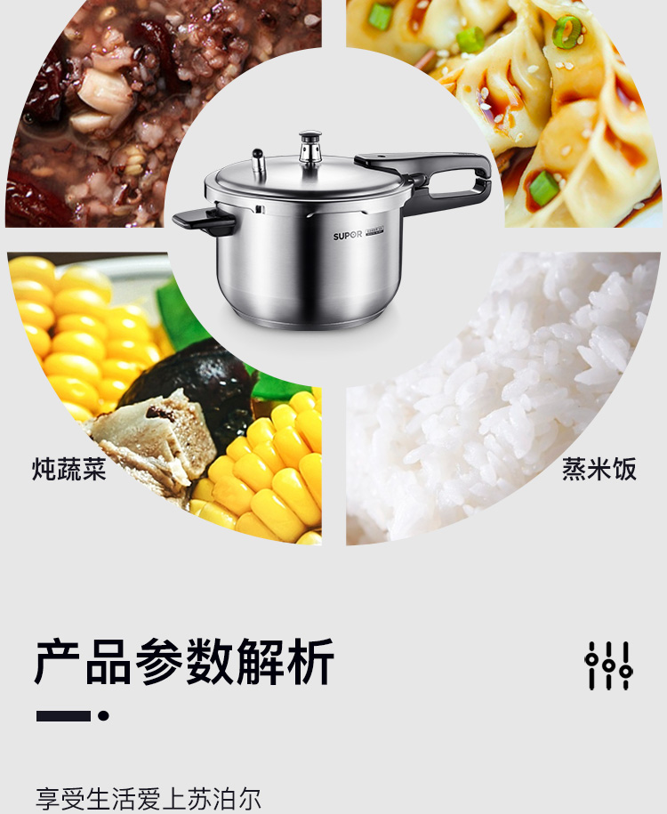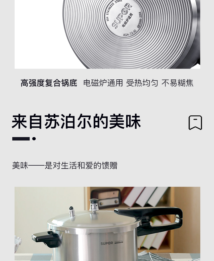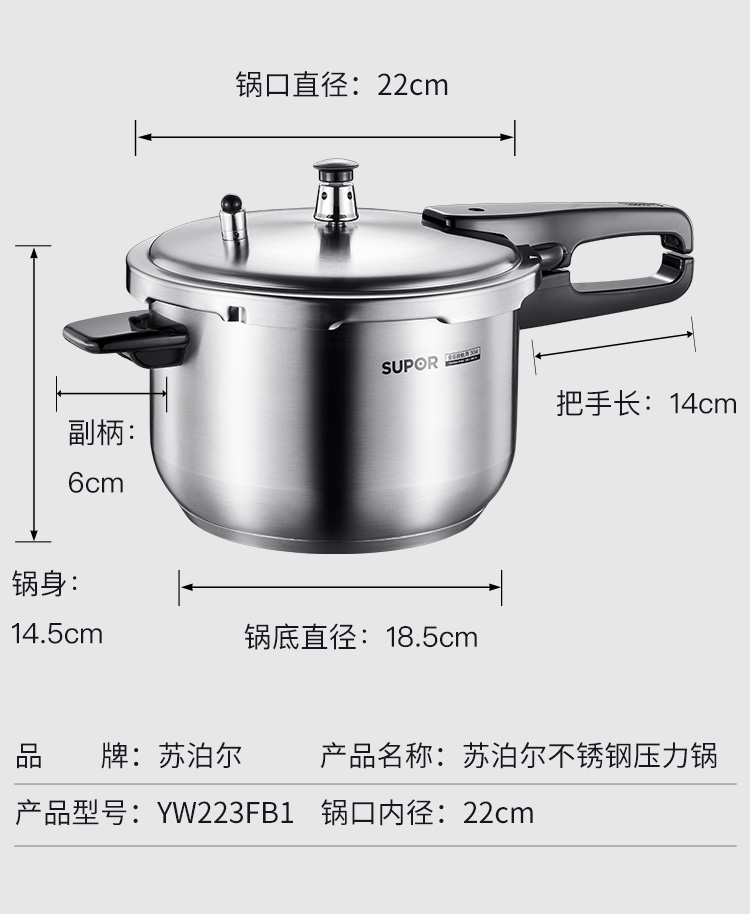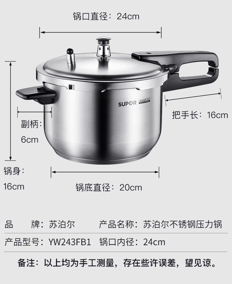 苏泊尔(510295 )(SUPOR) 压力锅 不锈钢压力锅高压锅家用 不锈钢 快速烹饪 燃气电磁炉适用 24cm YW243FB1