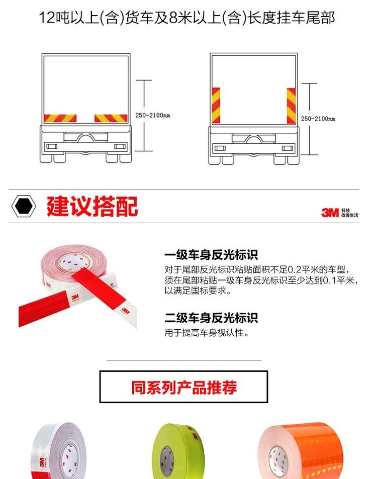 车辆尾部标志板长型尾板贴尾部反光标识 车身安全标识 反光贴3M