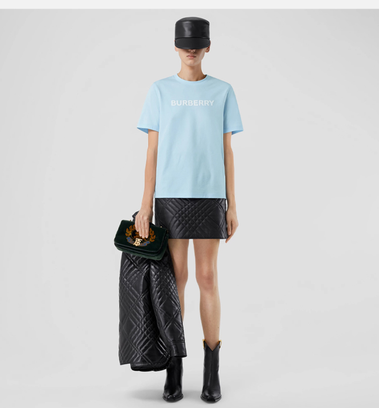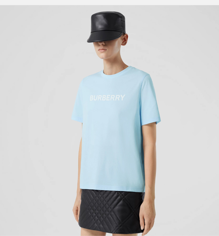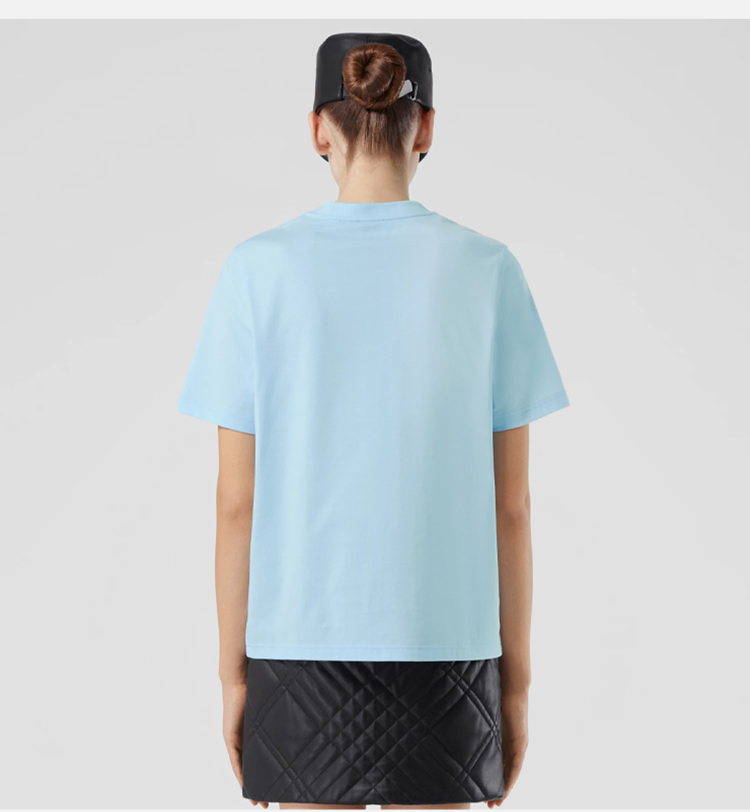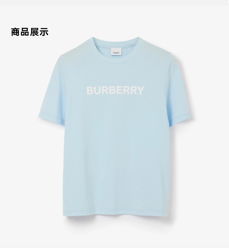 BURBERRY 巴宝莉 女士徽标印花棉质圆领短袖T恤 浅蓝色 8063581 A1397