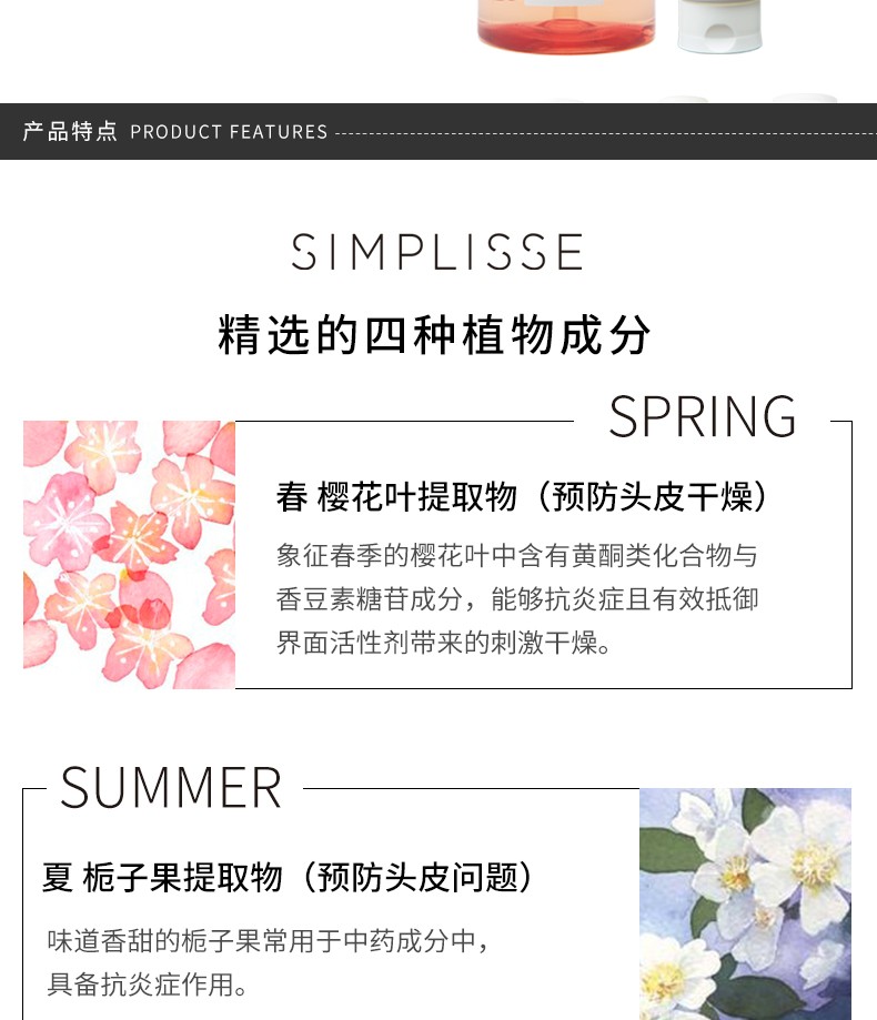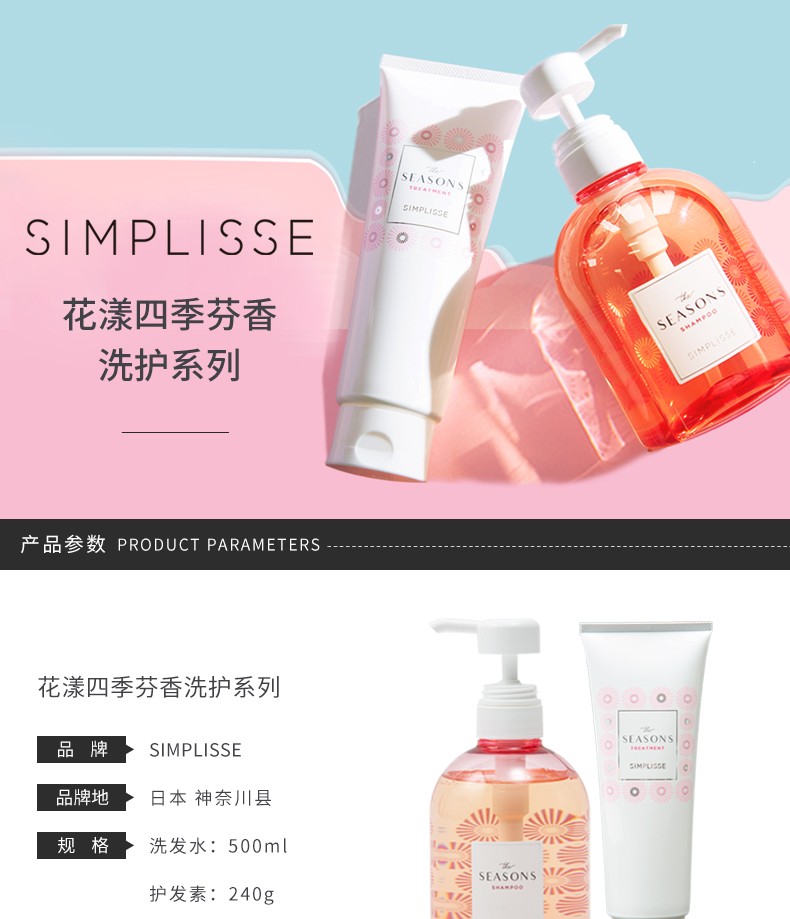SIMPLISSE 花漾四季无硅洗发水500ML+护发素240G 组合装JPY带授权招加盟代理