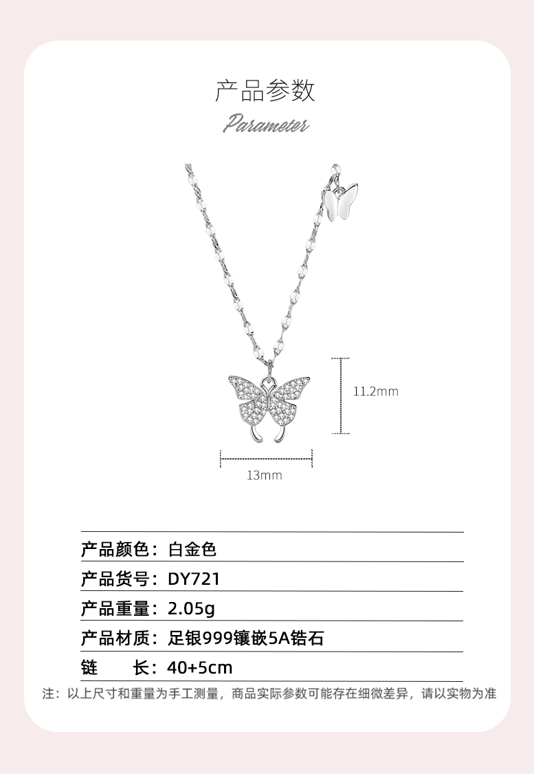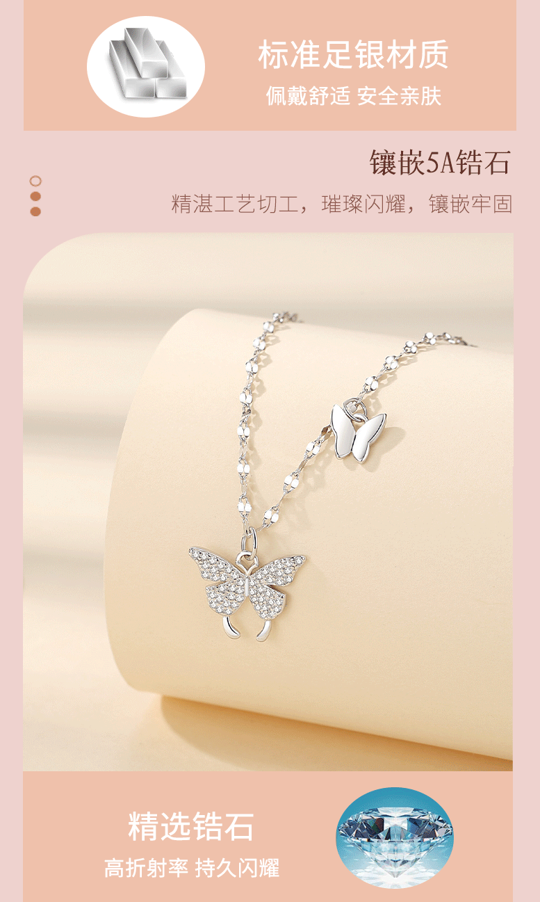 「精美礼盒装!蝴蝶足银项链」项链999纯银吊坠女时尚轻奢风银项链女饰品女高级感韩版时尚饰品