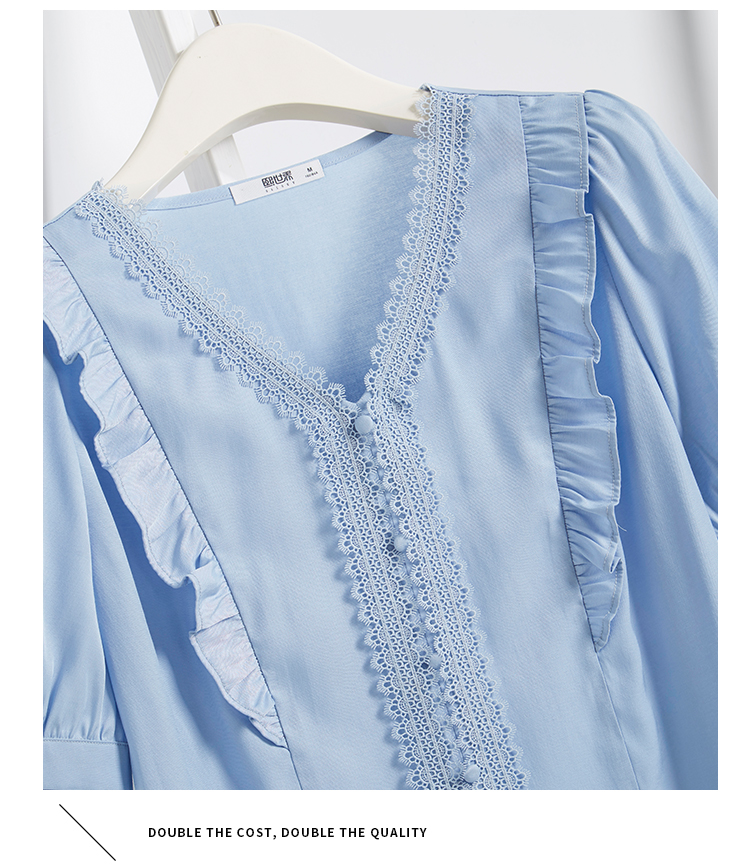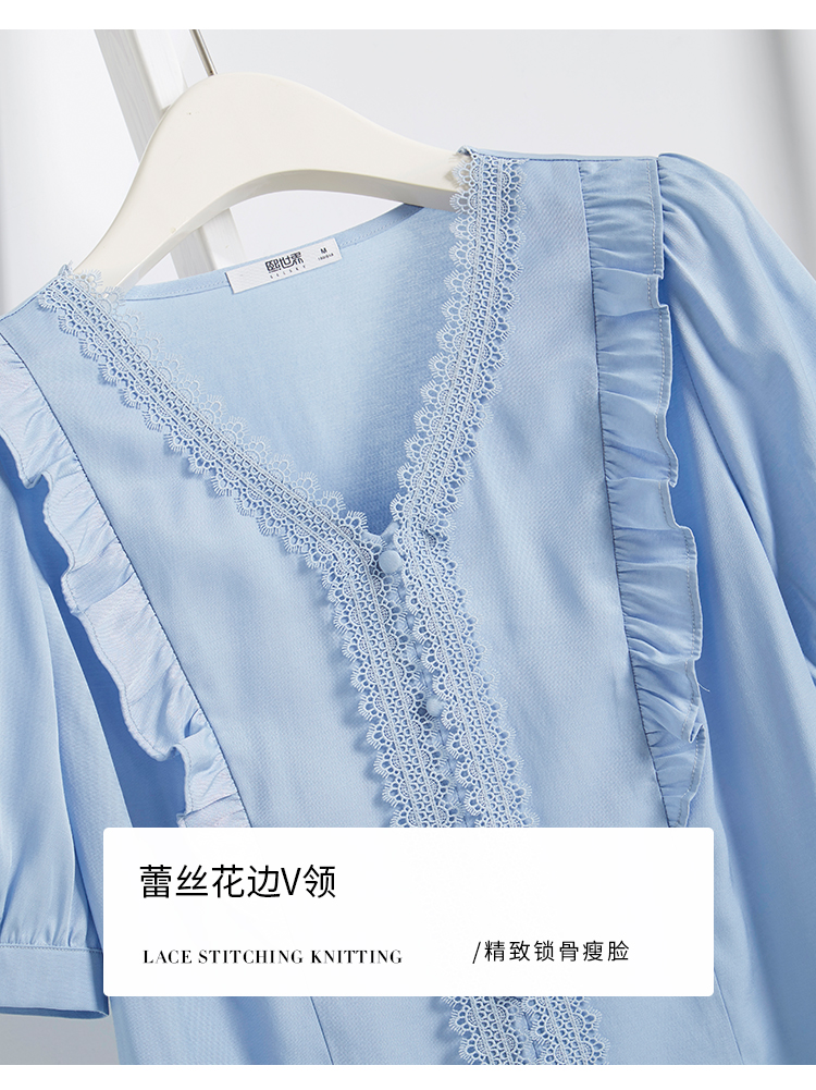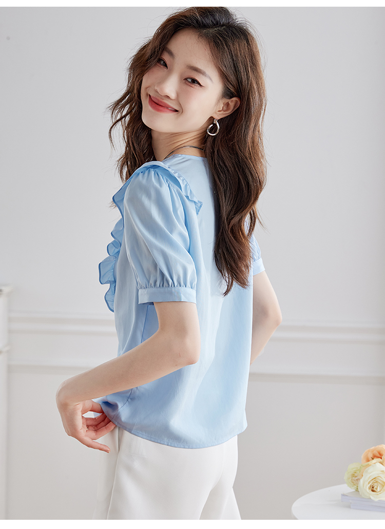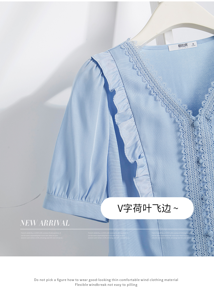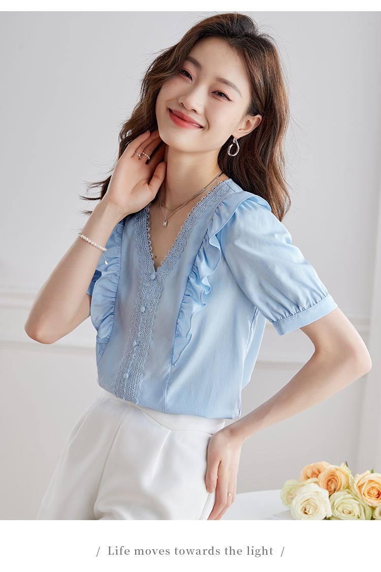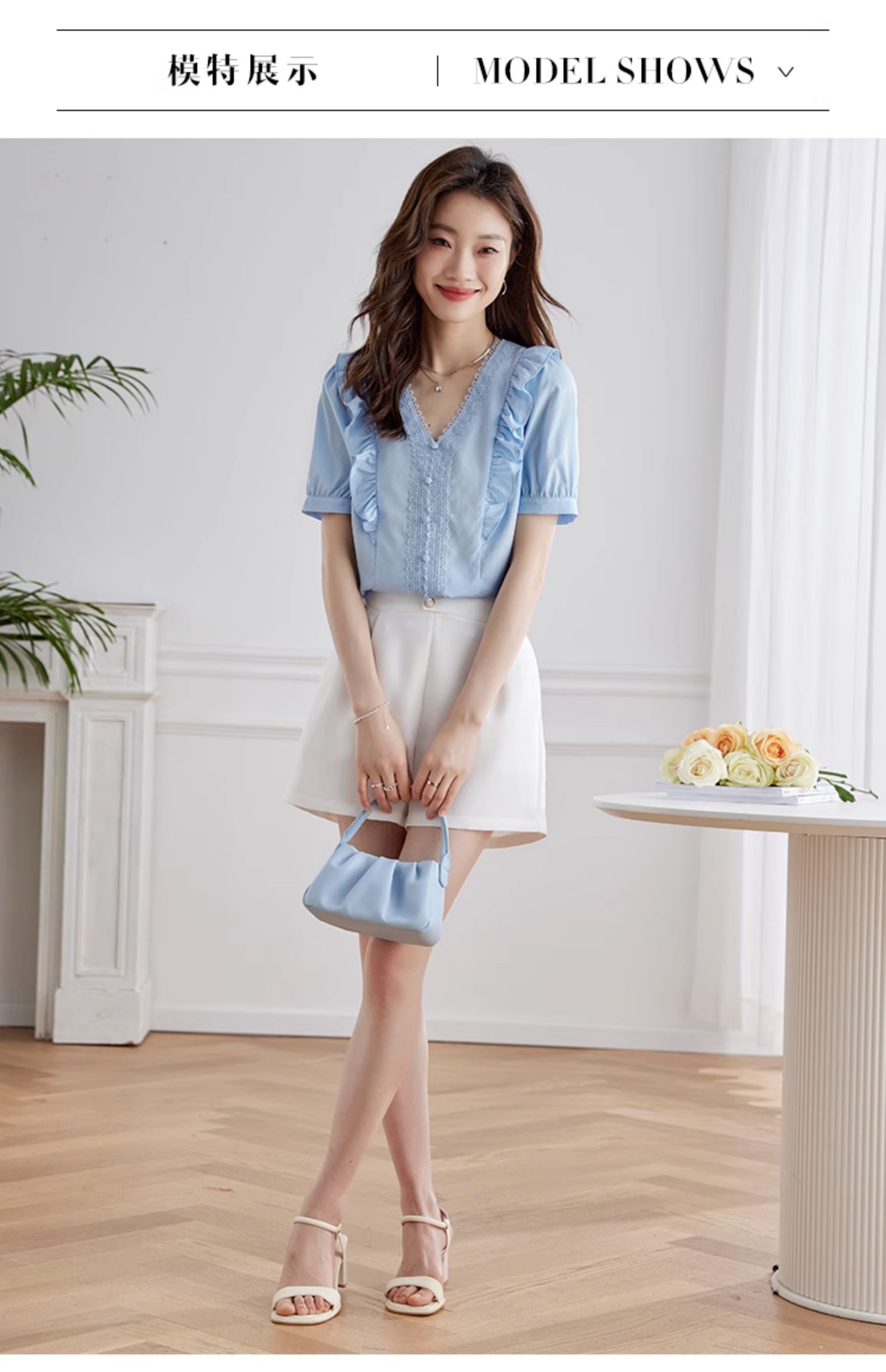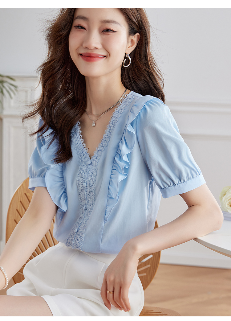 【618秒杀】熙世界蕾丝花边V领衬衫女设计感法式别致荷叶边上衣2025夏季新款
