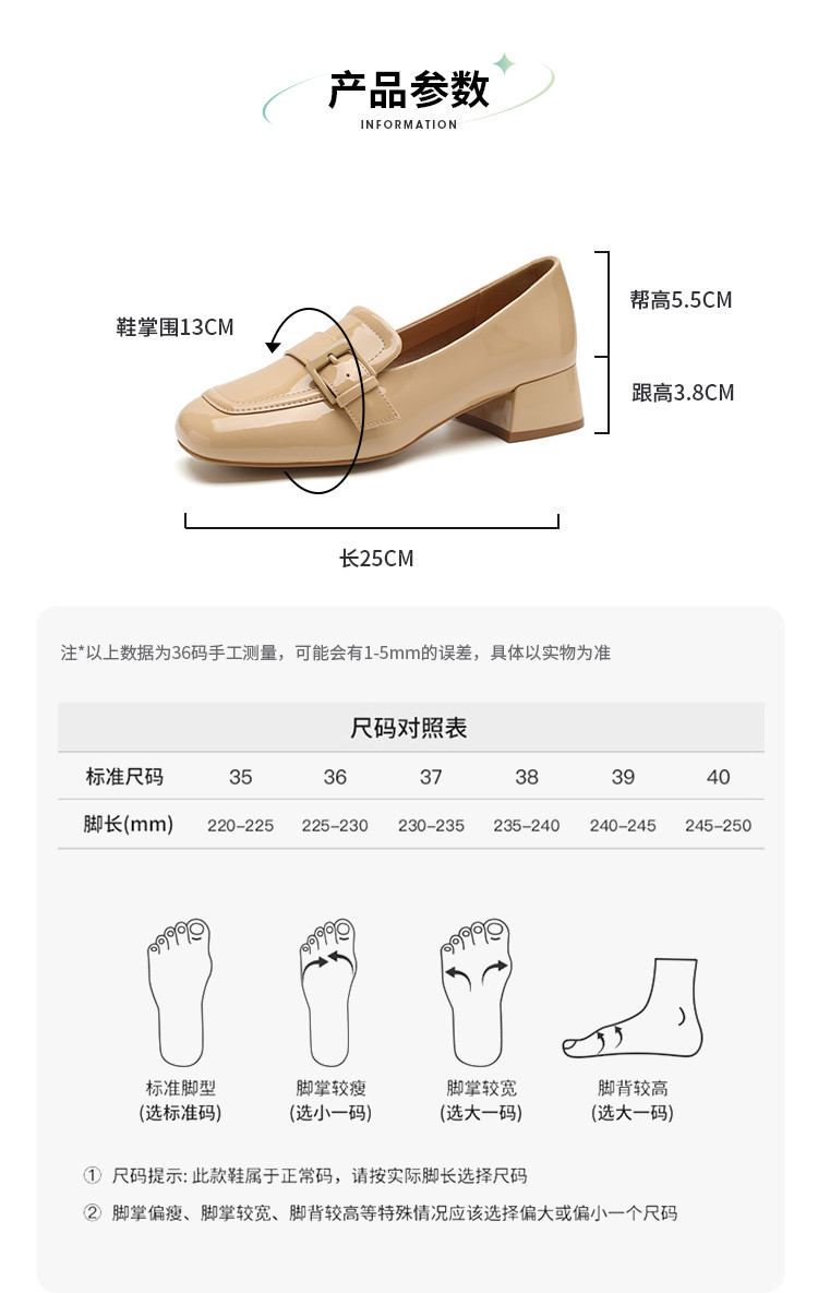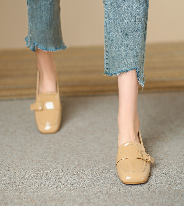 品质好货|Safiya/索菲娅2025法式优雅方头方扣漆皮低跟乐福鞋单鞋 SF32111875