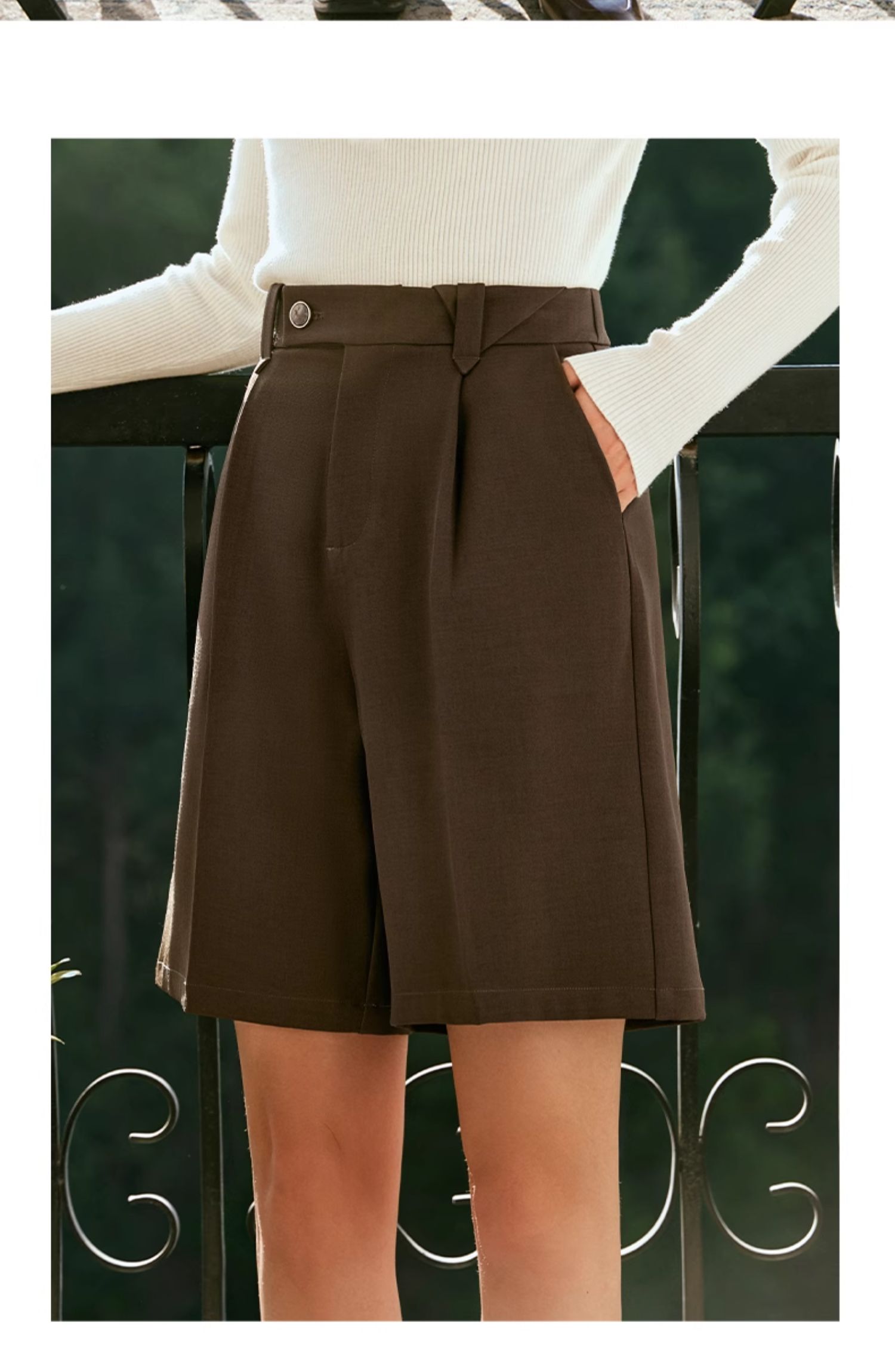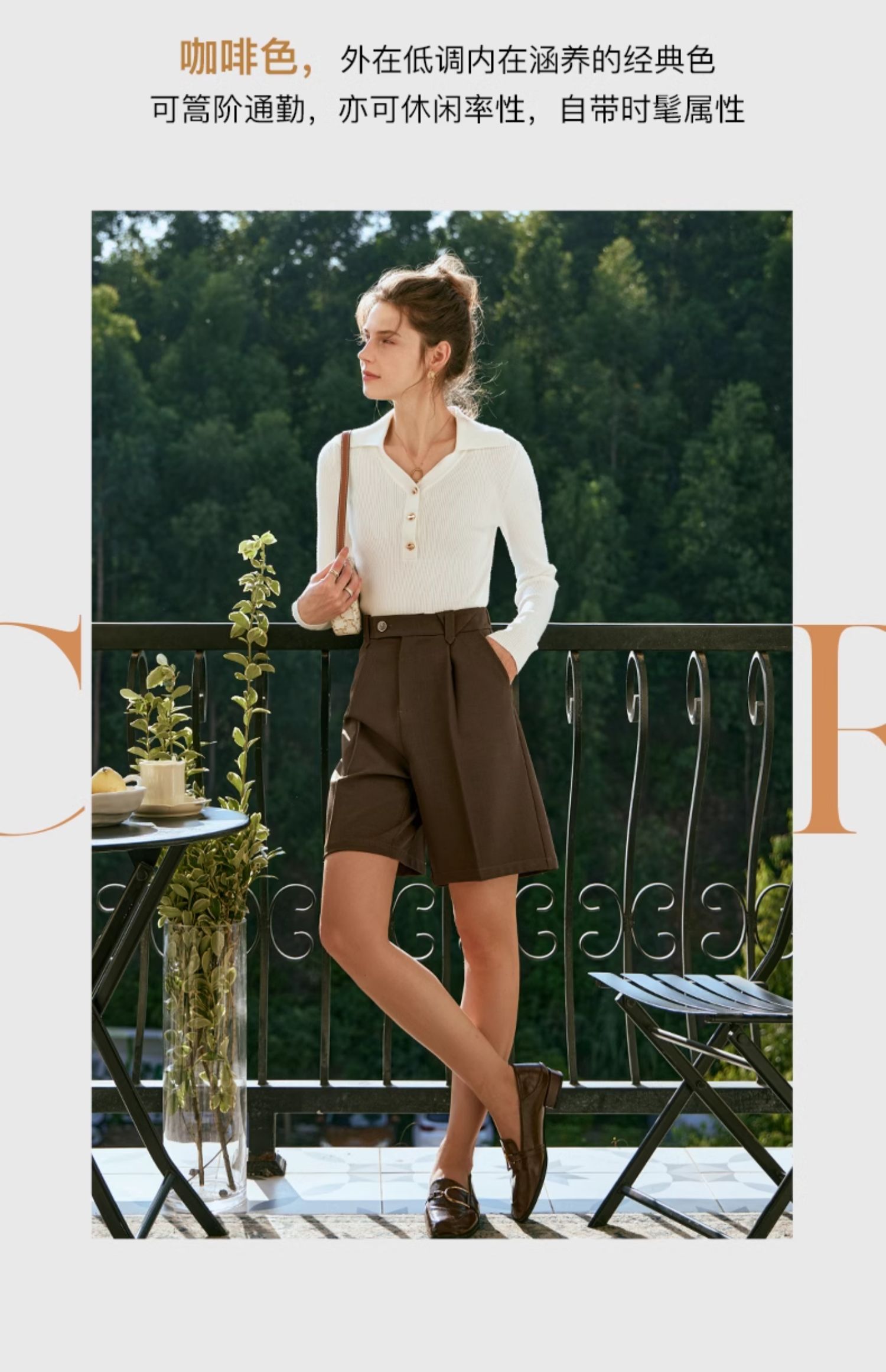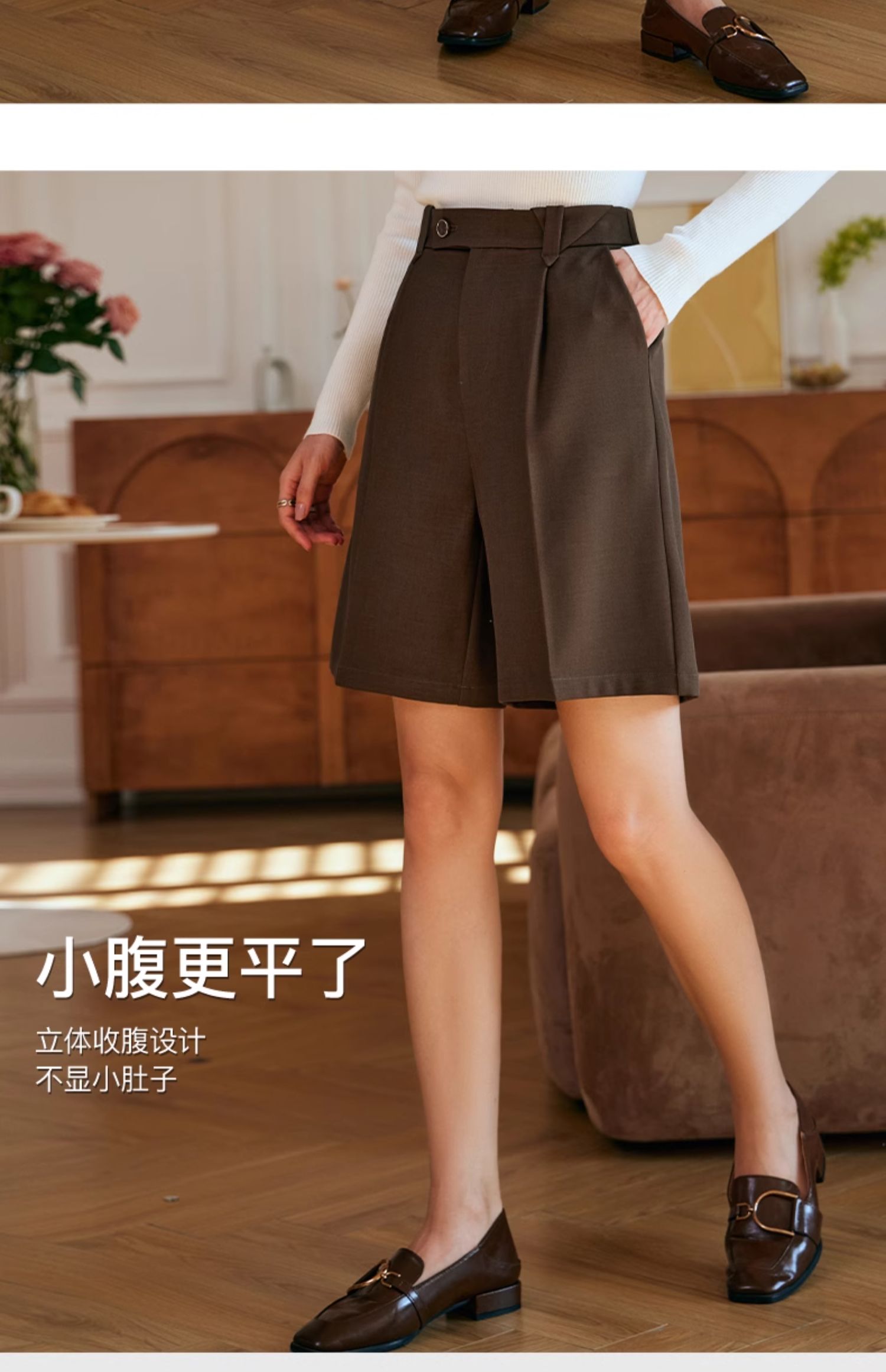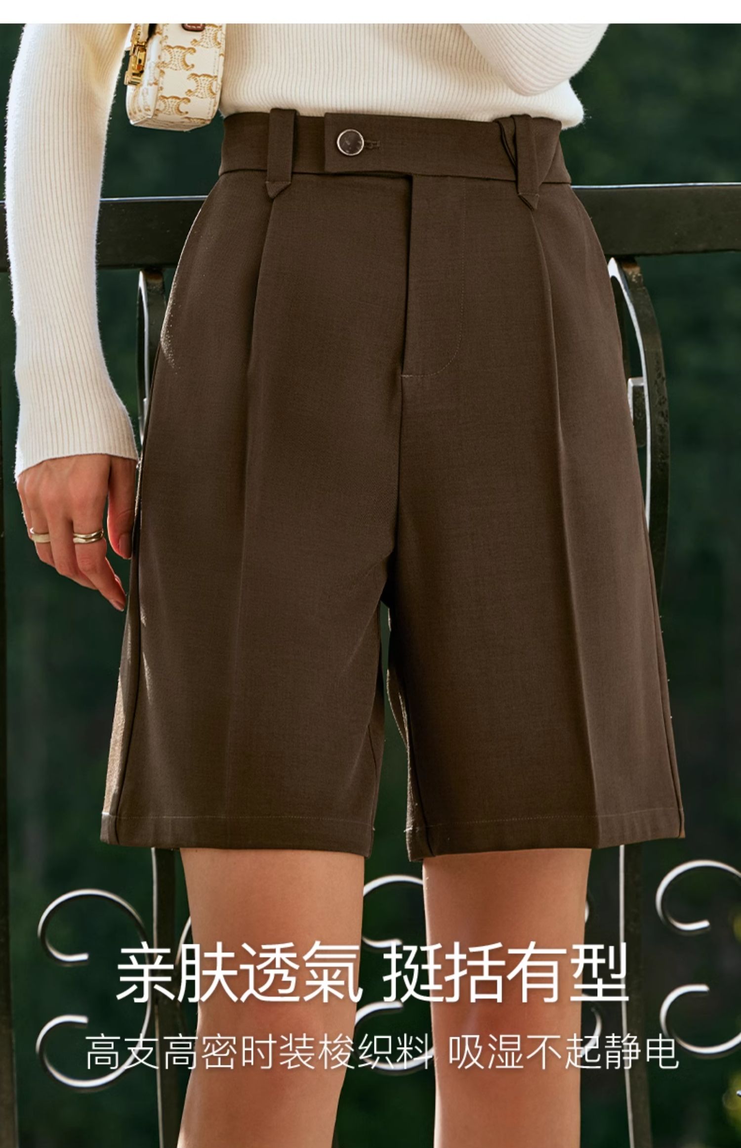 OLrain欧芮儿咖啡色休闲裤女早春2024年新款知性百搭显瘦短裤